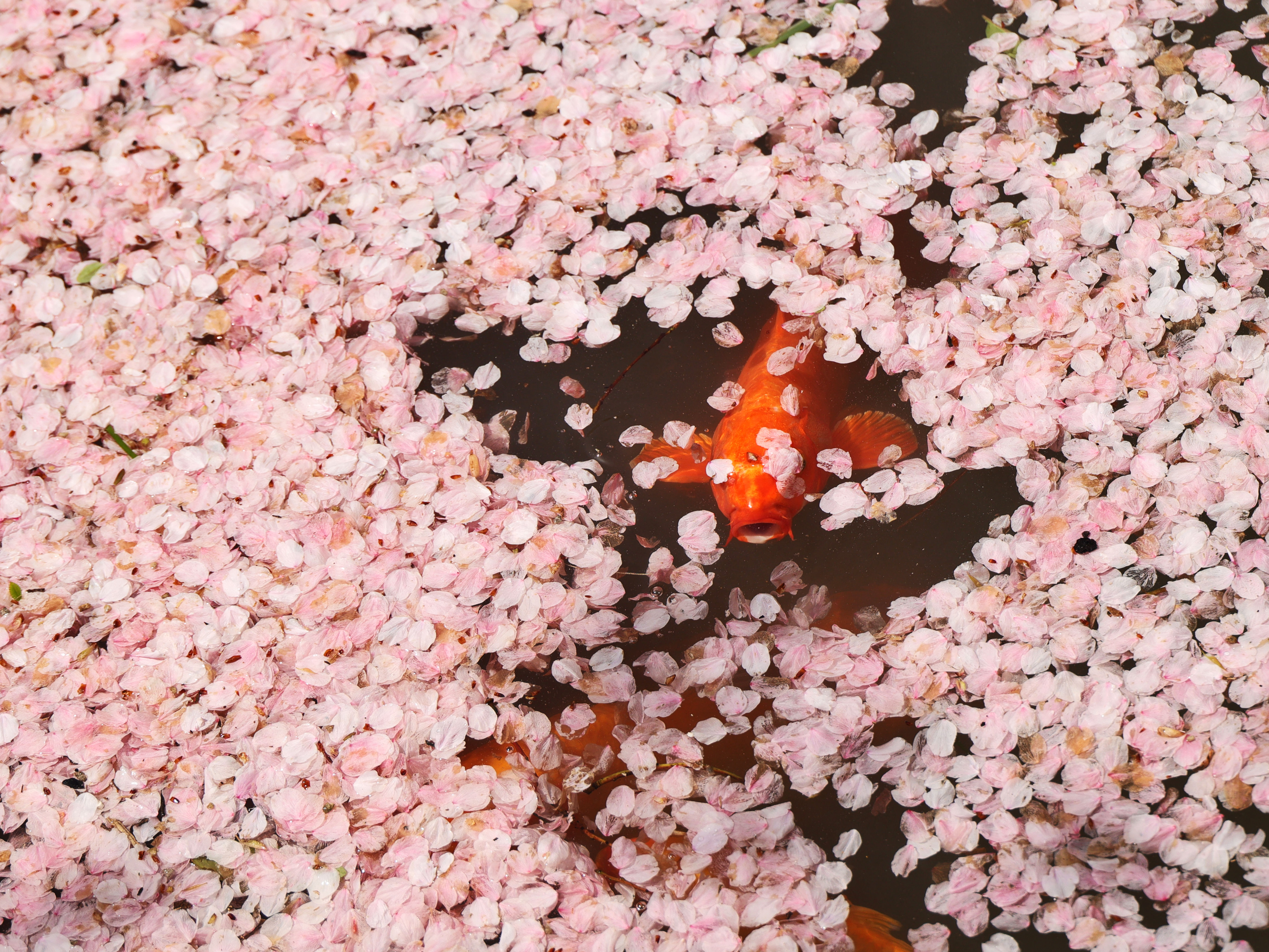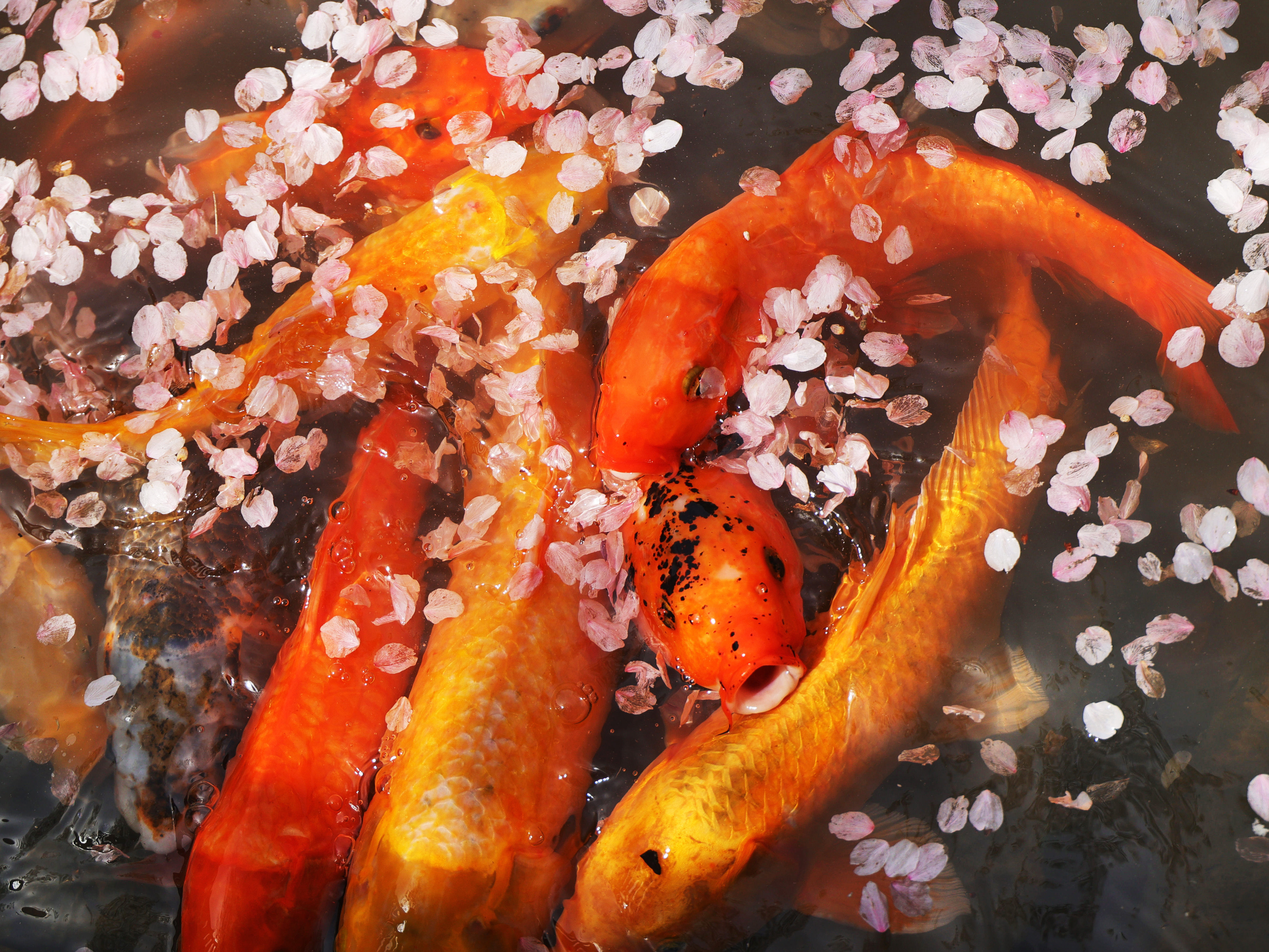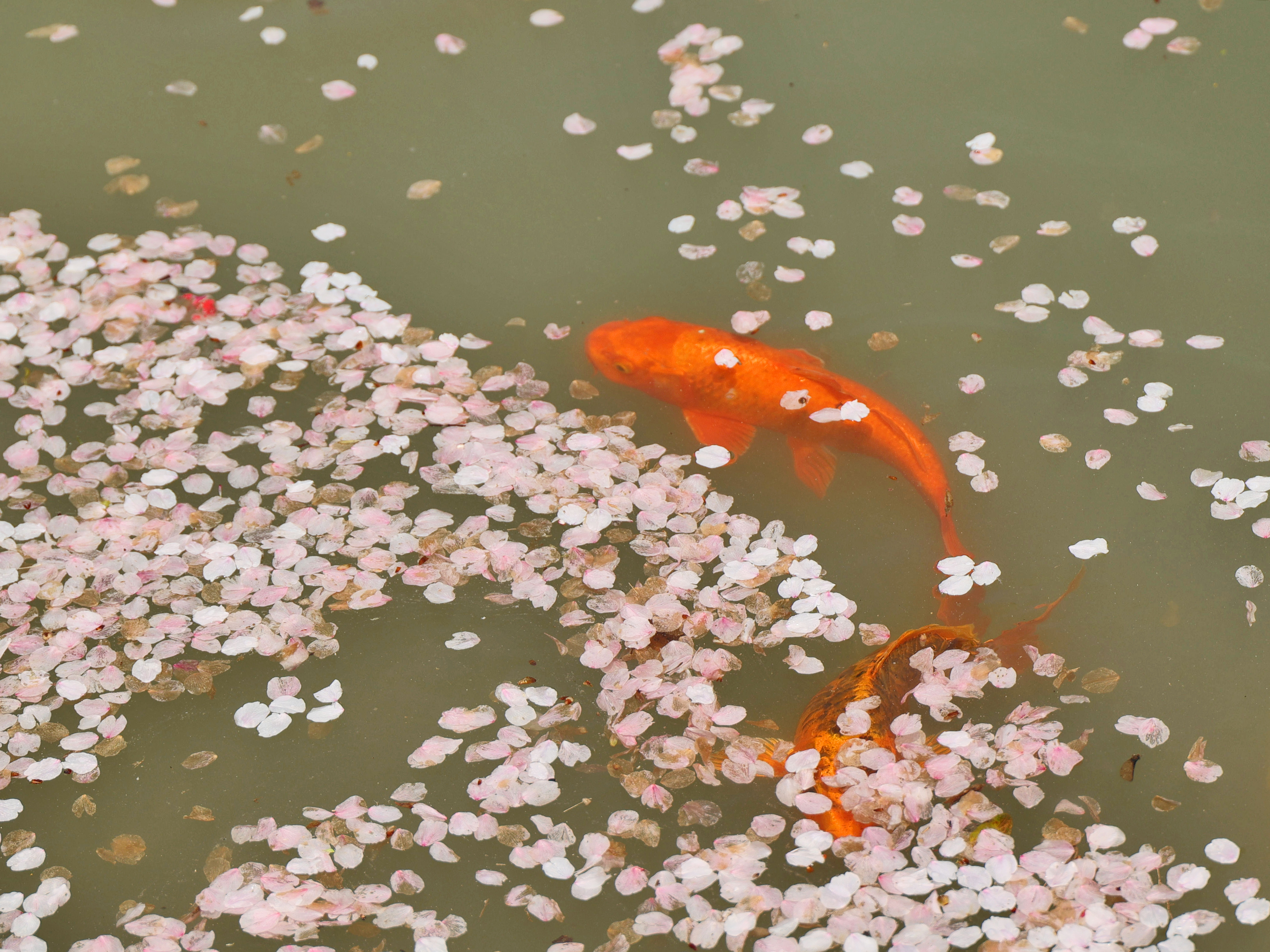《樱醉鱼欢》一阵春风拂过,樱花纷纷扬扬,飘落水面,引来鱼儿欢喜追逐,把转瞬即逝的美,酿成永恒的诗。正是: 一池花瓣为鱼醉啊!