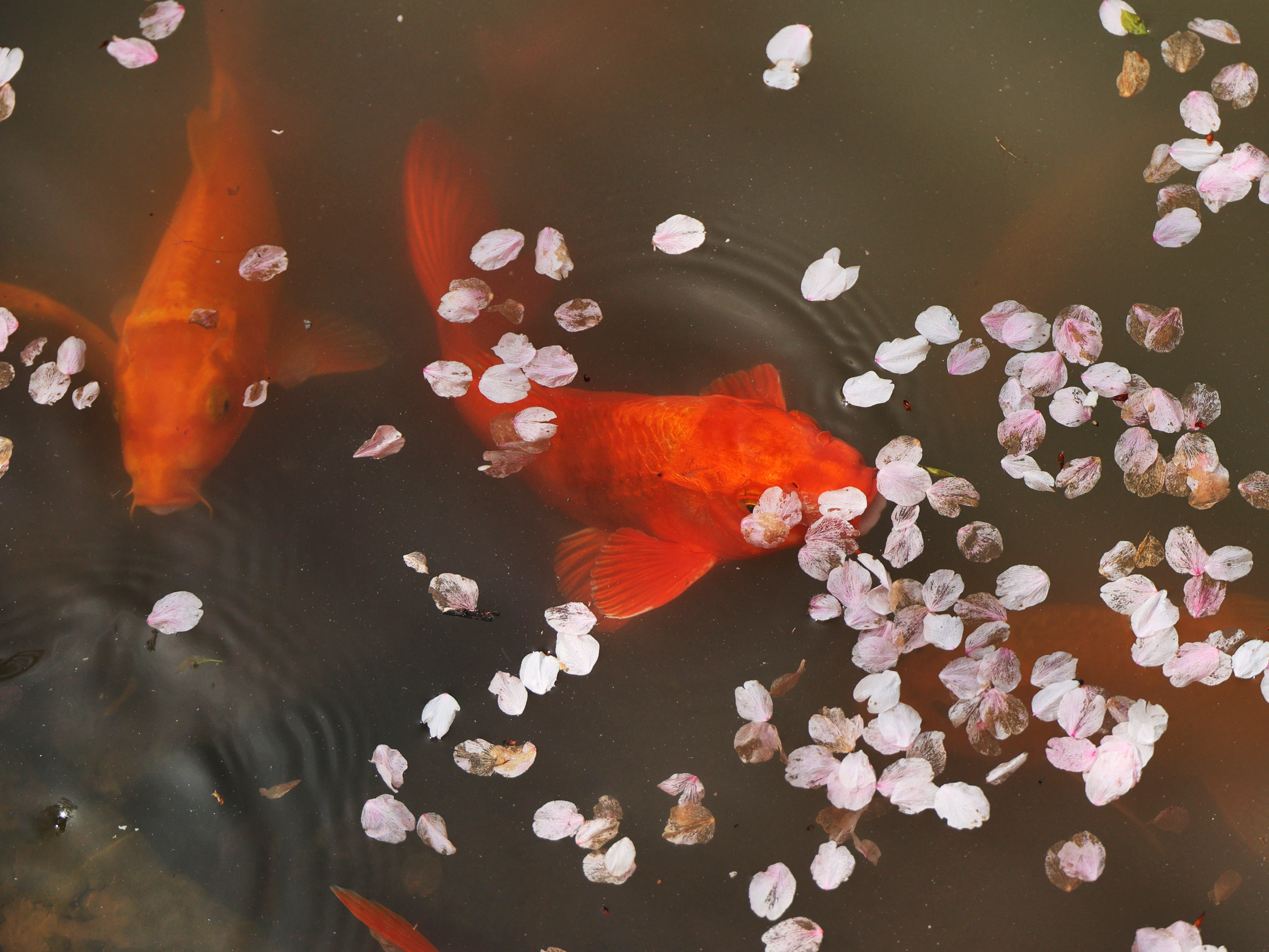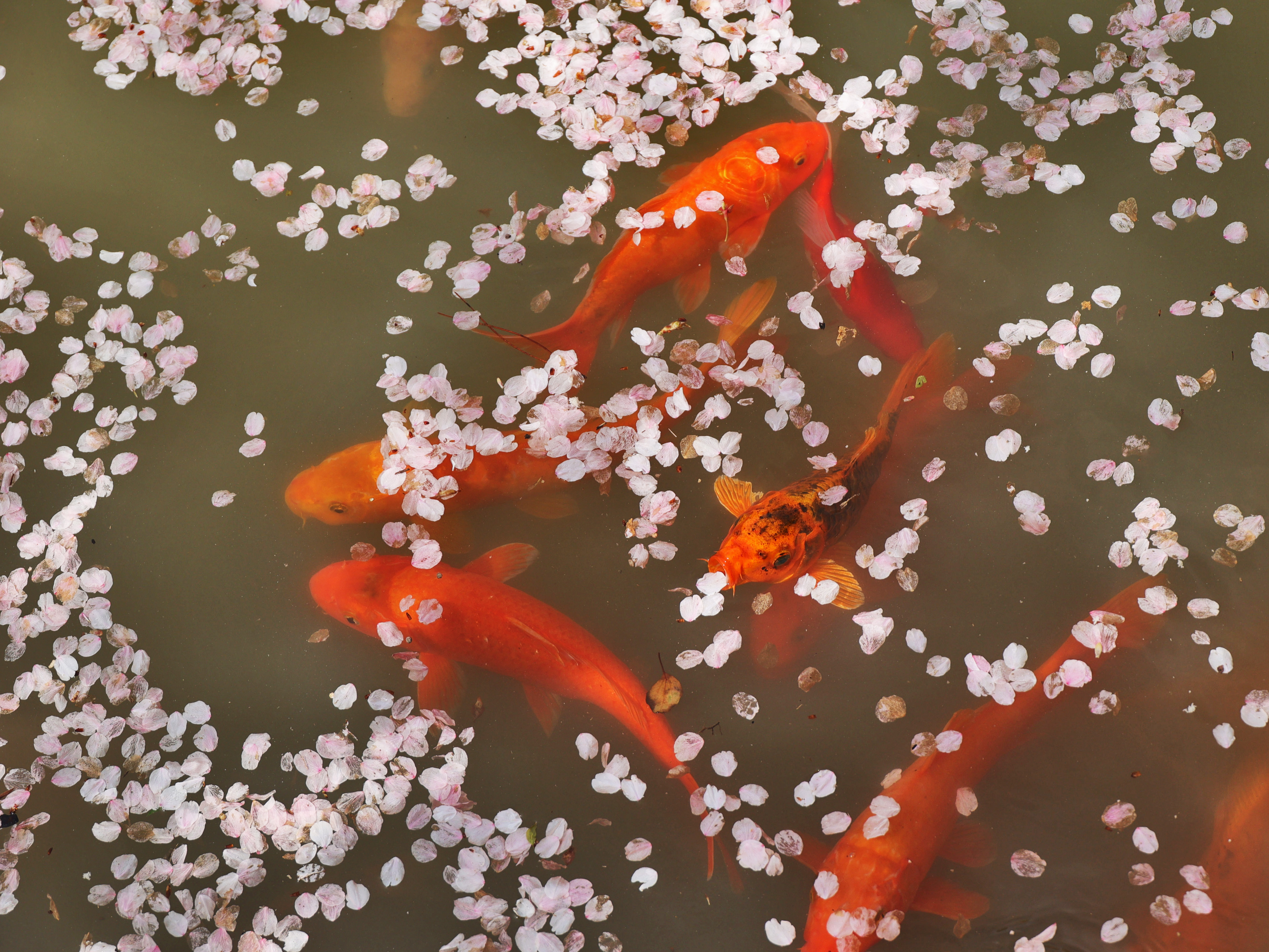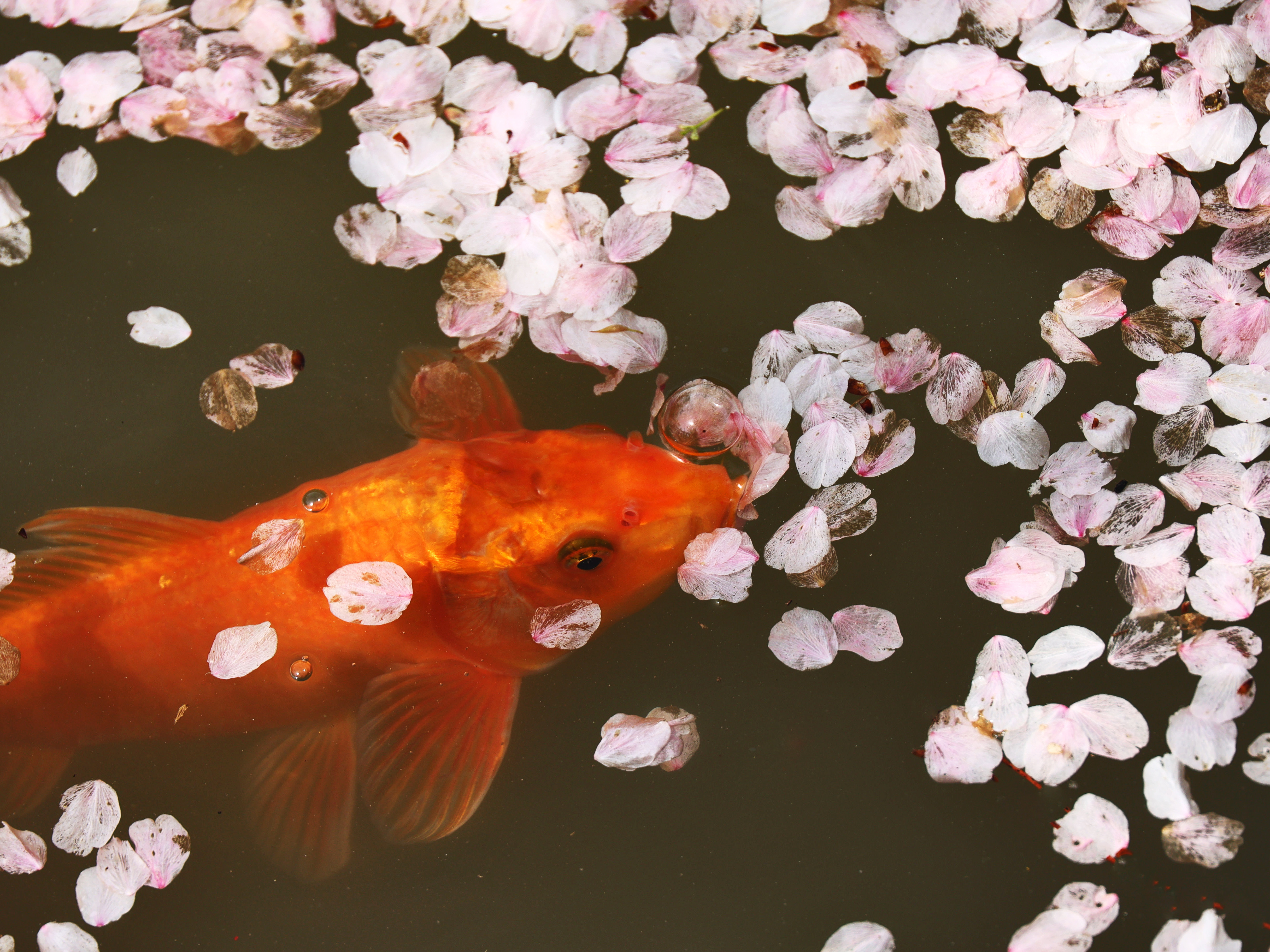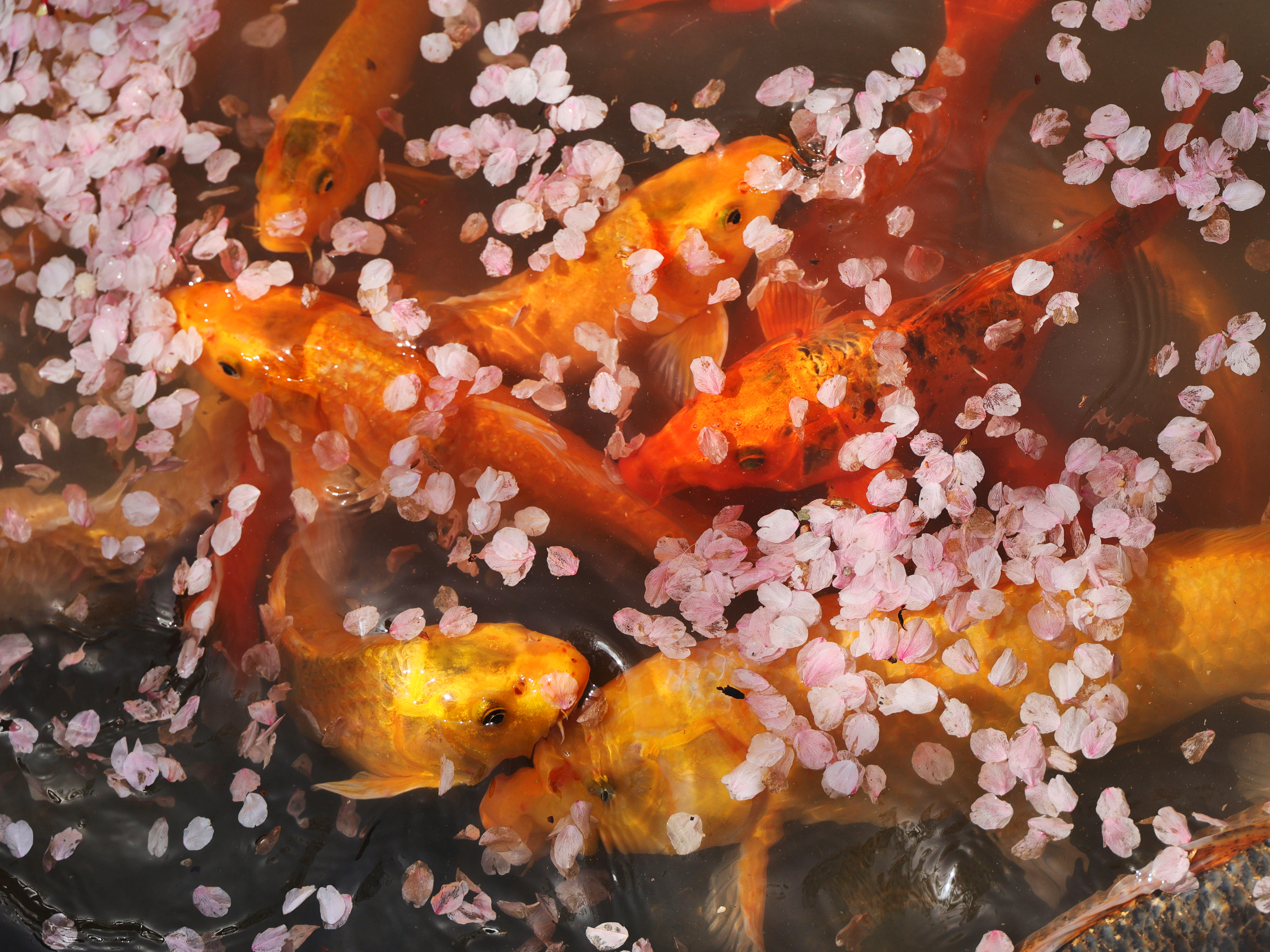 《樱醉鱼欢》一阵春风拂过,樱花纷纷扬扬,飘落水面,引来鱼儿欢喜追逐,把转瞬即逝的美,酿成永恒的诗。正是: 一池花瓣为鱼醉啊!
