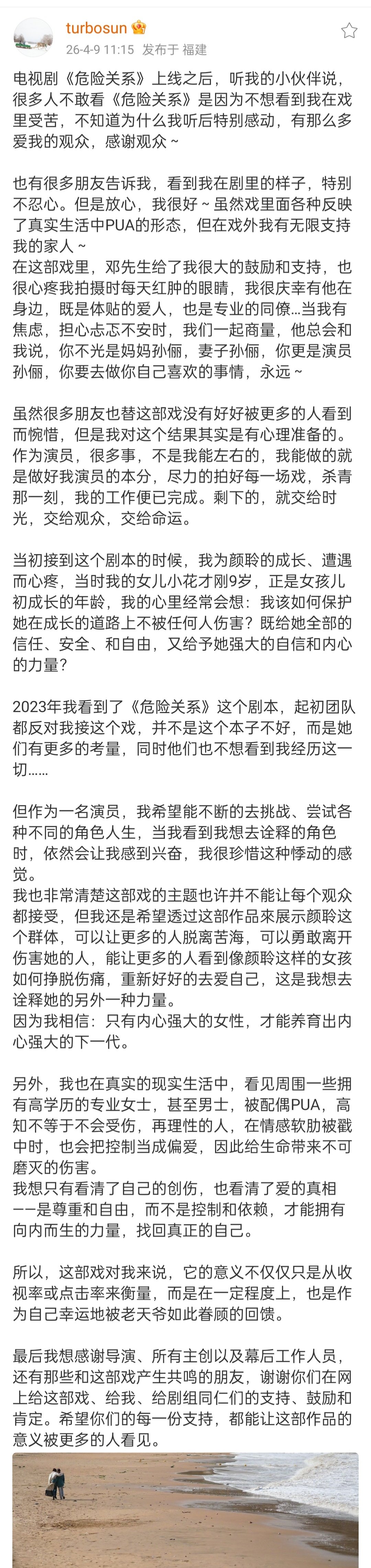 孙俪发长文谈为什么接危险关系这部剧[柯基]