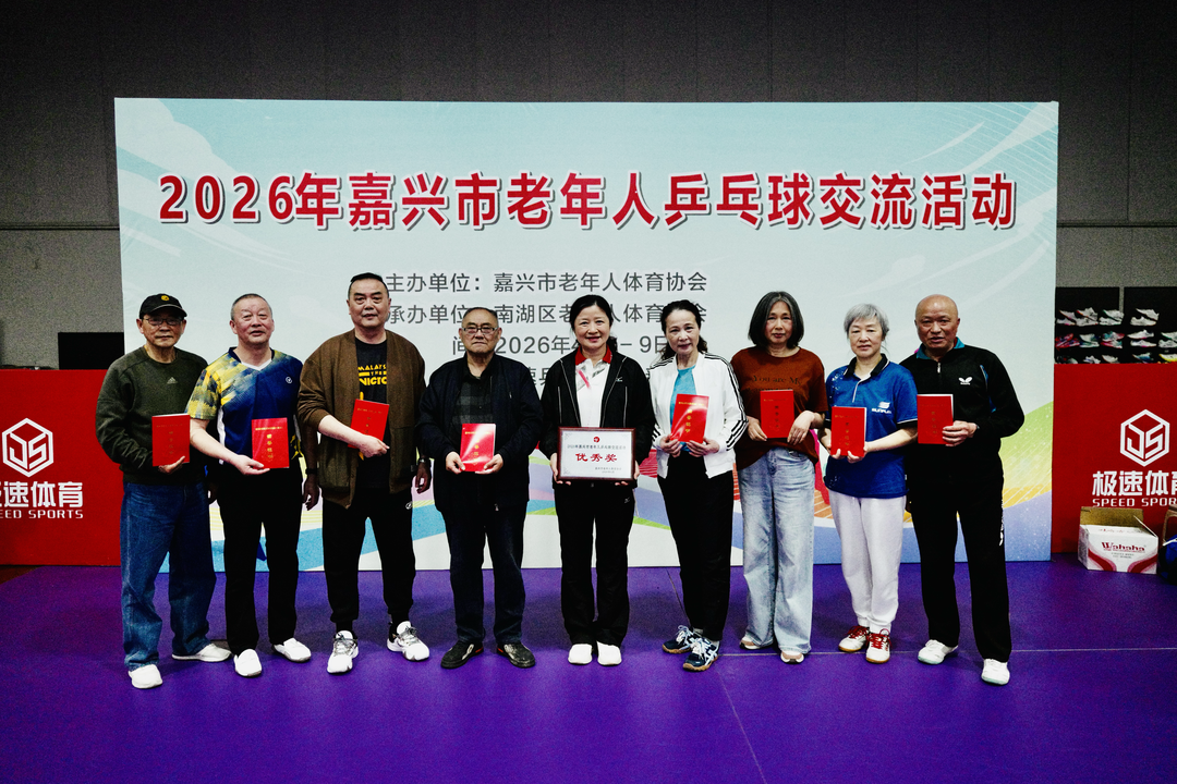 电力乒乓运动创新历史!国网嘉兴供电公司,在2026嘉兴市老年人乒乓球交流活动中,克服困难,团结一致,互相帮助,在单位领导的关怀下,有的带伤坚持,有的得到家庭的大力支持,首次创造了历史新记录,荣誉优秀组织奖。(摄影报道郑国祥)