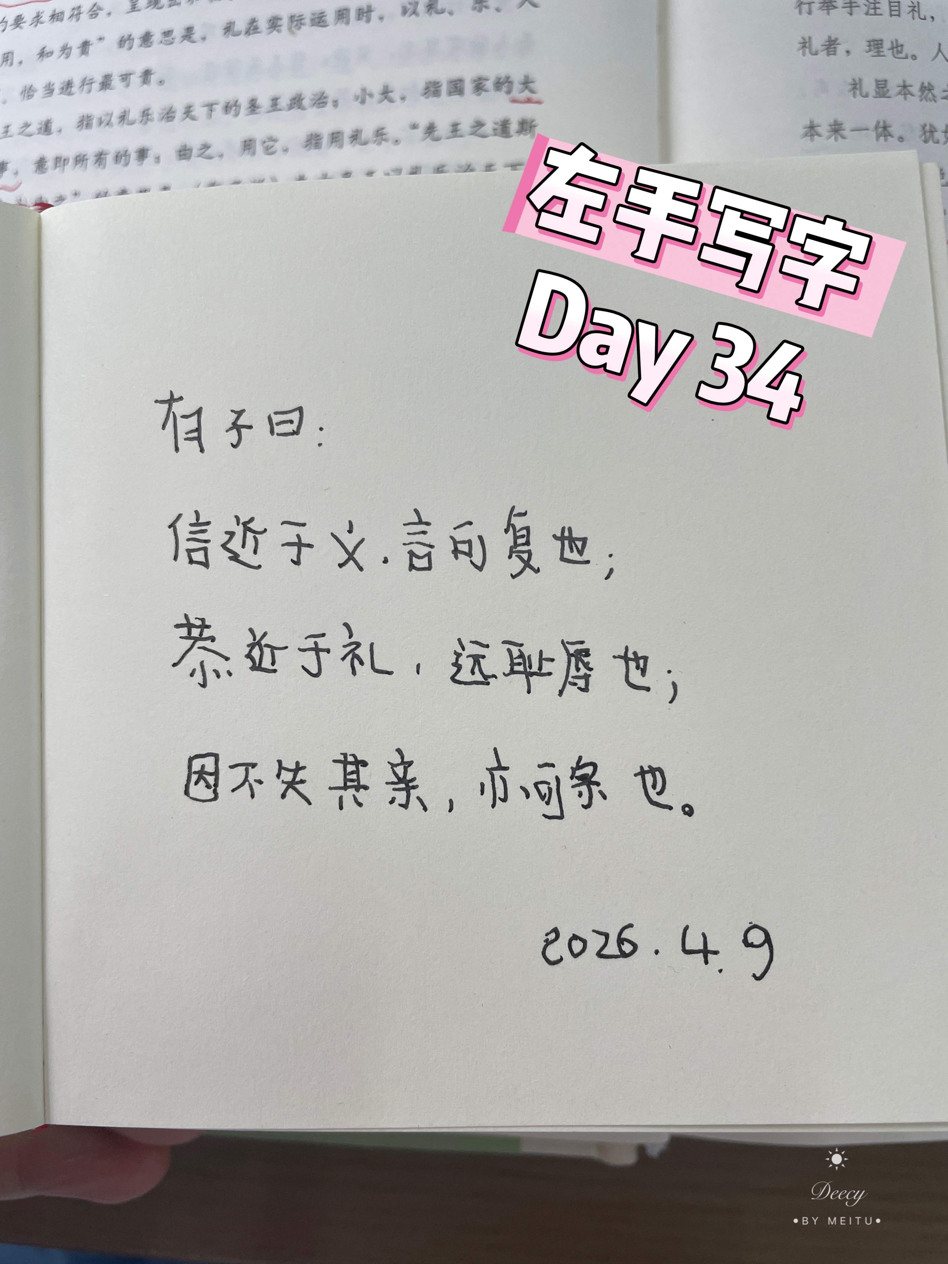 ✍️左手写字第34天 有子曰:信尽于义,言可复也;恭近于礼,远耻辱也;因不失其亲,亦可宗也。