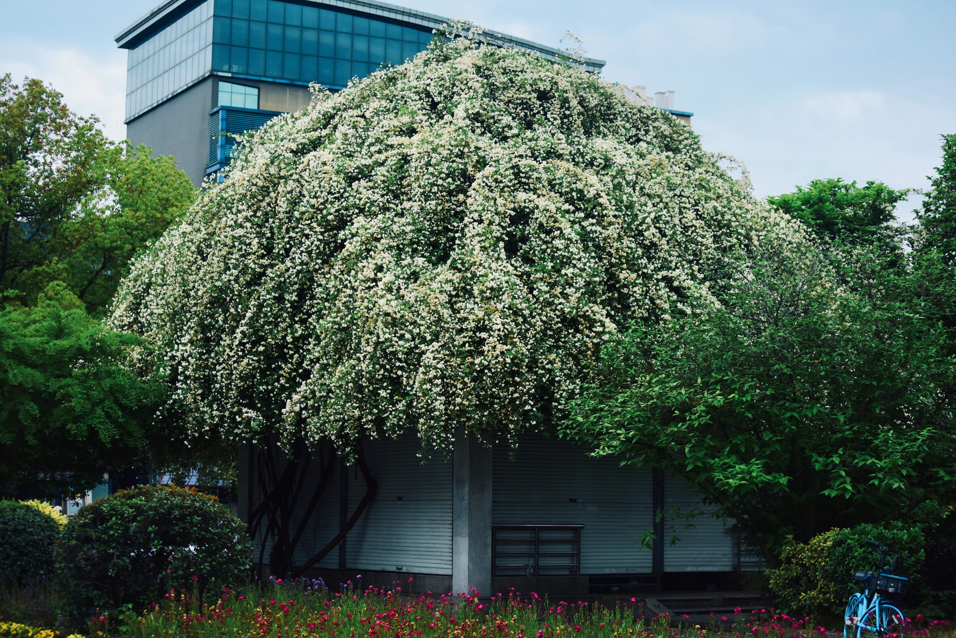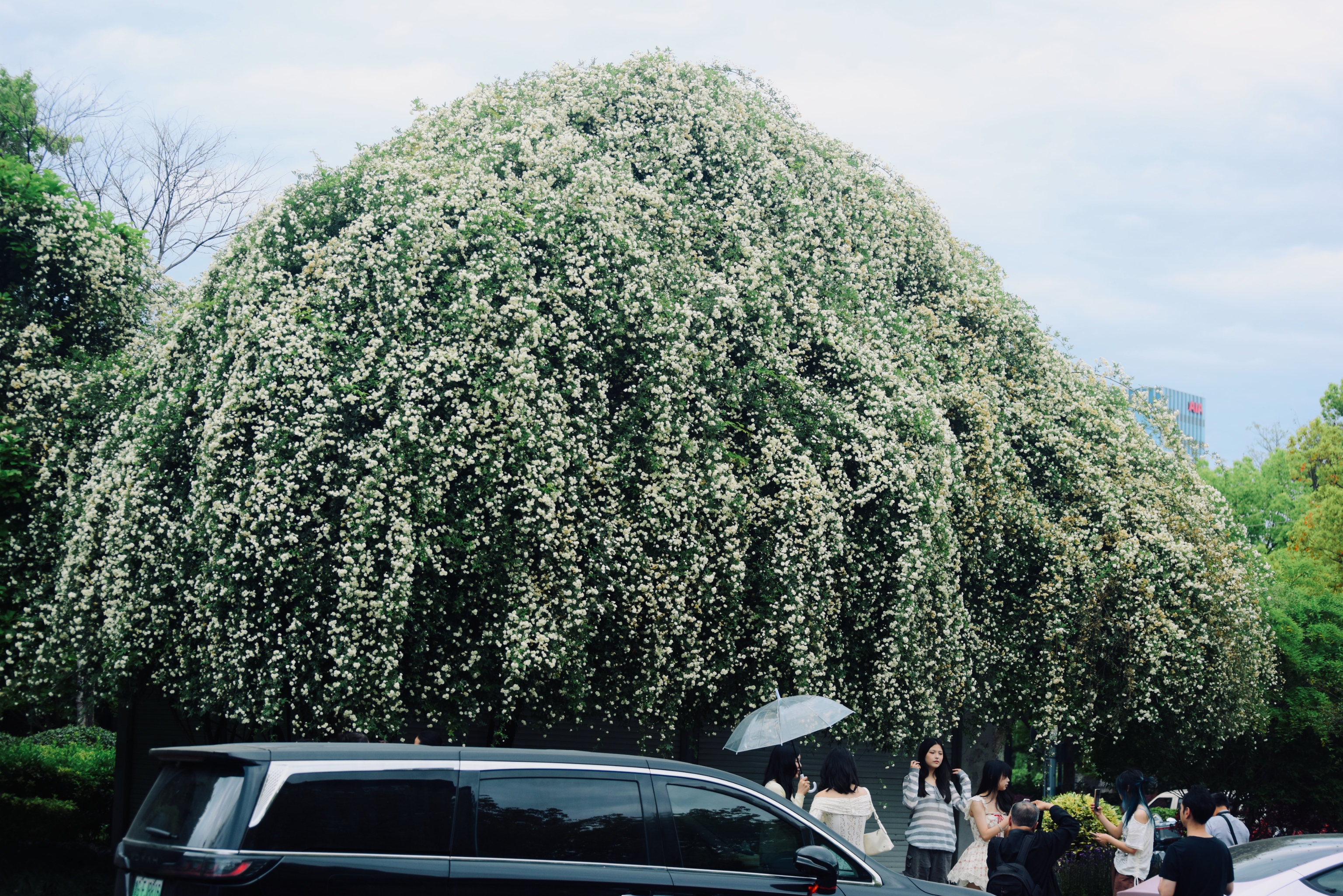 位于湖墅南路与信义坊交叉口的木香花盛开,这棵木香花因其独特的生长形态与繁茂花量,被市民亲切称为“木香花王”。