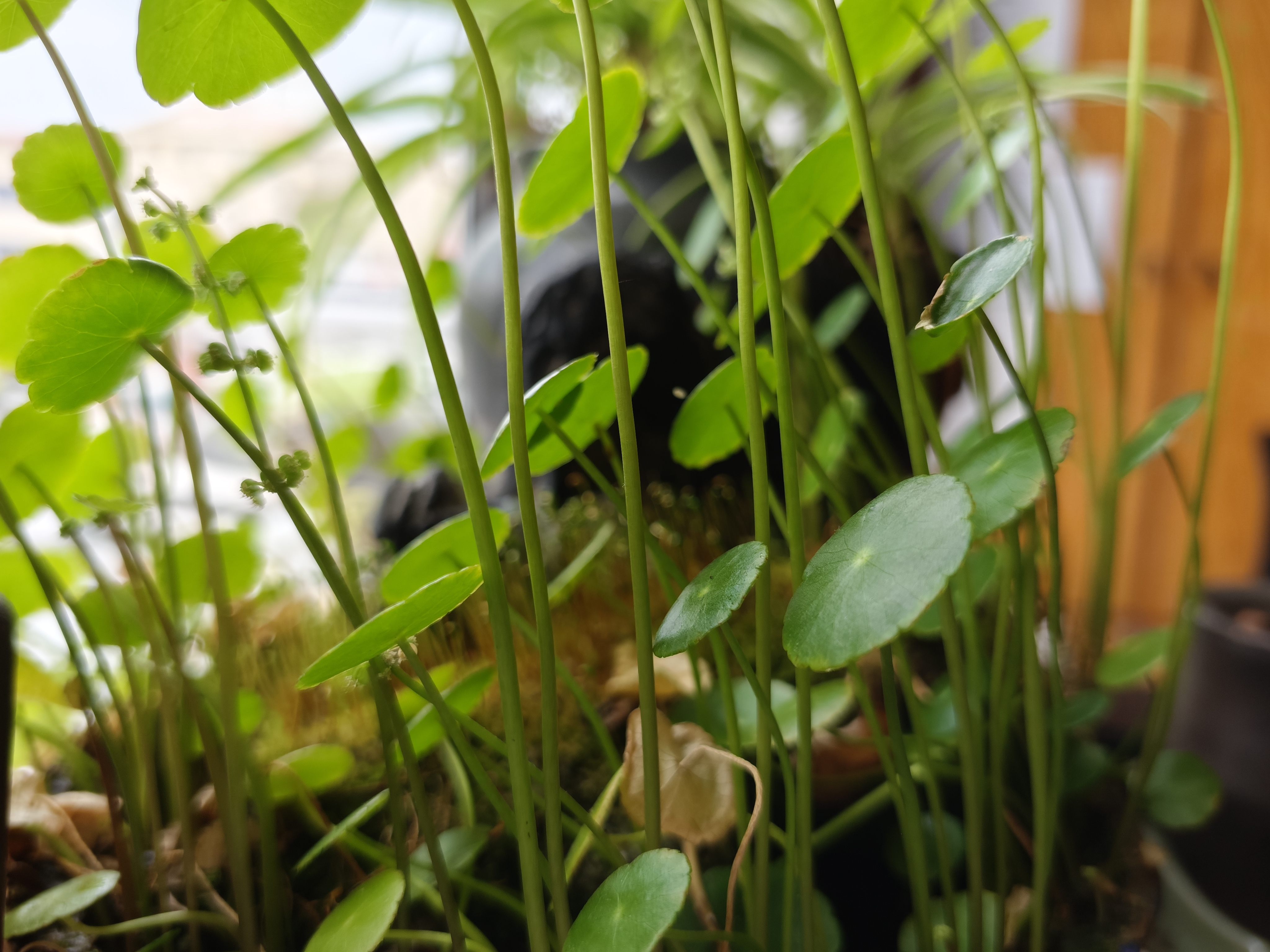 铜钱草的低语 在时光的容器里,铜钱草舒展着纤细的腰肢。 茎秆是翠色的琴弦,风过处,便弹拨出细碎的清响——那是生命在晨光里苏醒的私语,是绿意沿着脉络攀援的轻唱。 圆叶似被岁月打磨的玉币,盛着晨露的晶莹,也盛着光阴的温柔。有的叶片边缘微卷,像未写完的诗行,藏着几分青涩的倔强;有的叶心凝着淡白的晕,如月光遗落的吻痕,晕开一抹朦胧的梦。 苔藓在根际织就绒毯,枯叶与新绿依偎成画。 那些细小的花穗,是绿的支流里绽出的星子, 在光影交错间,诉说着生长与沉淀的秘密—— 不必追逐高枝的绚烂,只需在自己的节奏里, 把每一缕阳光酿成蓬勃的力量,把每一滴雨露织成葱茏的希望。 当窗棂的光影爬上叶梢,铜钱草便成了自然的邮差,把寂静的生机,悄悄递入心房。