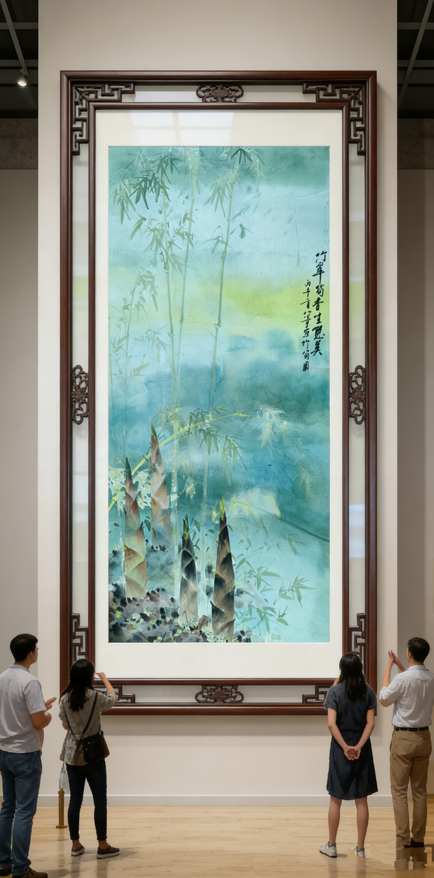 竹影里的光:一位画者五十年磨一剑的创新之路 4月9日,湖州小雨。4月10日,天晴。 雨过天晴,最宜观竹。水珠未干的竹叶会折射出意想不到的光泽,而一位画者,正把这种"雨过天青"的光感,定格在宣纸之上。 他叫竹童。这个名字,与竹相伴了整整五十年。 一、从"像"到"光":国画创新的破壁时刻 十岁那年,竹童走进李阿庆、李英两位先生的美术课堂。那是1976年,一个物质匮乏但精神饱满的年代。铅笔素描、色彩静物、工笔花鸟……传统美术的功底,就这样一点点夯进骨子里。 家父是专业的美术工作者,夏天,家里的楼板上铺上一条席子,父子俩躺在席子上听家父讲述中国绘画史的一些故事,草书王张旭的一笔书是怎么形成的?和八大山人一样,祖先是朱元璋,明末清初的时候避难在嘉善丁栅镇,子承父业,身体里可能隐藏着绘画的遗传基因。 但真正的突破,发生在五十年后。 2026年元旦,一幅70CM×150CM的《雪竹》诞生。竹童在创作手记里写道:"分层画法,让前后关系有了呼吸感;洗墨法,让墨色有了透明度。"这不是简单的技法叠加,而是把西画的光影逻辑,悄然嫁接到东方水墨的魂魄里。 二、分层与洗墨:技术背后的美学野心 什么是"分层画法"? 传统国画讲究"一气呵成",追求笔墨的即时性。但竹童反其道而行——他像油画那样层层罩染,让近景的竹节有雕塑般的体积感,让远景的竹叶隐入氤氲的空气透视。画面因此有了纵深,有了空间,有了让人想走进去的冲动。 什么是"洗墨法"? 这不是古人说的"墨分五色",而是主动用水"洗"出墨色的透明层次。浓墨被稀释、被穿透、被阳光照亮。你看那幅《竹荀图》——翠绿的竹干里仿佛流动着光,不是外光照射的被动反光,而是从画面内部透出来的生机。 "把阳光带进国画",这不是口号,是看得见的革新。 三、竹笋:破土而出的隐喻 今天的《竹荀图》,主角是竹笋。 竹笋是竹的幼年,也是竹的锋芒。它藏在土里时默默蓄力,破土时却势如破竹。竹童画竹笋,用赭石与墨绿交错,画出笋衣的包裹感;用留白与淡墨,暗示泥土的湿润与空气的流动。 这何尝不是一种自况? 五十年学艺,从基础美术到独创技法,从模仿自然到创造光感。竹童像一颗迟发的竹笋,在艺术的土壤里扎根够深,如今终于迎来自己的破土时刻。 四、领先:产业与艺术的共同密码 张雪造摩托,竹童画竹。 两个毫不相干的领域,共享同一个真理:领先,是最好的竞争力。 产业领先靠技术迭代,艺术领先靠语言创新。当"分层画法"和"洗墨法"成为竹童的标志性语言,他就拥有了不可替代性。这不是闭门造车的孤芳自赏——你看那幅《竹荀图》的题跋:"清风满袖尘心净,一纸苍茫墨写刚肠。"画竹,即是写心;创新,即是修身。 五、光在纸上,也在路上 雨后的湖州,阳光正好。 竹童的画案上,宣纸还泛着潮气。他刚刚完成这幅《竹荀图》,竹笋在晨光里拔节,竹影在微风中摇曳。那是他独创的光——既来自自然,也来自五十年如一日的深耕。 从十岁的美术班学童,到拥有个人技法的成熟画者;从李阿庆先生课堂上的铅笔素描,到把阳光写进水墨的创新实践。 这条路,竹童走了五十年。 而光,才刚刚照进来。