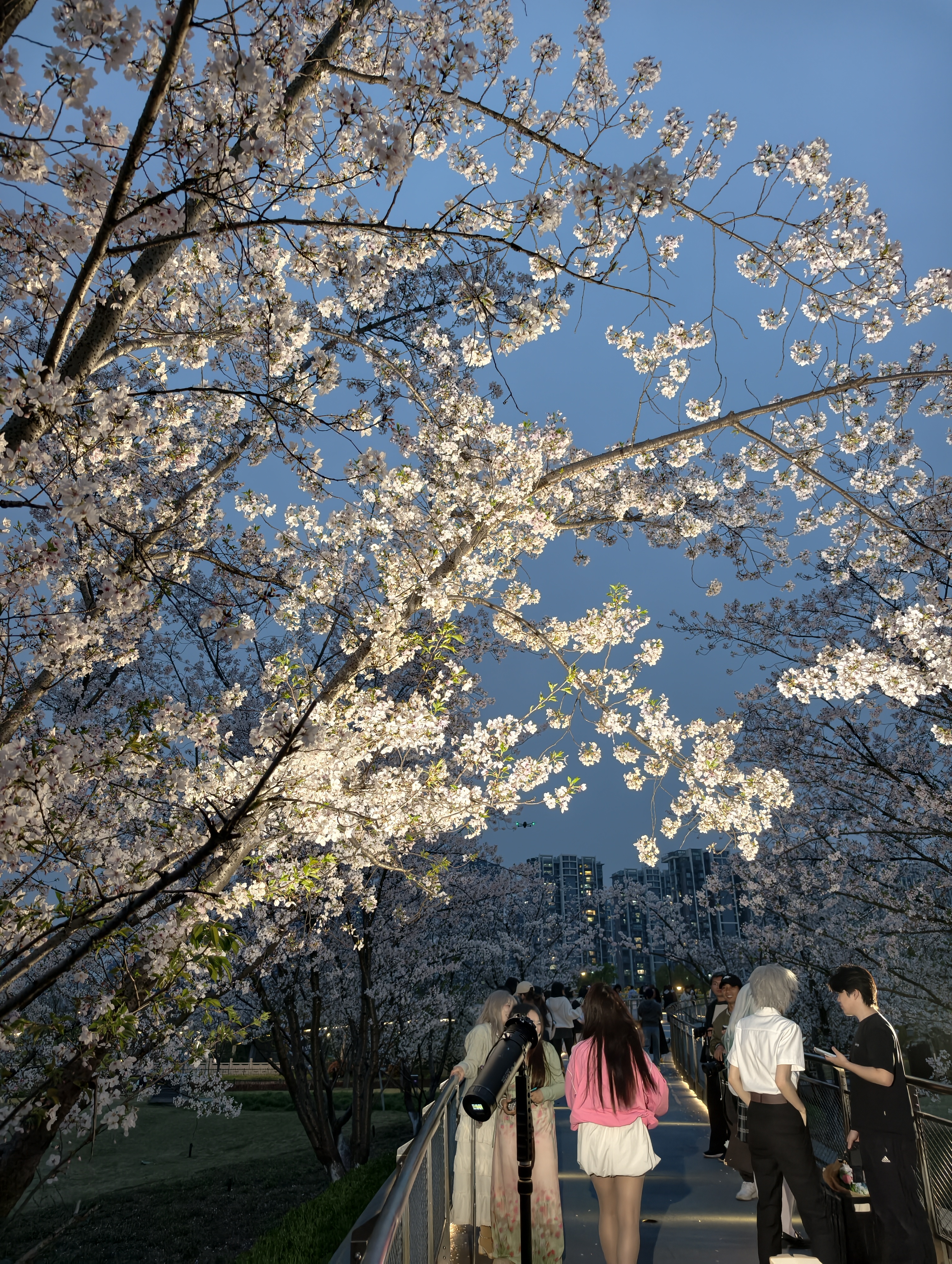 樱花开了,樱花桥的夜晚挺热闹的。