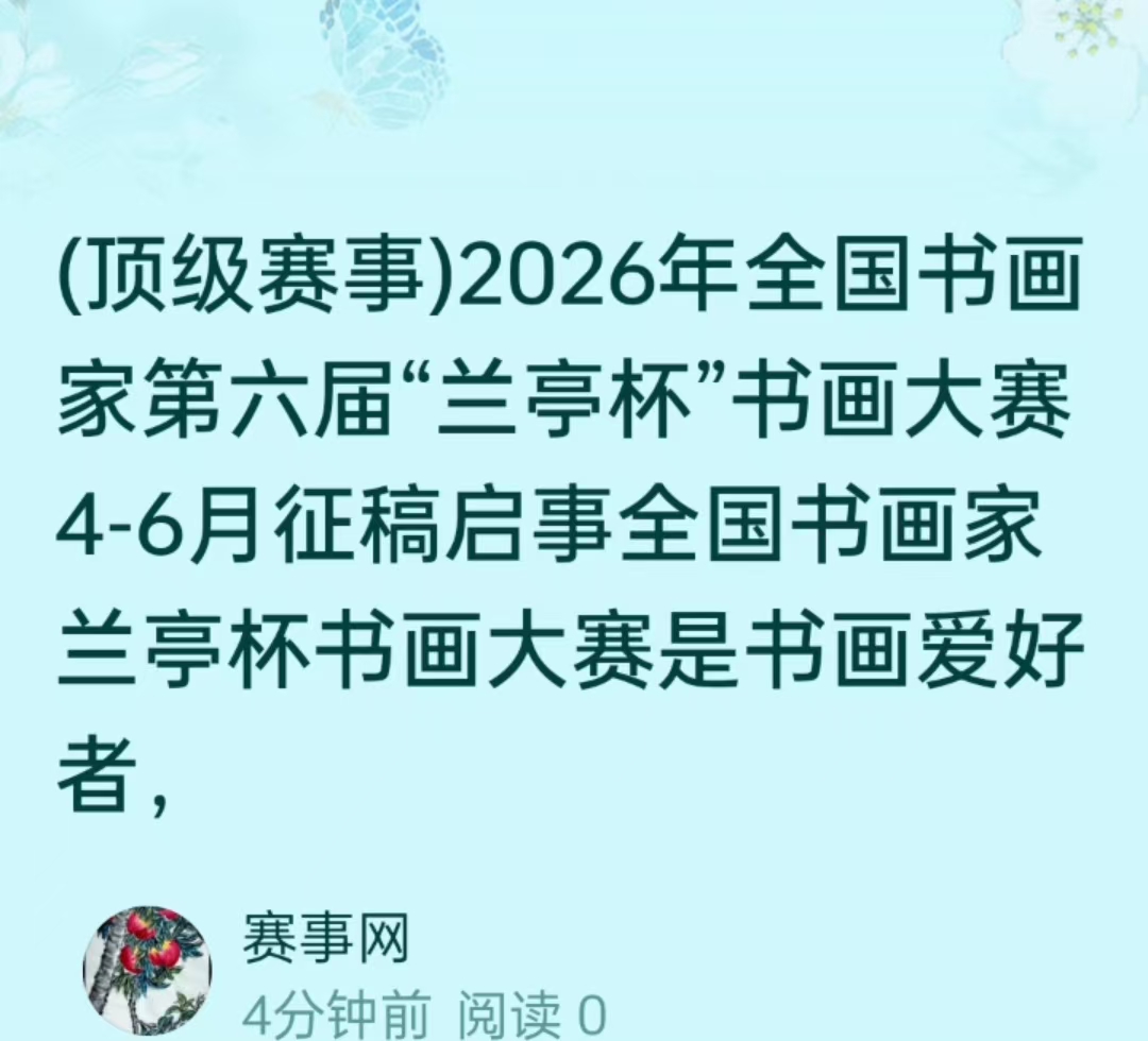 (中国书画)2026年第六届全国书画家兰亭杯书画大赛4-6月征稿,兰亭杯就是全国书画家兰亭杯书画大赛,是全国性书画大赛,是中国公众评价最高的书画大赛