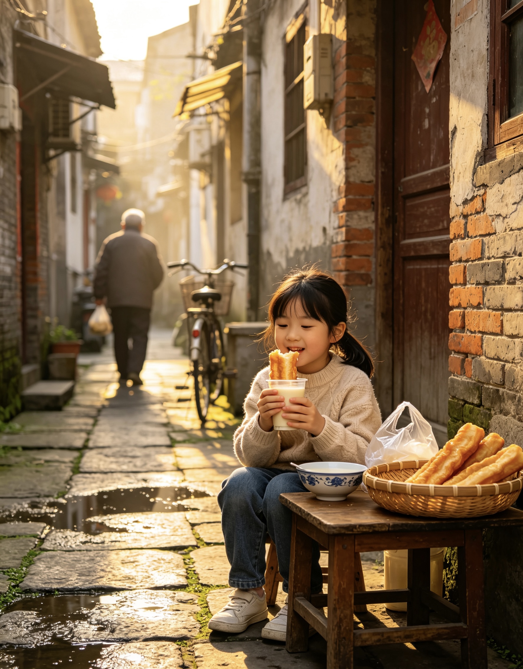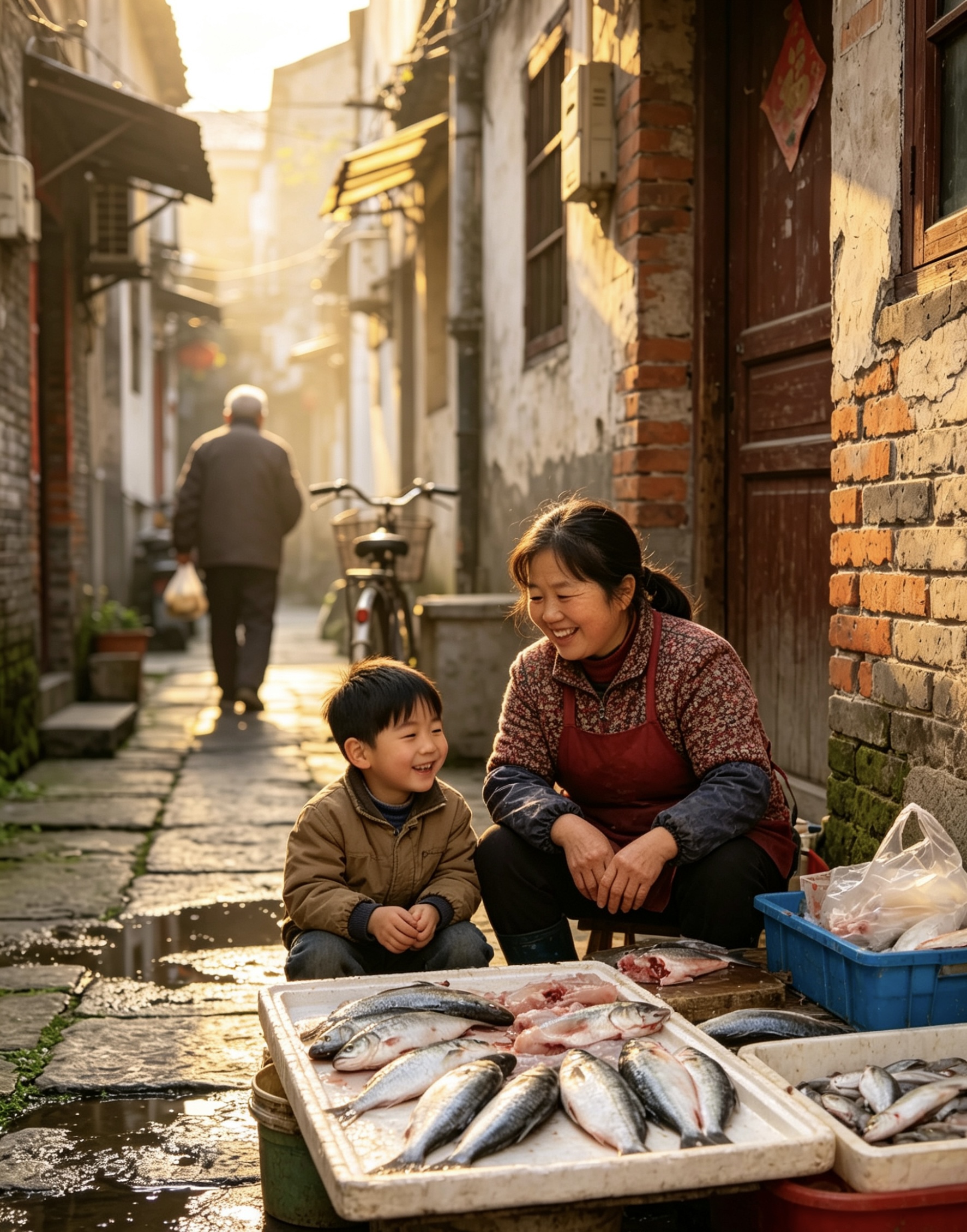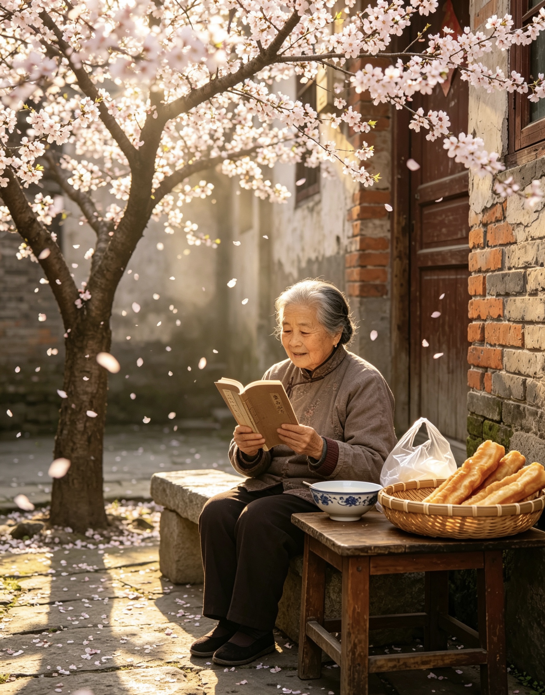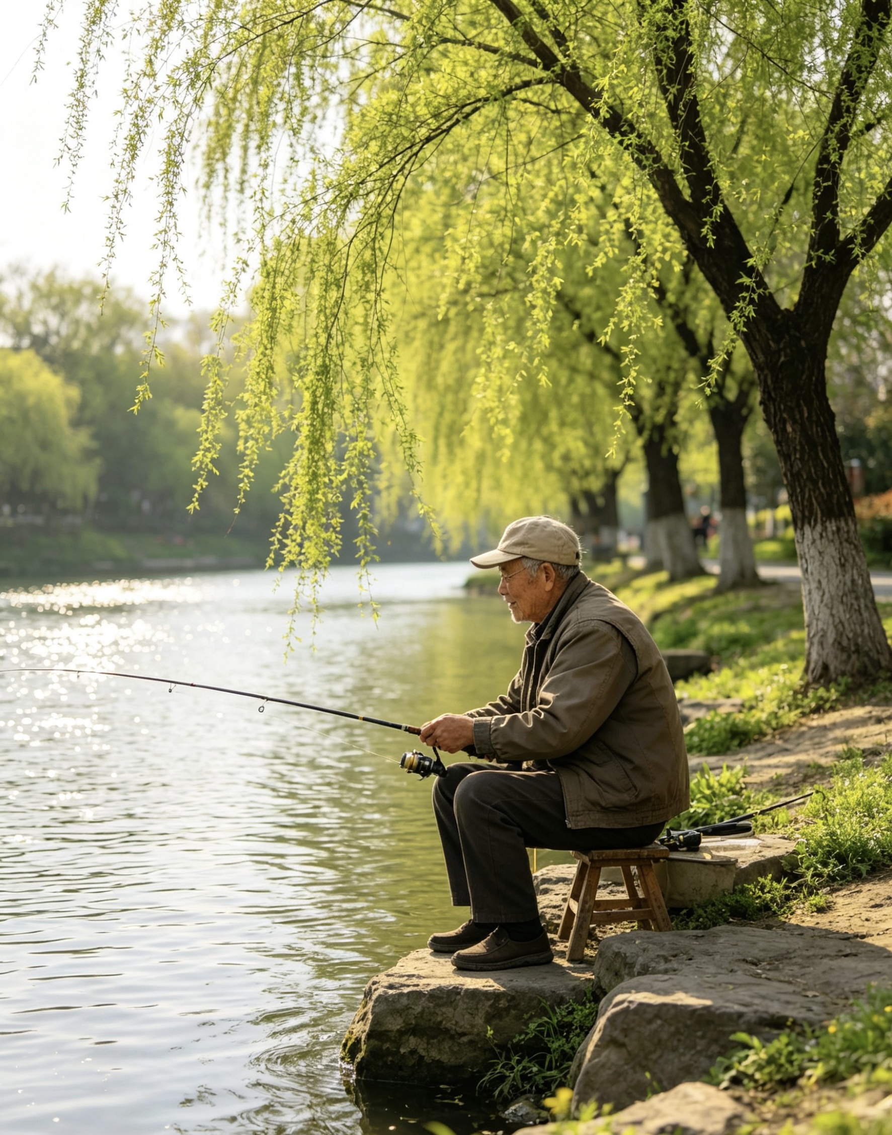 四月周末的慢板 (故事经过艺术加工和模糊化处理,部分图片由AI制作~) 周六的早晨,巷子醒得比平时晚。 七点多了,还静悄悄的。没有赶着上班的脚步声,没有电动车急促的喇叭声,只有几只麻雀在泡桐树上跳来跳去,叽叽喳喳的,像是在商量今天去哪儿玩。那棵泡桐树的叶子比上周又密了一层,阳光几乎透不过去,在地上投下一大片浓荫。树下的小板凳还在,剪刀却不见了——老太太大概也知道今天是周末,给自己放了假。 早点摊倒是出得早,可买的人不多。蒸笼里的热气慢悠悠地冒着,和晨光搅在一起,白茫茫的。摊主大姐坐在那儿打哈欠,看见我,懒懒地招呼:“今天周末,怎么起这么早?” “习惯了。” “也是,”她点点头,“二十一天打卡打出来的习惯。” 我买了碗豆浆,两根油条,坐在她旁边的小板凳上吃。豆浆烫嘴,油条酥脆,咬一口,碎屑簌簌地落在衣服上。她也给自己倒了碗豆浆,我们并排坐着,看巷子里的人慢慢多起来。 周末的巷子,连走路都慢半拍。 卖鱼的女人今天出摊晚了。快八点才推着车过来,水盆里的鱼颠得噼里啪啦的。她儿子也在,两个人一前一后地搬东西,说说笑笑的,像是在玩,不像在干活。 “儿子回来了?”我走过去。 “回来了,”她笑着,“昨天晚上到的,说要在家待两天。” 她儿子冲我点点头,继续搬鱼筐。动作比三月份时熟练多了,搬完还知道把水盆摆正,把地上的水渍擦干净。女人在旁边看着,眼里全是笑意,比盆里的水还亮。 “今天周末,生意应该好。”我说。 “好不好的不要紧,”她把手在围裙上擦了擦,“他在就好。” 河边,钓鱼的老人今天来得晚。 我到的时候,他才刚刚坐下,鱼竿还没架好。保温杯换成了一壶新泡的茶,热气从壶嘴里冒出来,在晨光里白茫茫的。 “周末,睡了个懒觉。”他解释着,手里的活却没停。架好鱼竿,甩出鱼线,然后靠在椅背上,长长地舒了口气。 河水比前几天清了些,能看见水面下几尺深的地方,有水草在摇。柳树的枝条垂到水面上,风一吹,撩起一圈一圈的涟漪。远处有人在划船,慢悠悠的,像是在水面上散步。 “今天人少。”我说。 “周末嘛,都睡懒觉。”他喝了口茶,“钓鱼的人少,鱼也放松些。” 他的桶里空空的,一条鱼也没有。可他不急,就那么坐着,看天,看水,看远处的桥。阳光从柳树叶缝里漏下来,落在他的肩上,斑斑驳驳的。 那条窄巷里的杏树,叶子密得看不见天了。 老太太坐在树荫底下,不是在择菜,而是在看一本书。老花镜架在鼻梁上,书摊在膝盖上,一页一页地翻着,慢悠悠的。老头躺在旁边的竹椅上,闭着眼,收音机里放着京剧,声音调得很小,咿咿呀呀的,像背景音乐。 “今天不干活了?”我走进去。 老太太抬头看见我,笑了:“周末,歇一天。干了一周的活,也该歇歇了。” 她把书合上,放在旁边的石桌上。我看了一眼,是本旧旧的《红楼梦》,封面都磨白了。 “读了一辈子了,”她说,“每年春天都翻出来读一遍。春天读红楼梦,最合适。” “为什么?” “春天嘛,花开花落的,和书里一样。”她指指头顶的杏树,“你看这叶子,过些天就该黄了。花开了,花落了;叶子绿了,叶子黄了。书里的人也是,聚了,散了;好了,败了。” 老头睁开眼,慢悠悠地说:“你又在说这些,大周末的,别说得那么伤感。” 老太太笑了:“好,不说,不说。今天是周末,该高兴。” 她从屋里端出一盘水果,是草莓,红艳艳的,散发着甜香。“尝尝,今年头一茬。周末了,吃点好的。” 那片拆迁地,现在变成了工地。 可今天是周末,工地上静悄悄的,工人们都休息了。塔吊立在那儿,一动不动,像一只睡着的长颈鹿。围挡上的效果图被风吹日晒得有些褪色了,可上面的树和草坪还看得清。 那排向日葵又长高了一截,已经快到我的膝盖了。叶子大大的,绿油油的,在风里摇着。有几株已经冒出了小小的花苞,藏在叶子里,不仔细看还发现不了。 它们在周末也不休息,悄悄地长着。 傍晚,巷子里热闹起来。 周末的傍晚和平时不一样。平时大家都忙着做饭、吃饭、收拾,脚步匆匆的;周末就不急了,慢慢地买菜,慢慢地聊天,慢慢地往家走。 卖鱼的女人今天收摊晚,鱼卖得差不多了,盆里只剩几条小的。她儿子在旁边帮着数钱,一张一张地捋平,叠好,放进围裙的口袋里。 “今天生意好。”我说。 “周末嘛,”她笑了,“大家都想改善改善伙食。” 她收拾好东西,推着车往回走。儿子跟在后面,手里提着剩下的几条小鱼。走到巷口,她回头冲我喊:“明天还来啊,明天有好鱼!” 河边,钓鱼的老人也开始收竿了。 桶里总算有了两条鱼,不大,可够他吃了。他把鱼倒回河里,收拾好鱼竿和小马扎,提着空桶往回走。 “今天又放了?”我问。 “放了,”他点点头,“周末嘛,让它们也歇歇。下周再来。” 他慢慢走了,夕阳把他的影子拉得很长。河面上的金光渐渐暗下来,换成了一抹淡淡的紫色。远处的桥亮起了灯,一盏一盏的,像是星星落到了水面上。 夜幕降临,巷子里的灯一盏一盏地亮起来。 周末的夜晚,灯光比平时亮得早,也亮得久。有人家在阳台上摆了小桌子,在吃晚饭;有人家开着门,电视的声音从屋里传出来;还有一家在放音乐,是那种老歌,邓丽君的,声音不大不小,刚好飘满整条巷子。 泡桐树下,白发老太太今天一整天都没出现。她大概也在家里过周末,和儿女们一起吃顿饭,聊聊天。那把剪刀不在,小板凳也不在,树下空空的,只有满地的落叶,黄黄绿绿的,像是铺了一层