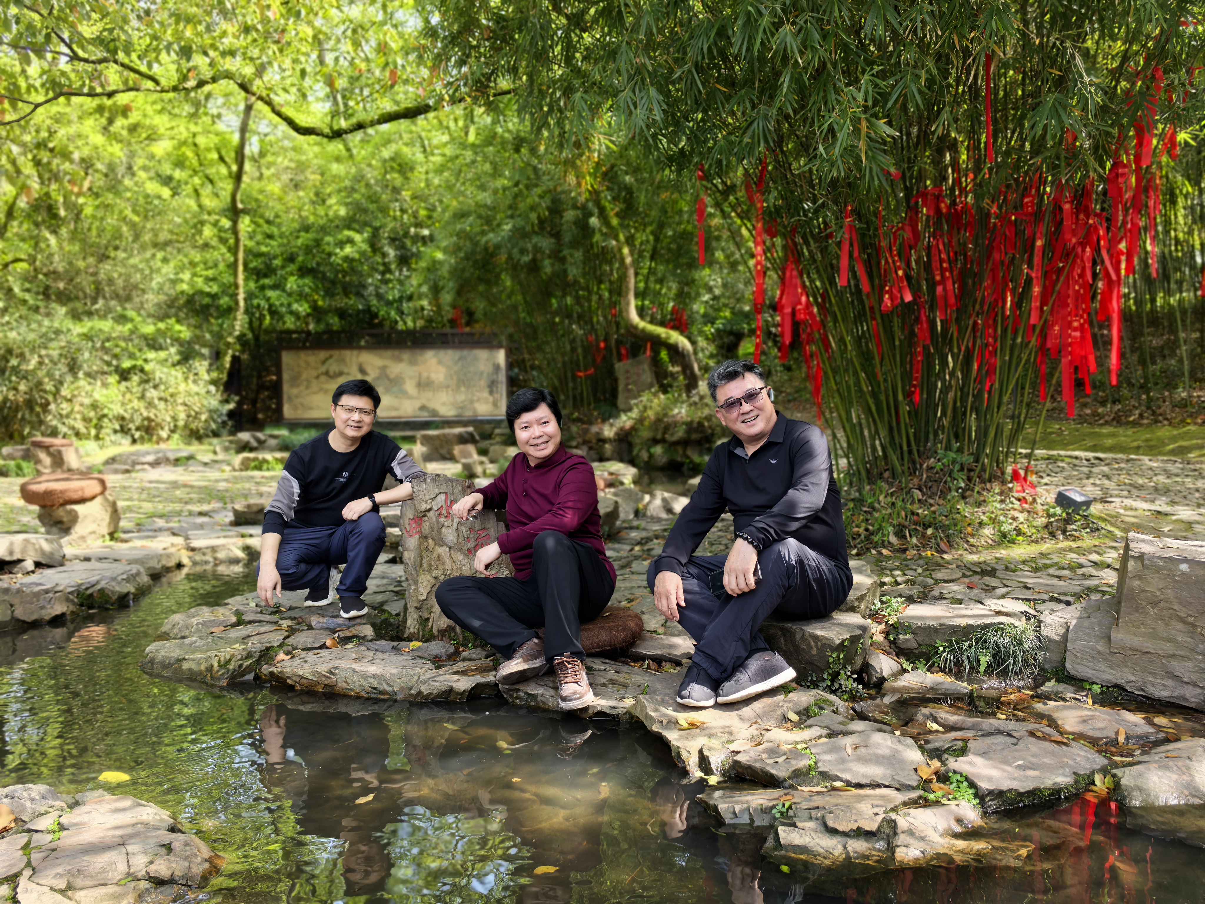 兰亭寻春记 文l 周子清 四月十日,为期两天的浙江省群文小戏作品加工会于绍兴柯桥落幕。我与余其斌、池浚三人,相约赴兰亭,赴一场跨越千年的笔墨之约。我们三人皆潜心临过王羲之的《兰亭序》,却各有体悟:我临池时日最久,笔下反倒难成章法,徒有执念;其斌习书不过两三年,已然深得帖中韵味,形神兼具;池浚虽言未曾刻意临摹,可手机里的为他人题写的书斋雅号对联,尽显深厚笔力,藏着不事雕琢的功底。怀着重仰书圣的赤诚之心,我们缓步走入这片藏着魏晋风雅的秘境。 是日天朗气清,惠风和畅,春风裹着草木的清润扑面而来。三人并肩而行,踏过青石板铺就的古桥,石板被岁月磨得温润光洁,缝隙间偶有青苔浅生,藏着江南古镇的温婉。一路行来,竹影婆娑,茂林环抱,曲水萦回绕亭台,步步皆是清幽景致。行至兰亭中央,那尊汉白玉王羲之塑像静静伫立,玉石质地温润莹洁,通体洁白无瑕,没有半点瑕疵与杂色,匠师以千锤百炼的刀工,精雕细琢出先生翩然的衣袂、淡然从容的神情,眉目间尽是魏晋文人的清逸与洒脱,栩栩如生,仿若下一秒便会抬手执笔,挥就千古名篇。 望着这尊臻于完美的汉白玉像,心中不由得生出万千感慨:这般浑然天成的造像,从顽石到臻品,必经无数次的雕琢打磨、剔瑕去拙,方得气韵生动、形神兼备。而书圣王羲之,一生不过短短五十九载,却以有限的人生,铸就了传世千年的《兰亭序》,成就当之无愧的天下第一行书,笔墨之间,风骨、气韵、才情、心境浑然一体,成为后世书者永远仰望的高峰。这世间从无凭空而来的惊艳,正如这尊白玉造像,无千锤百炼便无熠熠风姿;王羲之的笔墨传奇,亦无半分侥幸,皆是日复一日临池学书、洗笔染墨的坚守,才换得笔下乾坤,千古流芳。 我们三人皆浸淫《兰亭序》临摹多年,此刻站在先贤塑像前,对书法之道的感悟愈发清晰。学书之路,首在入帖,需沉下心神,一笔一画揣摩笔法,一字一句体悟章法,朝暮临摹,反复研磨,沉潜于笔墨法度之中,吃透先贤的笔墨精髓,这是筑基,亦是沉淀,如同玉石初雕,先立其形,再修其神。可若一味困于帖中,照搬照抄,终究只是他人笔墨的复刻,难有自我风骨,故而更难在出帖,守其法度而破其桎梏,将所学笔法、所悟气韵,融入自身心性与阅历,落笔方能自成一格,这是蜕变,亦是升华。 书法的真谛,从来不是浅尝辄止的模仿,更不是哗众取宠的虚妄,而是如玉石雕琢般,耐住寂寞,历经千锤百炼、精雕细磨,剔除浮躁,沉淀本心;是如先贤临池般,笔耕不辍,历经千遍万遍的打磨,守正固本,而后方能突破藩篱,写出属于自己的笔墨风骨。世间万事,大抵如此,无论是书法研习,还是戏剧创作,抑或是生活修行,没有捷径可走,唯有沉心坚守,精益求精,方能守得云开,自成境界。 循着墨香步入书法馆,馆内陈列着历代名家临摹的《兰亭序》碑刻与墨迹,从褚遂良、虞世南、冯承素的精妙摹本,到沙孟海等近现代大家的挥毫之作,百家笔墨,各有风骨,铺开一卷绵延千年的书法史诗。馆间还陈设着诸多书法文创,融古意于当下,让千年书韵多了几分烟火温情。 廊下紫藤花已然过了盛期,繁艳褪去,只剩几串残花垂于藤间,淡紫的花瓣伴着微风轻轻摇曳,反倒添了几分清幽淡然的意境,不张扬、不浓烈,恰如书法之道,留白处更见韵味。我们此番出行,是探古,亦是访幽,是踏春,更是寻心,踩着春日暖阳,在清幽古境里,寻一份远离尘嚣的安然。 三人一路慢行,闲话漫谈,无拘无束,无主题不聊。谈日常烟火里的细碎美好,谈笔墨纸砚间的书法心得,谈古今艺术的传承与流变,也谈群文小戏的创作与匠心,从笔墨章法到戏剧神韵,从魏晋风雅到当下心境,言语间皆是知己相逢的惬意。 风拂过竹林,簌簌作响,伴着我们的闲谈声,与千年书韵相融。踏在这片浸染着墨香的土地上,俯仰间皆是文人雅趣,一呼一吸尽是春日清欢。既得了春日的自然之美,也觅得了艺术与心灵的共鸣,在魏晋遗风里,守一份对书法的赤诚,怀一颗清净自守的心,不负春光,不负笔墨,不负相知相伴的这份闲情雅趣。