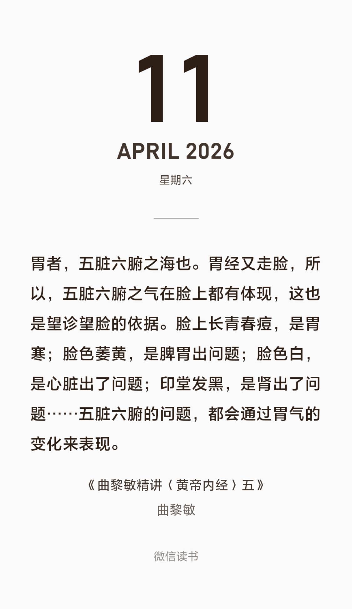 继续学习《黄帝内经》,五脏六腑的问题都通过胃气的变化表现出来。好多青春期的小孩长青春痘,其中一部分原因是冷饮吃多了,导致胃寒。