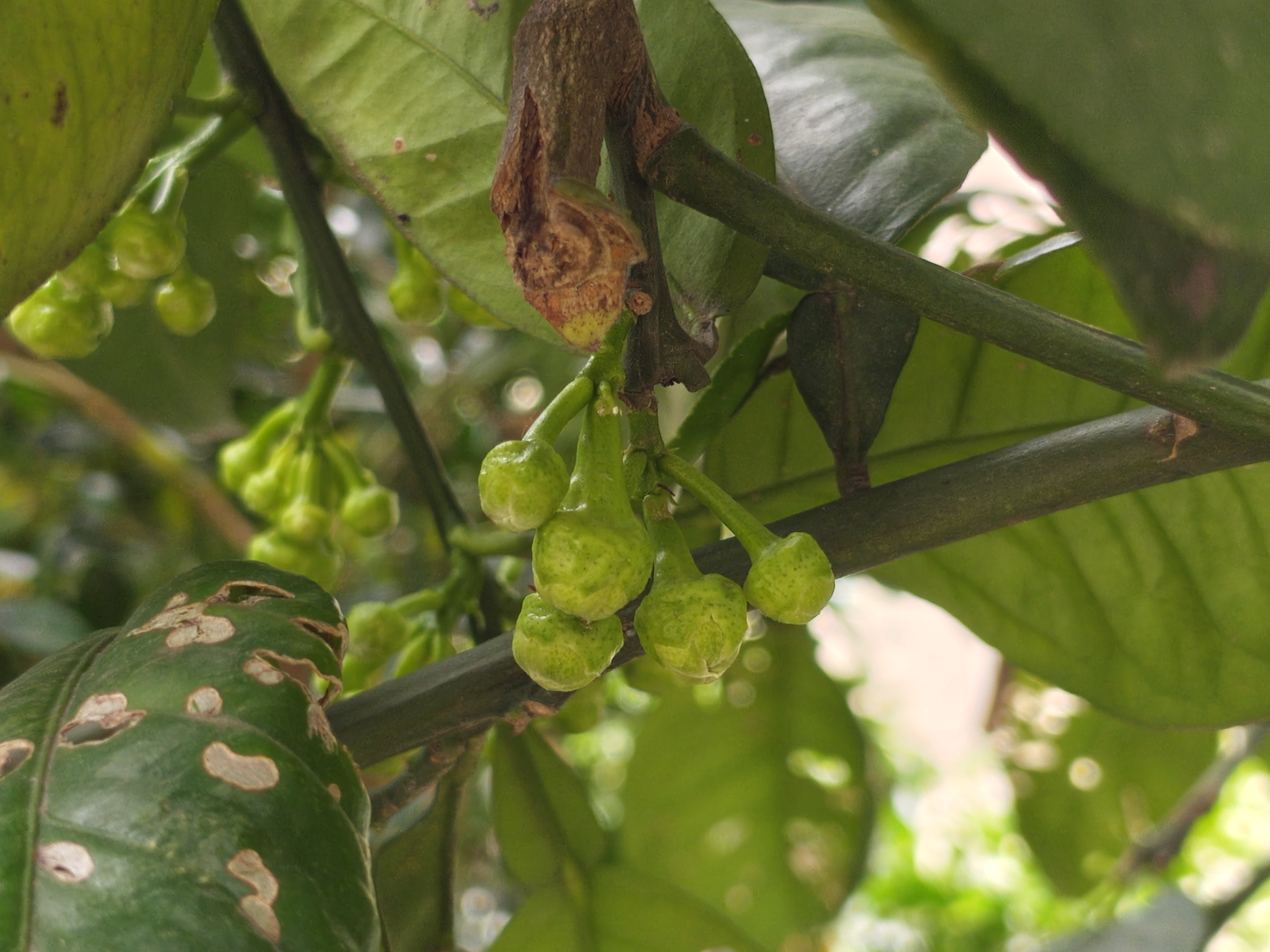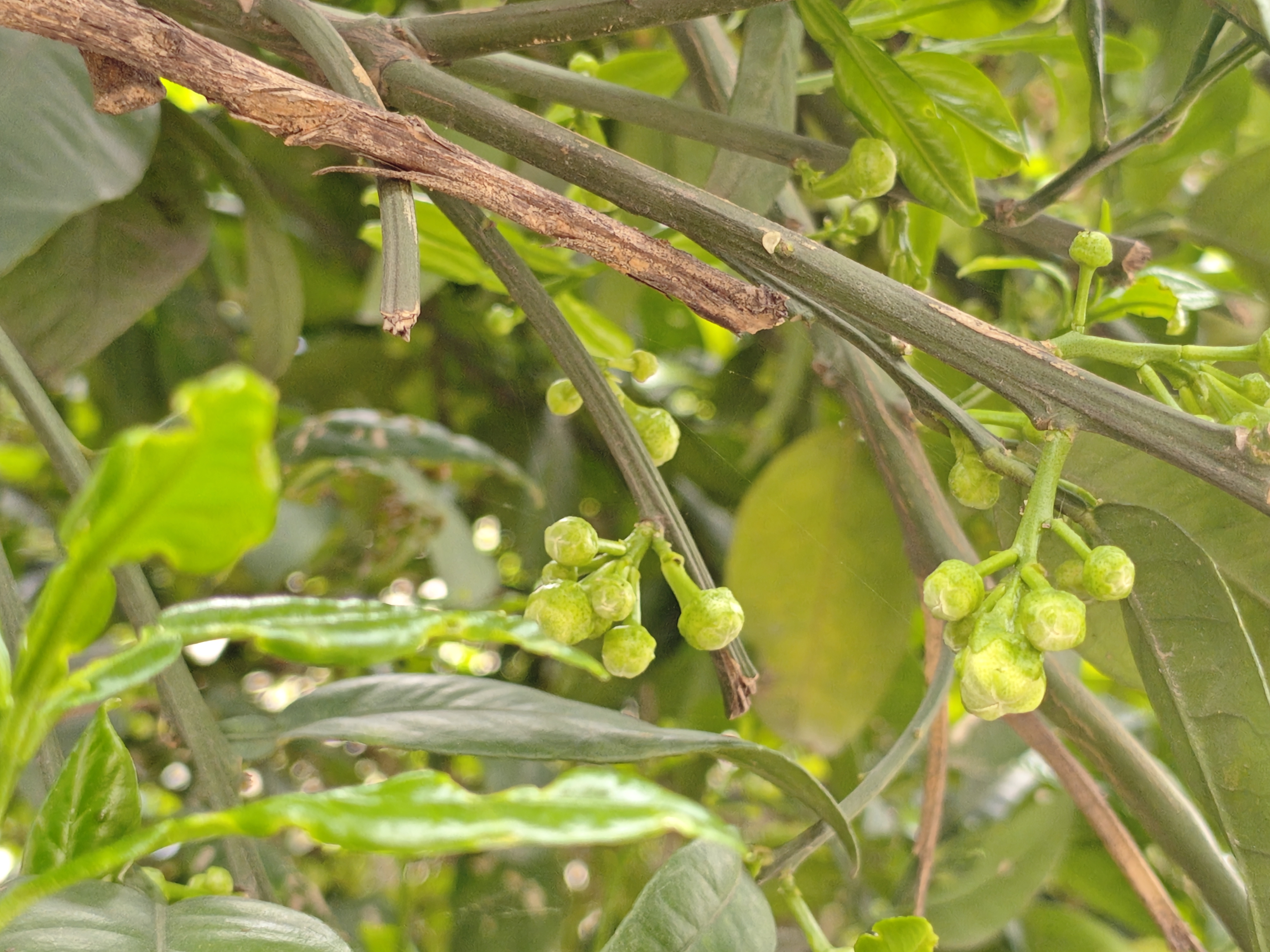 又见柚子花绽蕾 在枝桠的交错间, 青绿色的小铃铛, 是柚子花未拆封的信笺。 叶片是温柔的掌, 托着这些饱满的梦, 有些叶边染了时光的斑驳, 却让新生的绿, 更显倔强。 阳光漏过叶隙, 在花苞上跳荡, 像细碎的星子, 坠入青涩的期待里。 那些簇拥的花骨朵, 紧抱着春天的秘密, 风过时, 便轻轻摇晃, 似在低吟, 关于绽放, 关于芬芳的约定。 枯褐的枝痕旁, 新绿的芽正探身, 生命的交替, 在这一方小天地, 静默成诗—— 每一颗花苞都是时光的琥珀, 封存着夏的热烈, 秋的甘甜, 和冬的沉淀, 在叶的脉络里, 在风的呼吸中, 等待一场, 盛大的苏醒。