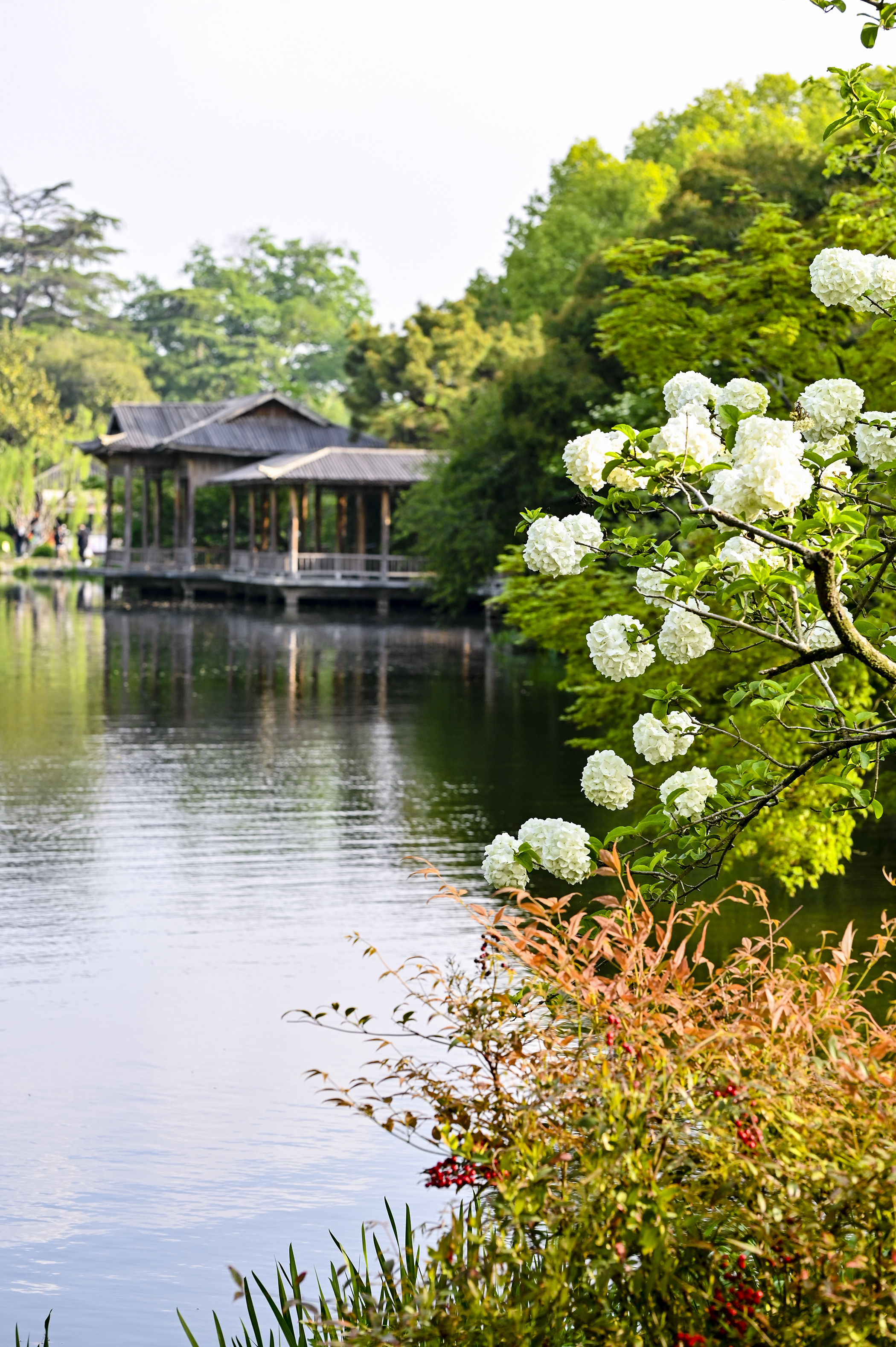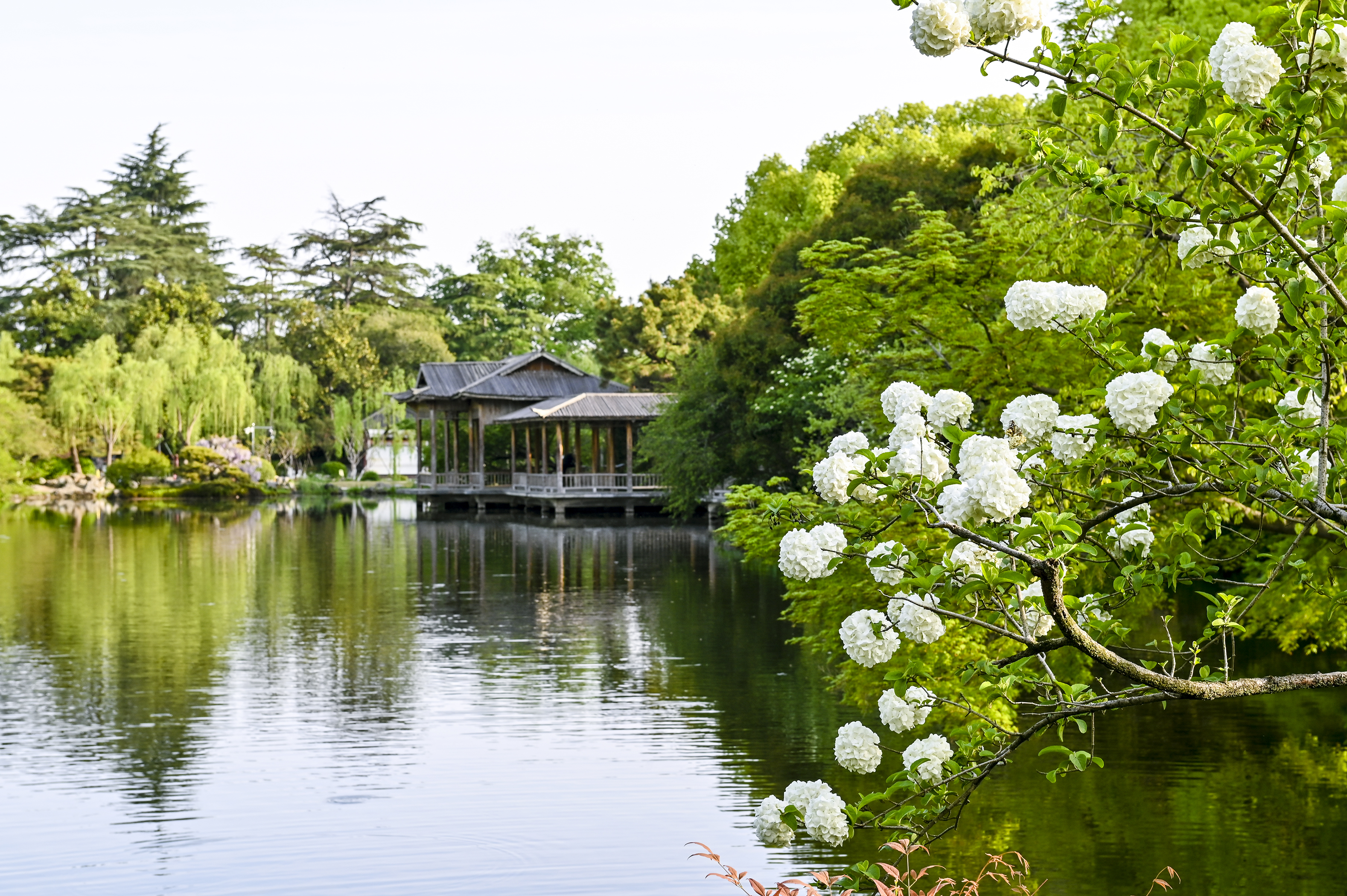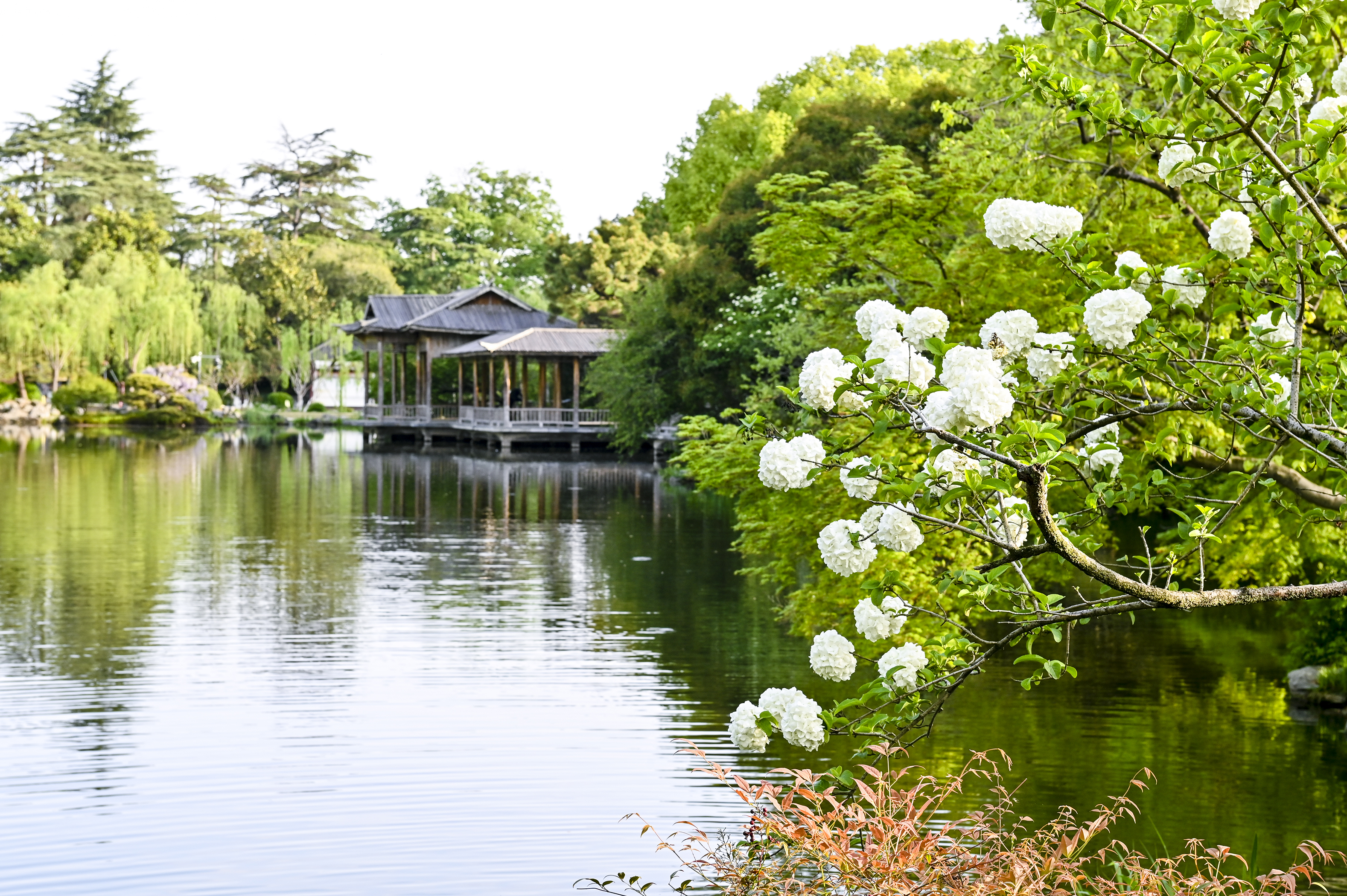 绣球如雪,亭台如画,一湖烟水映花港