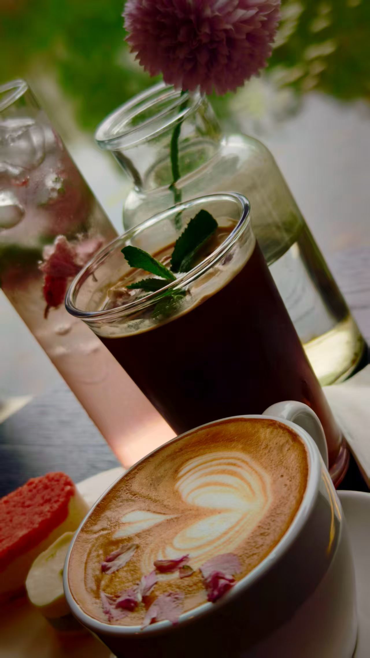 春风拂面,公园廊下。樱花压枝,咖啡温盏。惬意, 在繁花与醇香之间流转。