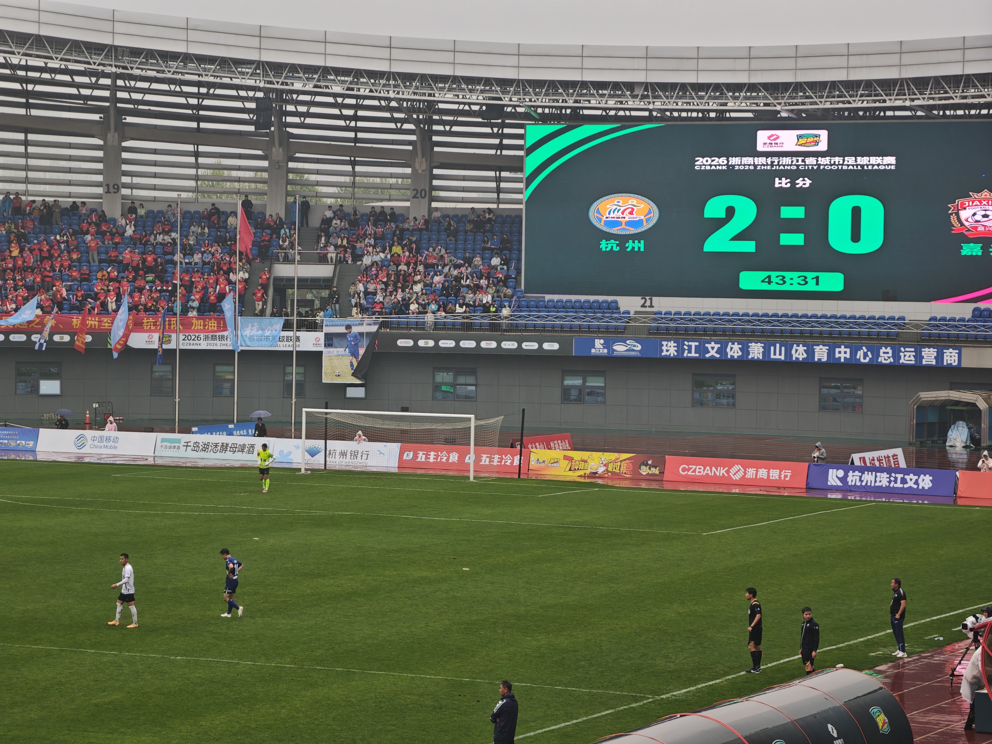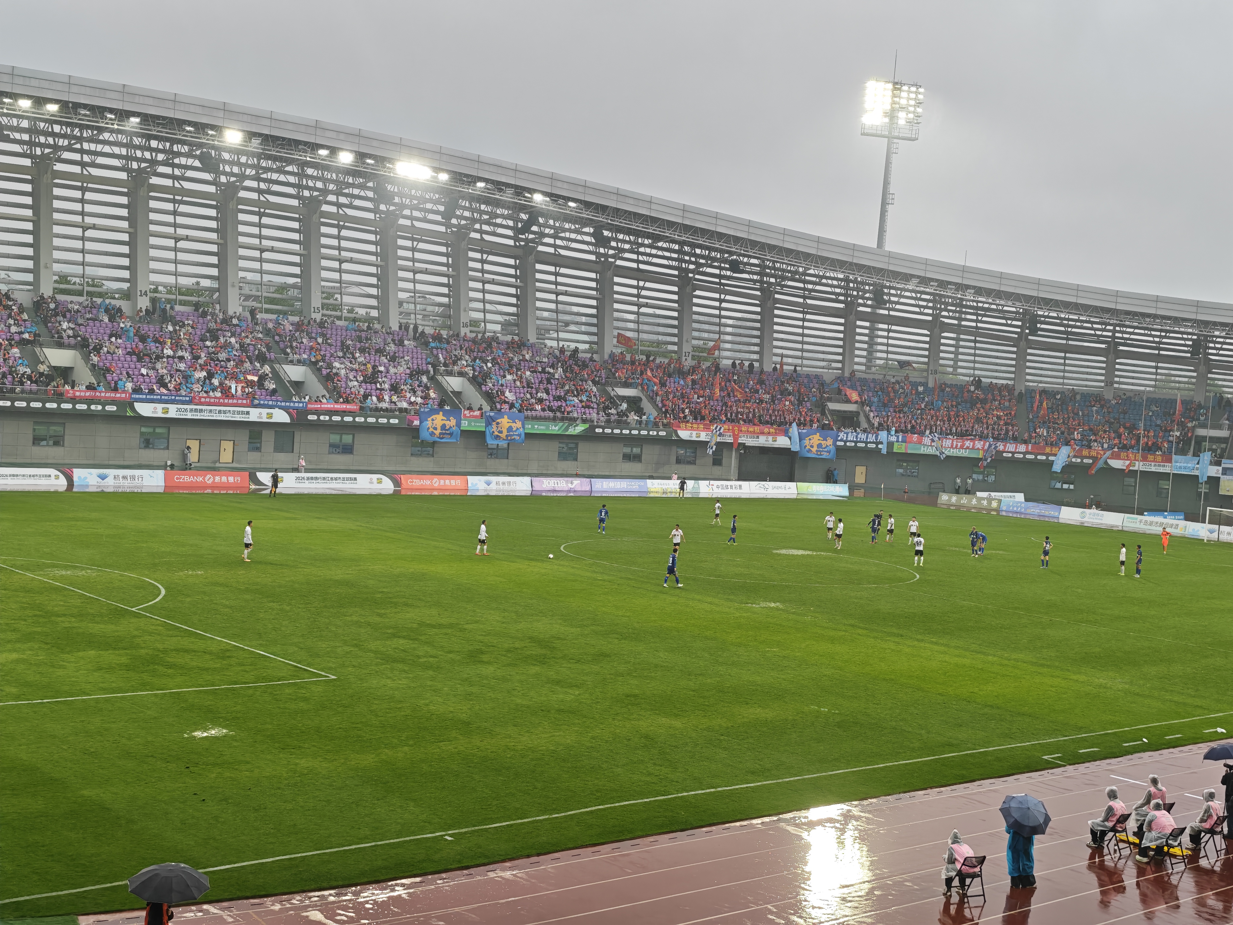 第一次来,萧山中心体育场🏟️承载着这座城市的足球热情与梦想,每一次奔跑都凝聚着汗水与坚持,这场雨,是天空为你们奏响的战歌,是大地为你们铺设的洗礼。雨中的赛场,我们参客在为自己的队伍加油,让风雨磨砺你们的意志。你们是雨中的勇士,是绿茵场上的骄傲!我们相信,无论晴雨,你们都能赛出风你们都是我们的骄傲!愿你们在接下来的比赛中,为杭州争光,为球迷带来更多精彩瞬间!杭州队,加油,嘉兴队加油,第二轮杭州队主场2:0赢了嘉兴队,圆满结束~足球队伍们辛苦了~