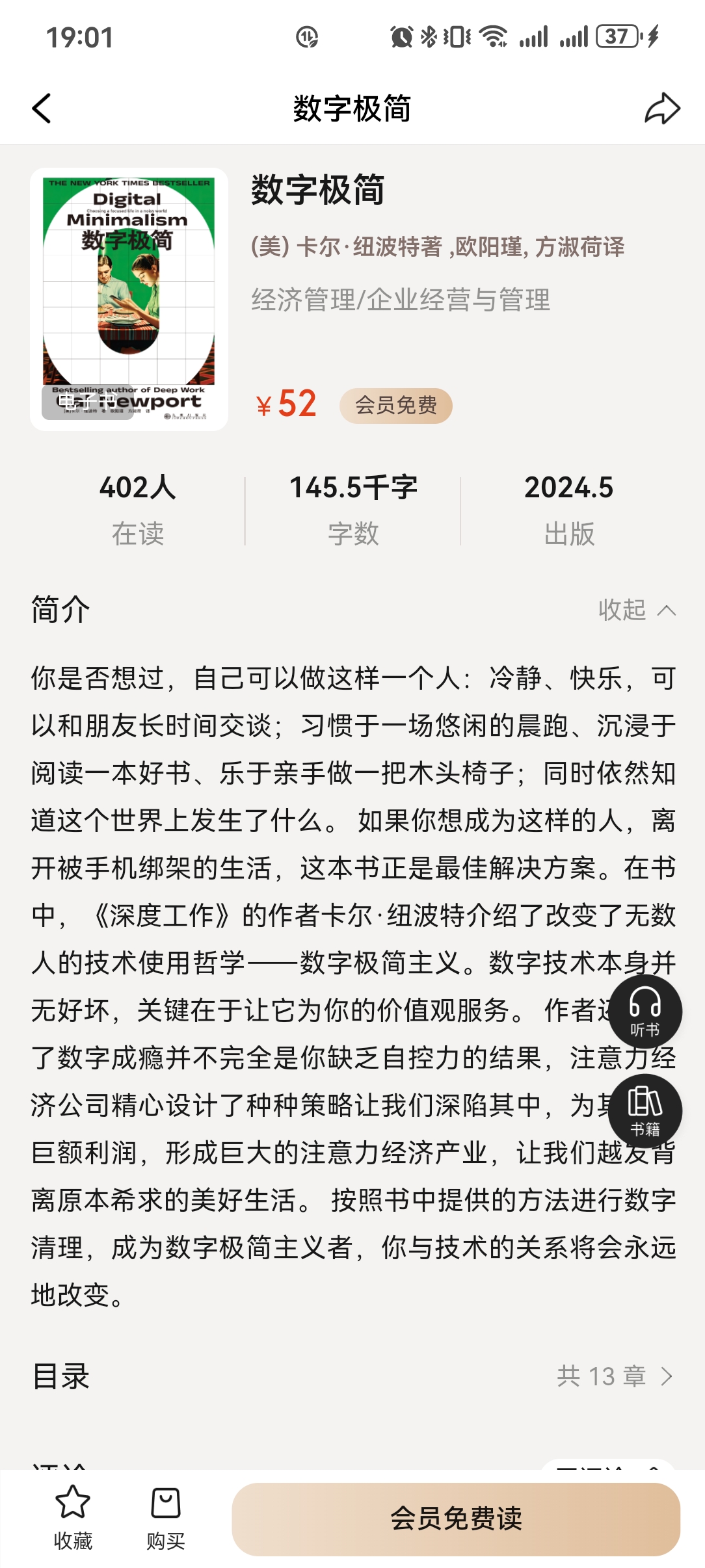 作者卡尔纽波特向读者介绍数字极简主义,希望能帮助读者脱离手机的绑架,过上真实的生活。手机只是一个工具,并不是什么事情都需要它的帮助。用得过多,之只会让人失去理智,失去健康,失去快乐的生活。