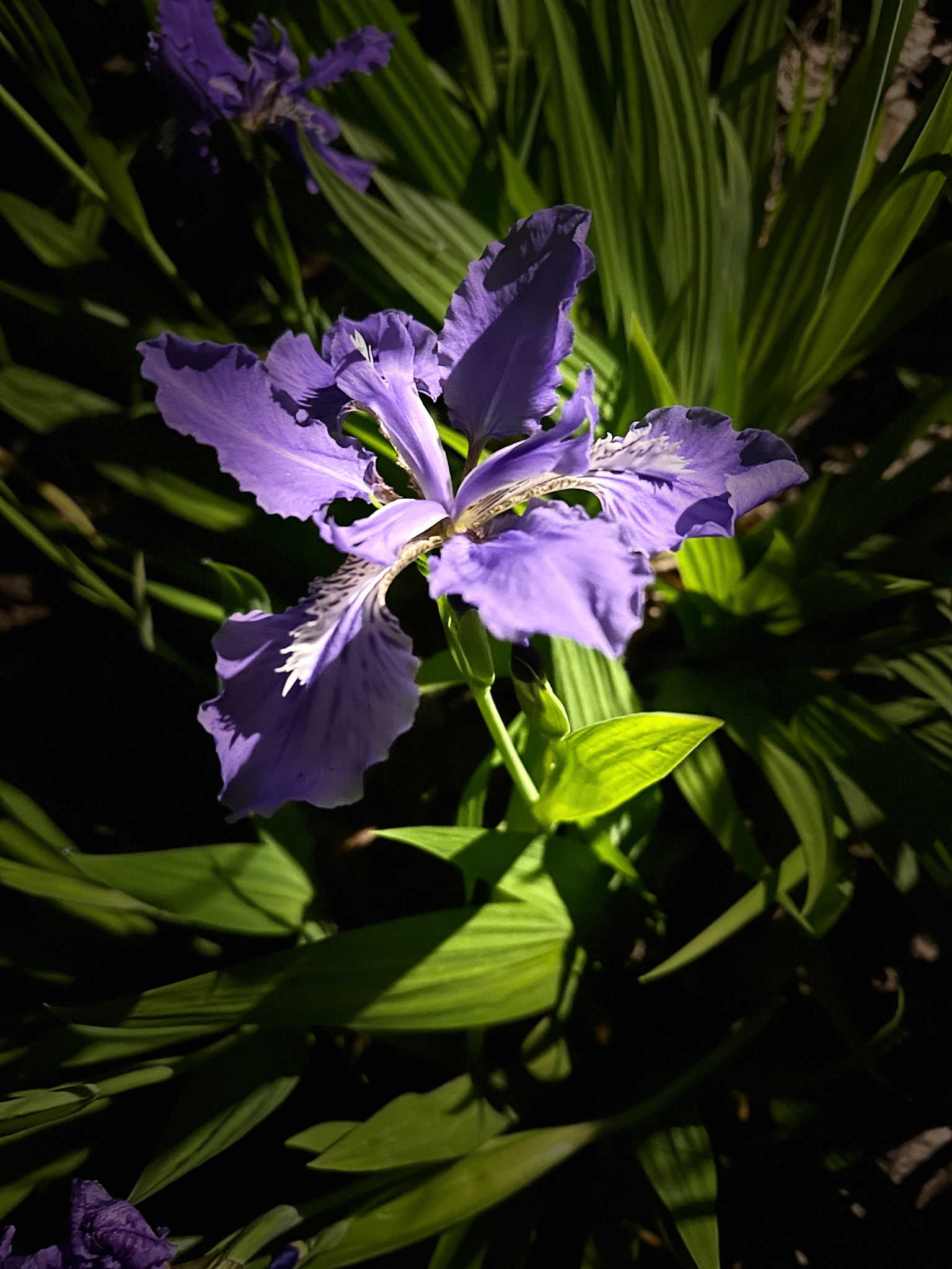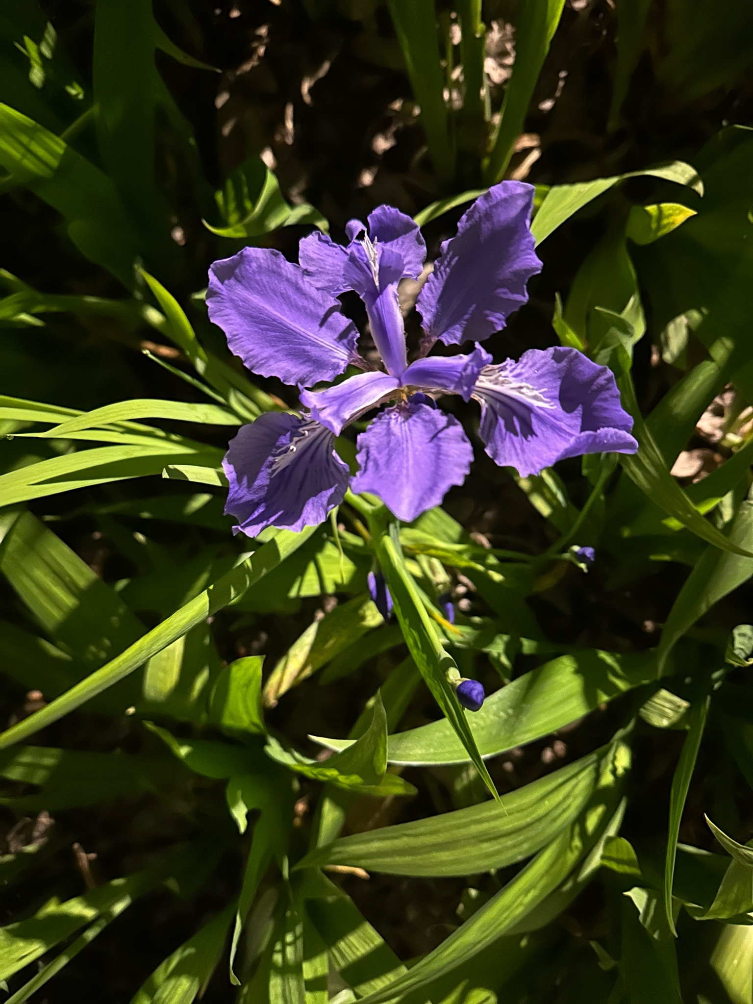 春光漫过叶隙,紫鸢尾悄然盛放。 花瓣如蝶翼轻颤,脉络里淌着时光的微光; 金蕊在光中低语,绿叶托起一整个柔软的午后。 俯身,世界便小成一帧—— 纹理是风写的情书,光影是大地未落款的诗。 原来最盛大的绽放,从不需要喧哗。