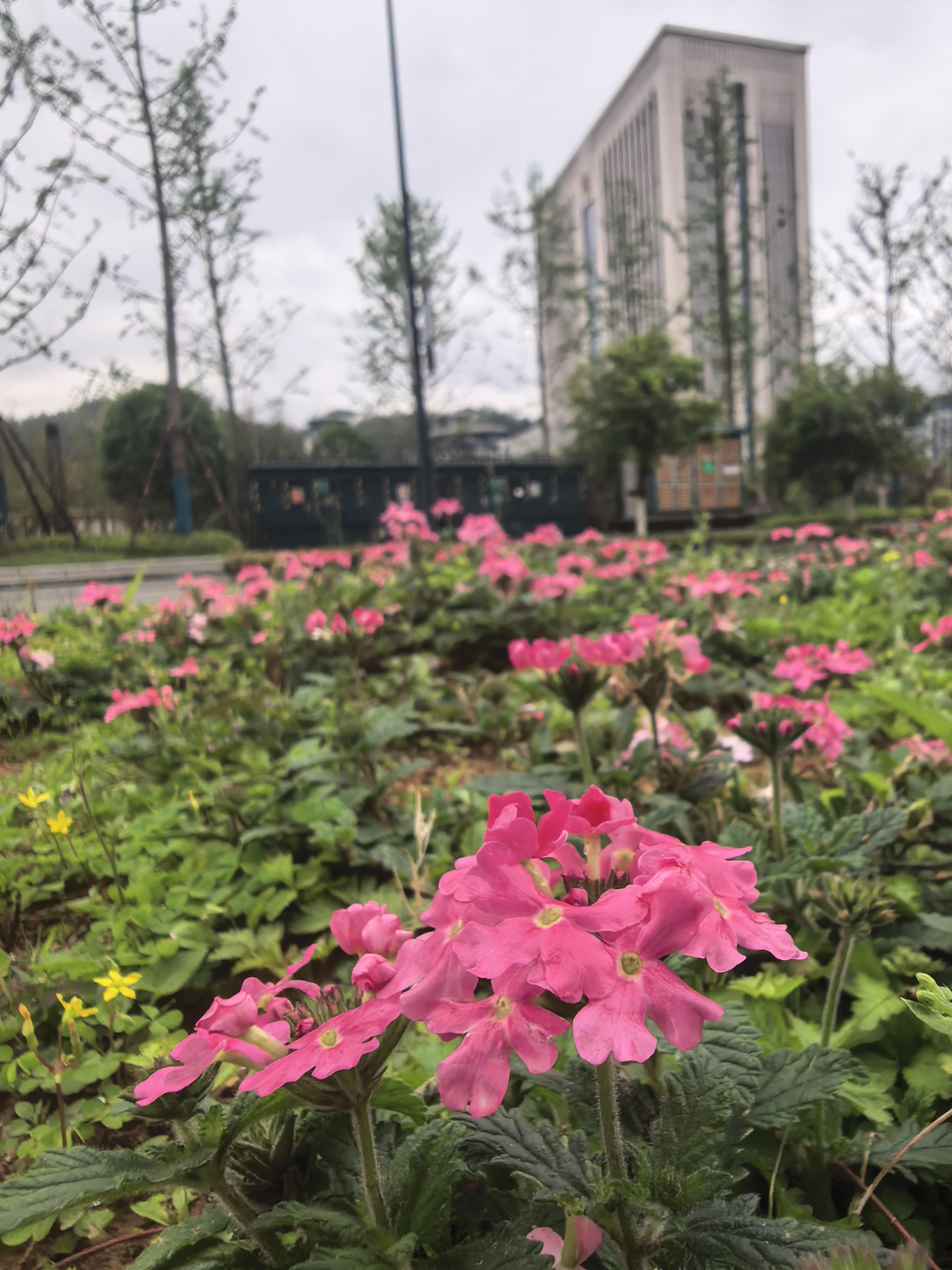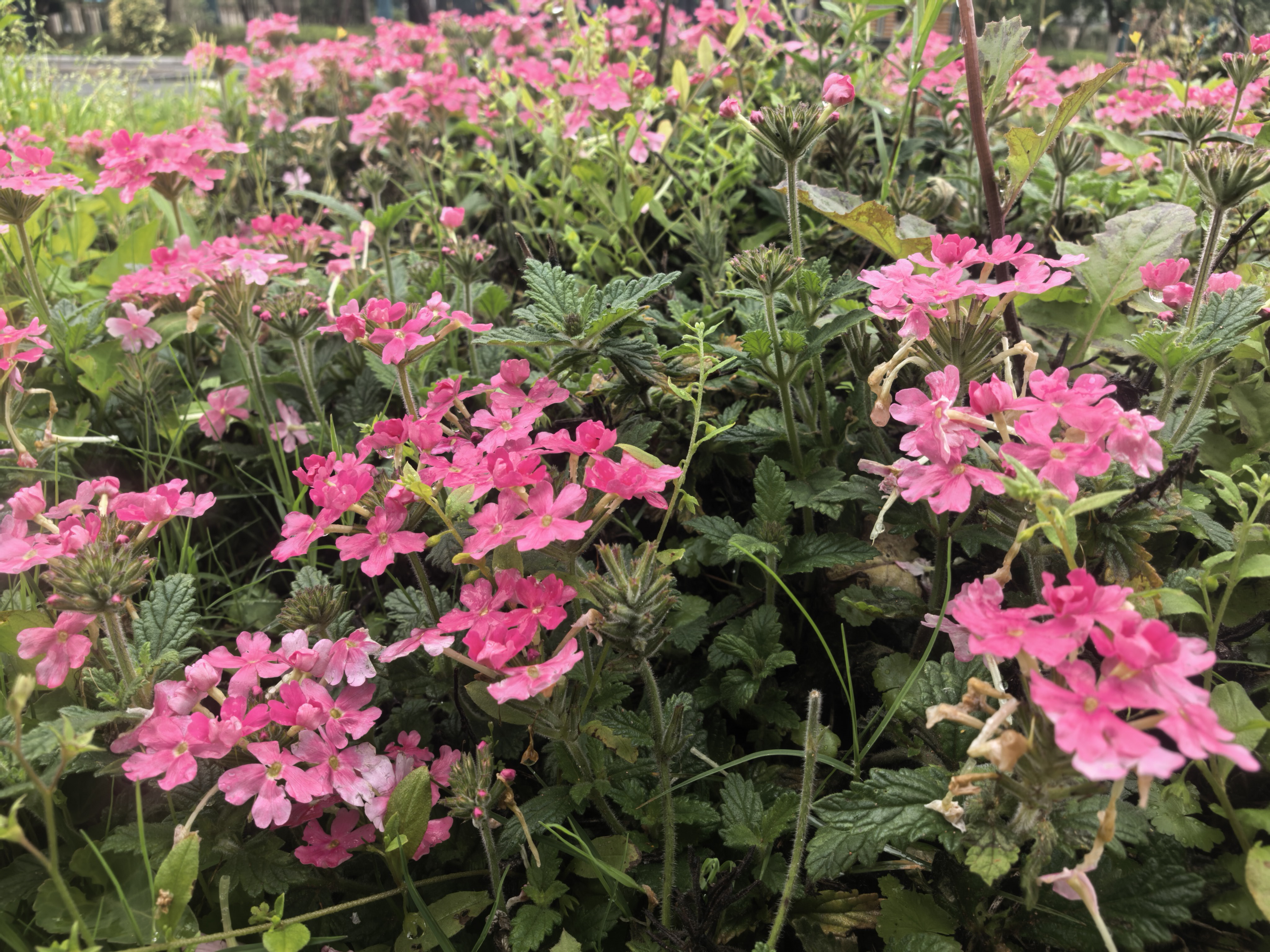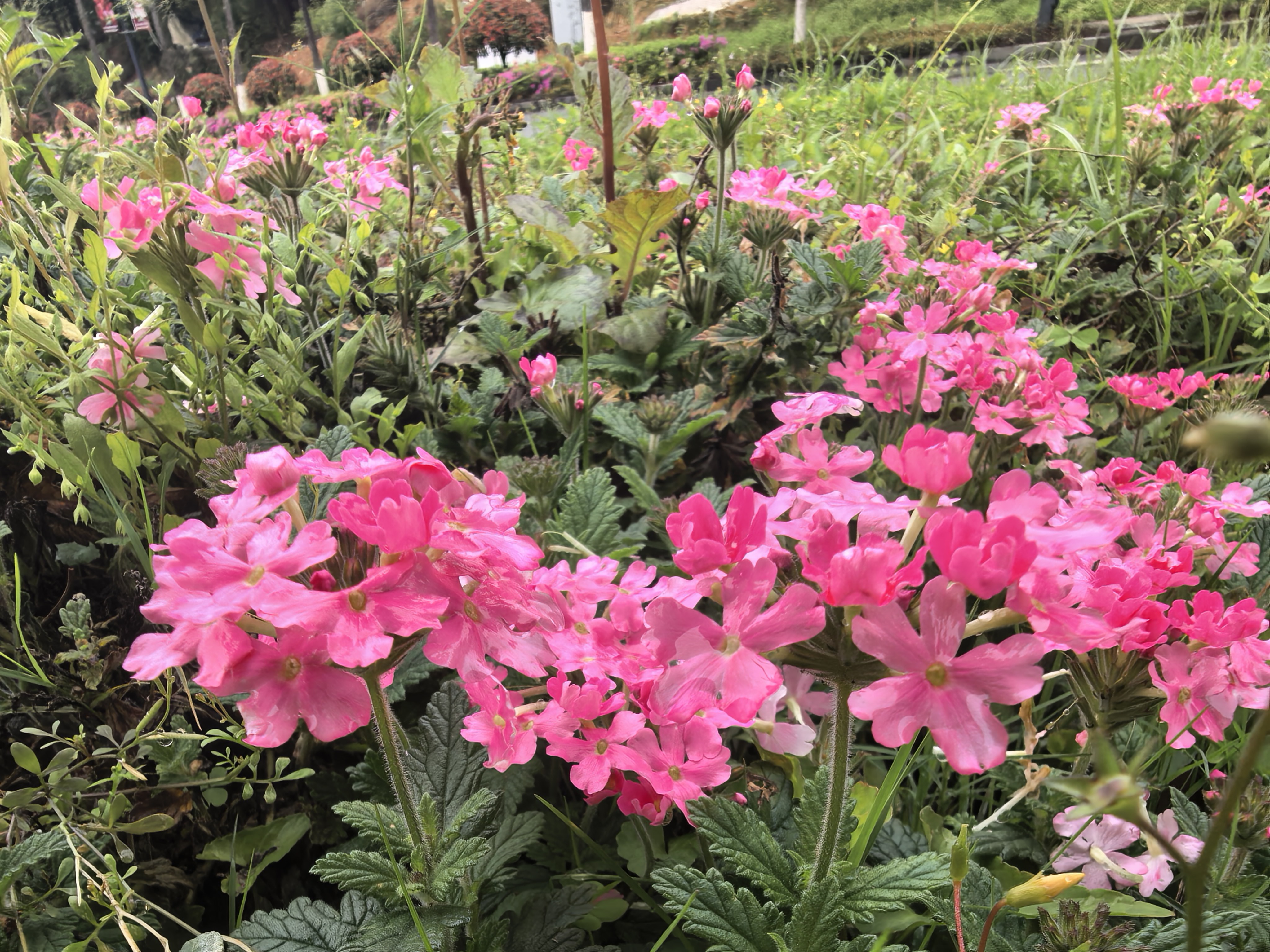 东环路偶遇粉红马缨丹花海,阴天也挡不住的春日小确幸~