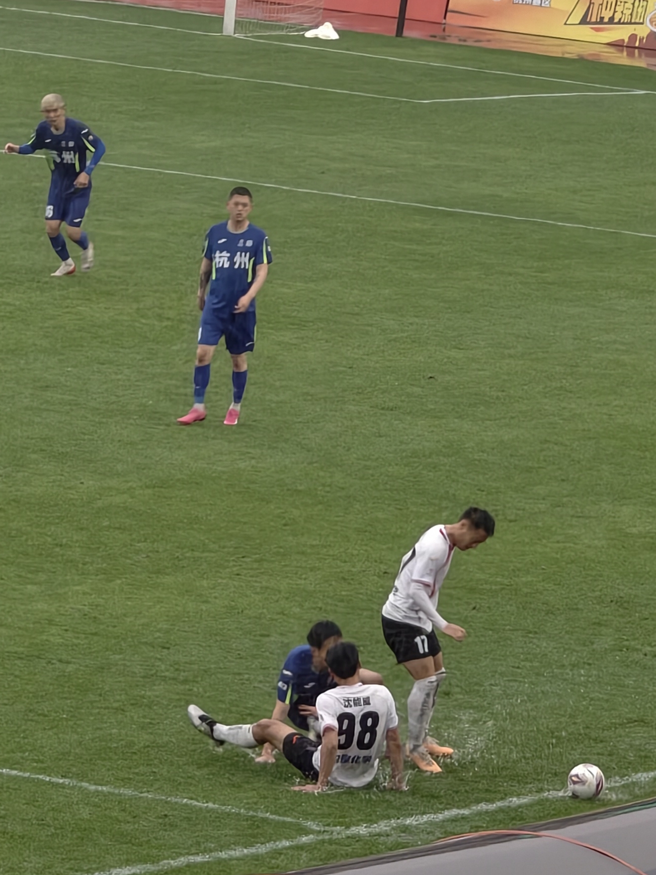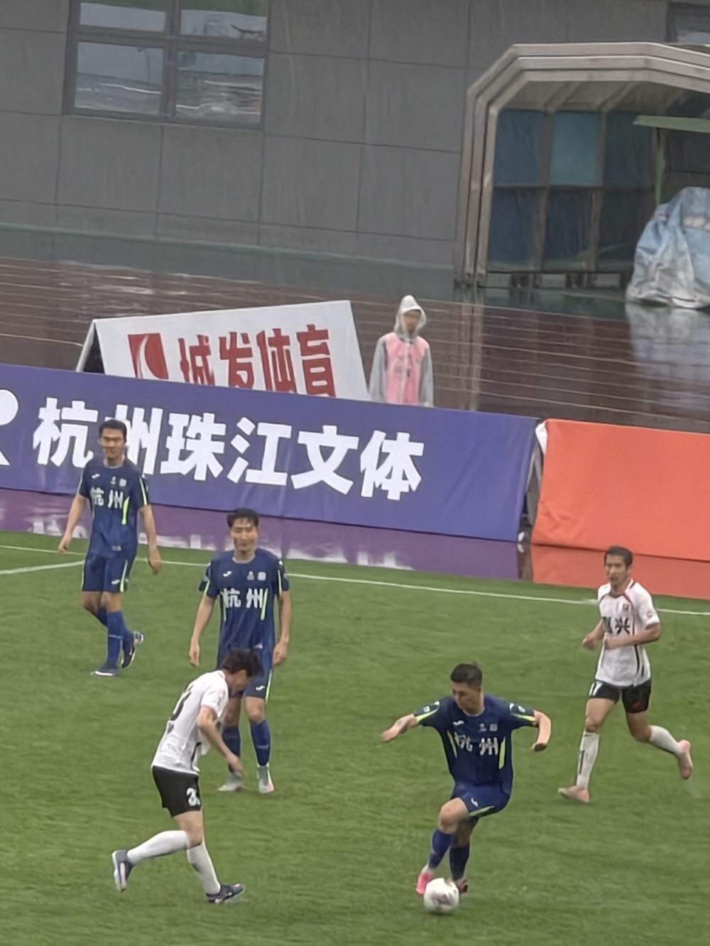 冒雨赶去萧山体育中心体育场,看吴越杯杭州对嘉兴足球赛。雨持续的下着,足球场里水花四溅中球员们在奋力拼搏,助威,呐喊,我们一样燃。点燃青春的热血,激情燃烧,相机拍下这一帧帧珍贵的镜头,纪念这场民间业余球员艰苦的比赛。