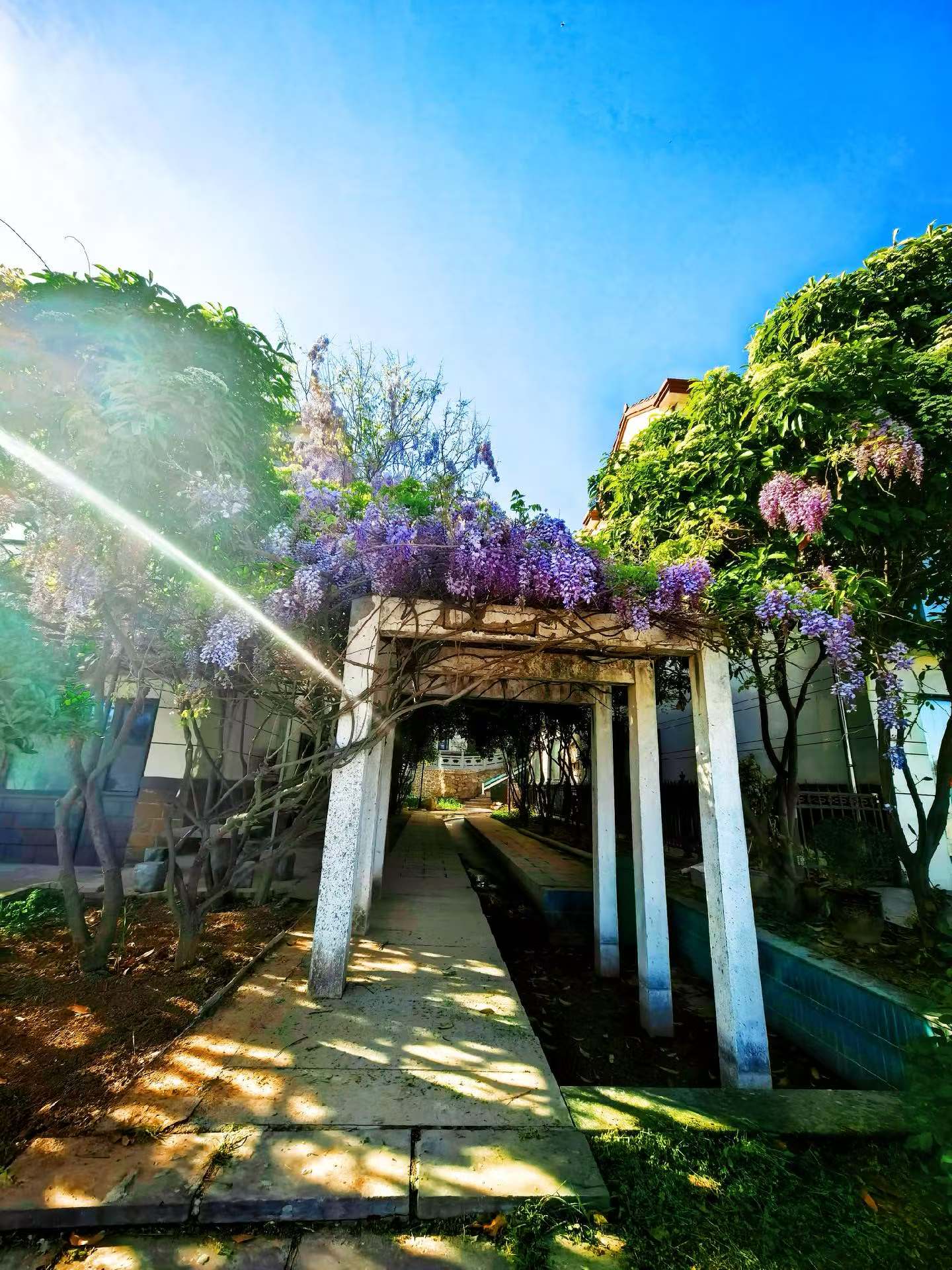 紫藤花开,花香四溢,感觉整个人都被治愈了呢~ 身心舒展,每天都开开心心的,元气满满迎接春天