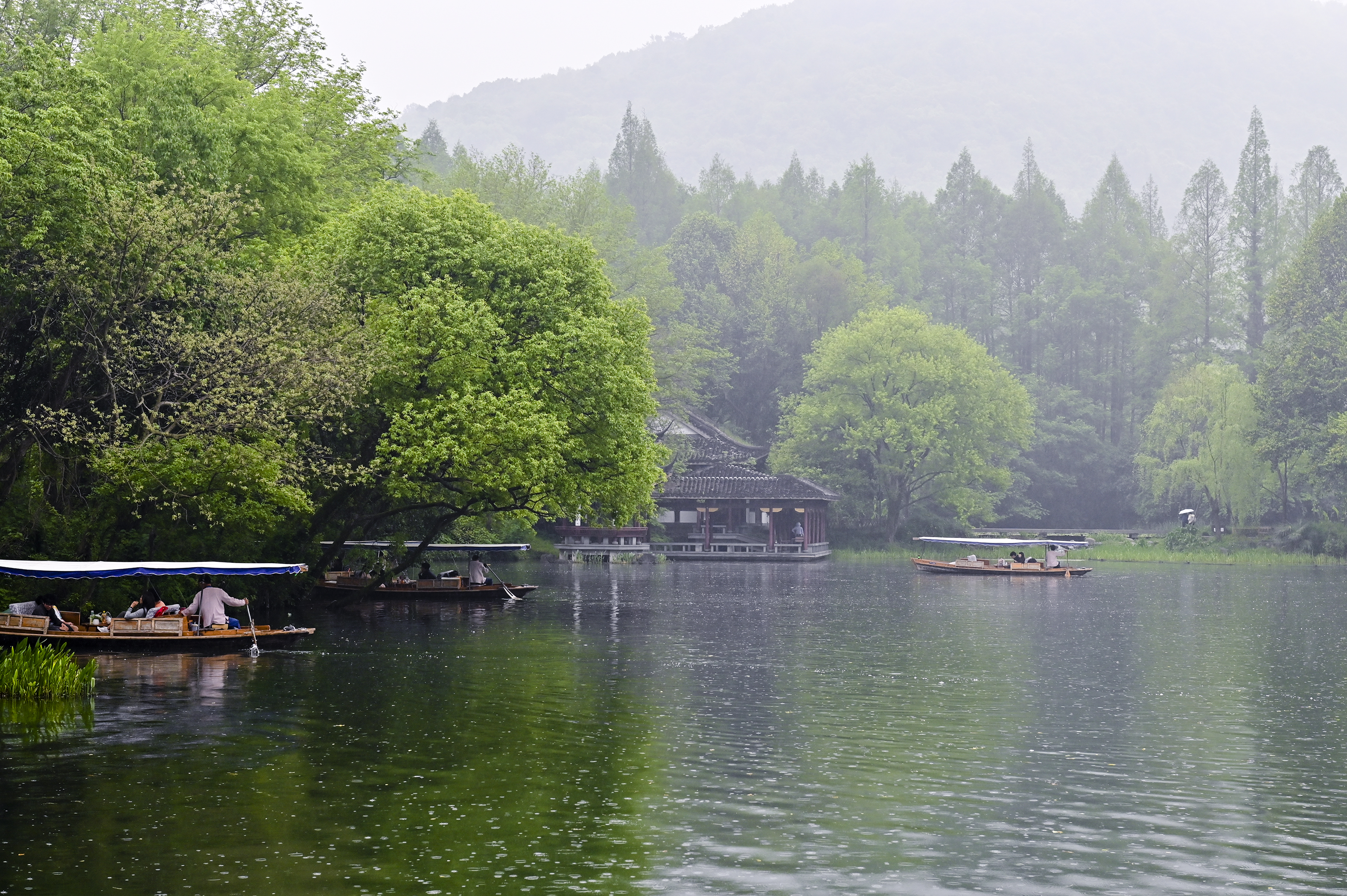 暮春谷雨,西湖泛舟。风是软的,雨是润的,船是慢的,连时光都变得温柔起来。