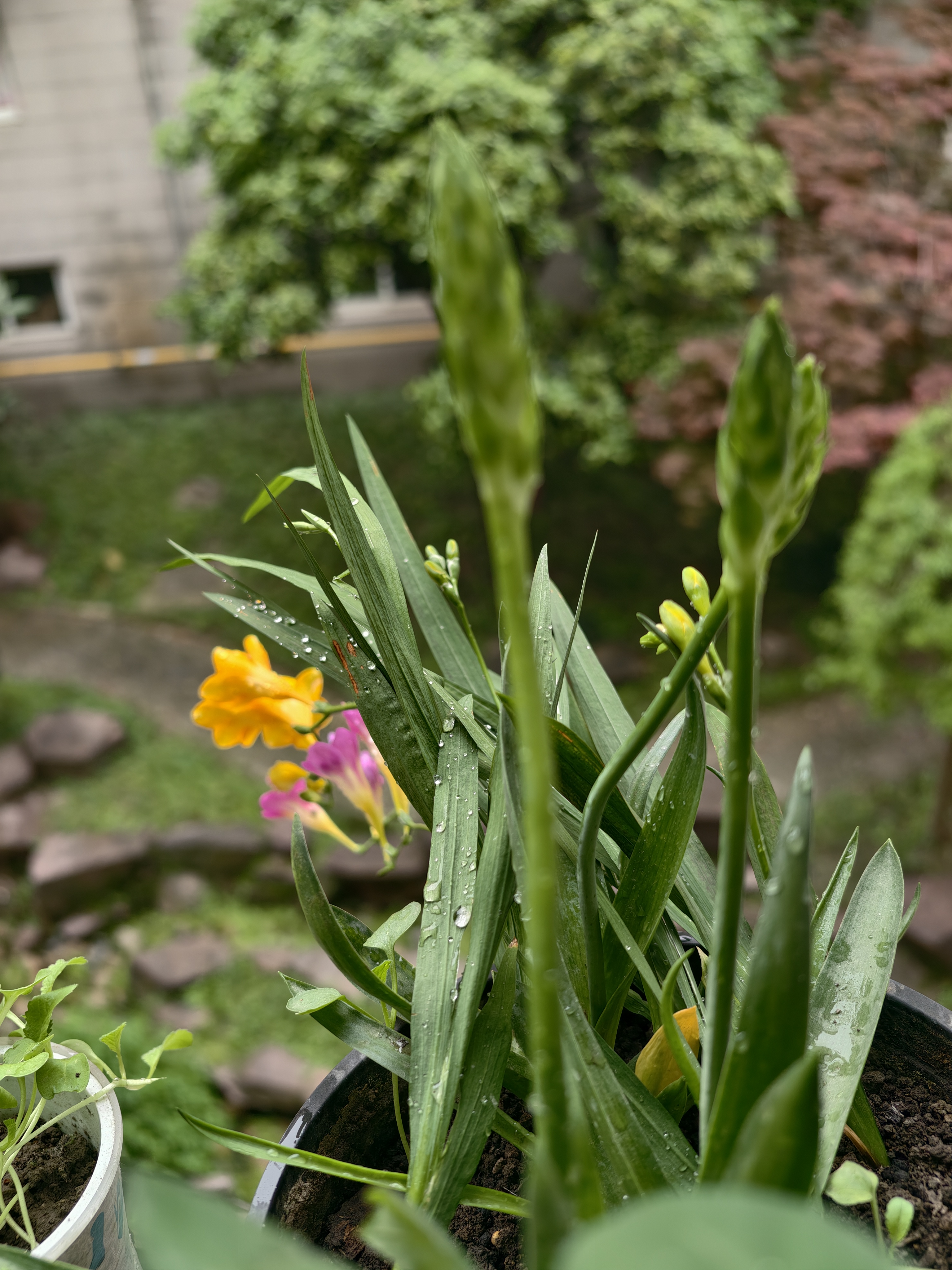 今天是个下雨天,雨中的阳台上,曾经种下的花球,绽放的自己美丽浪漫的身姿,还有好几个花苞,也含苞待放呢。