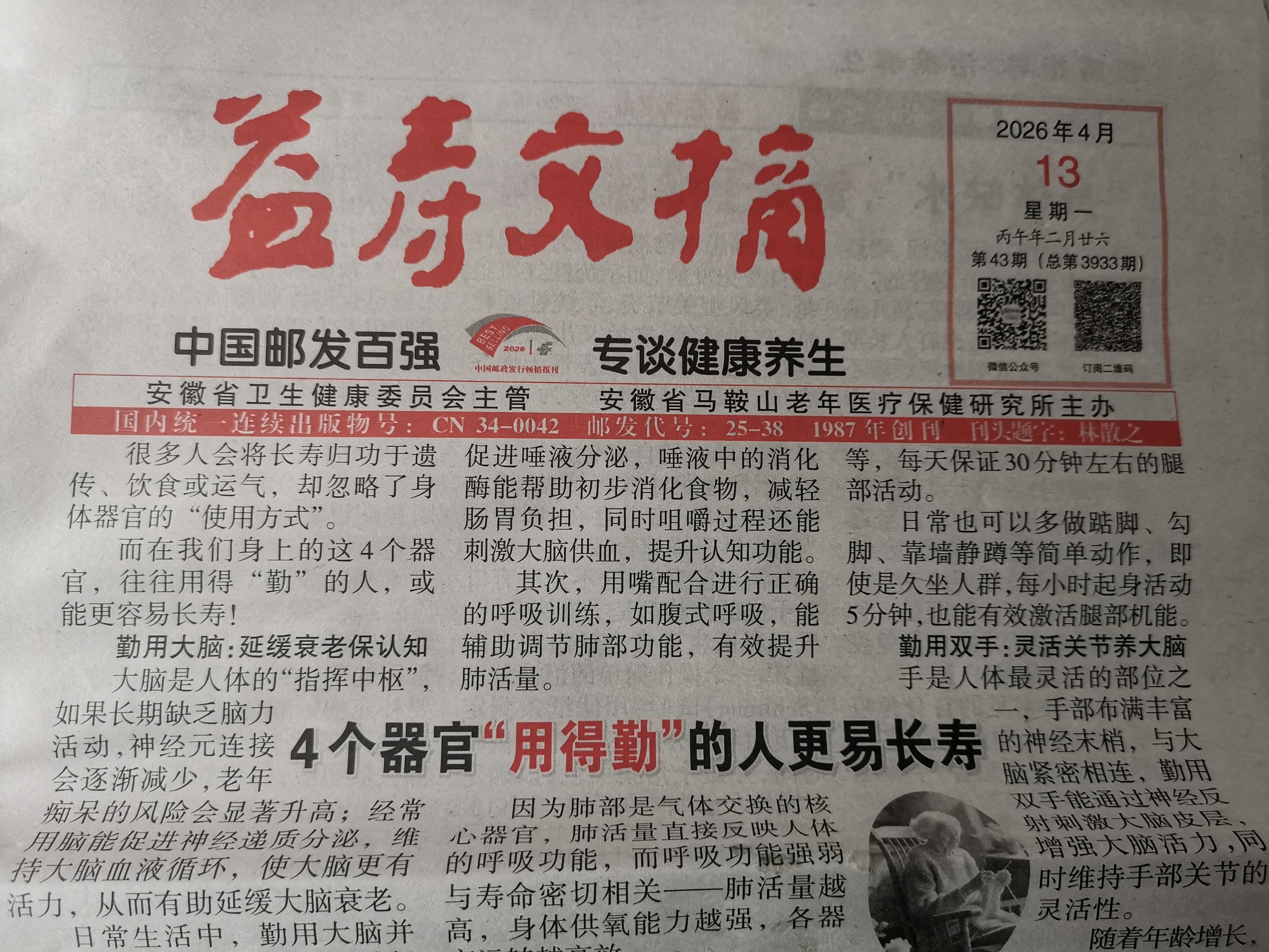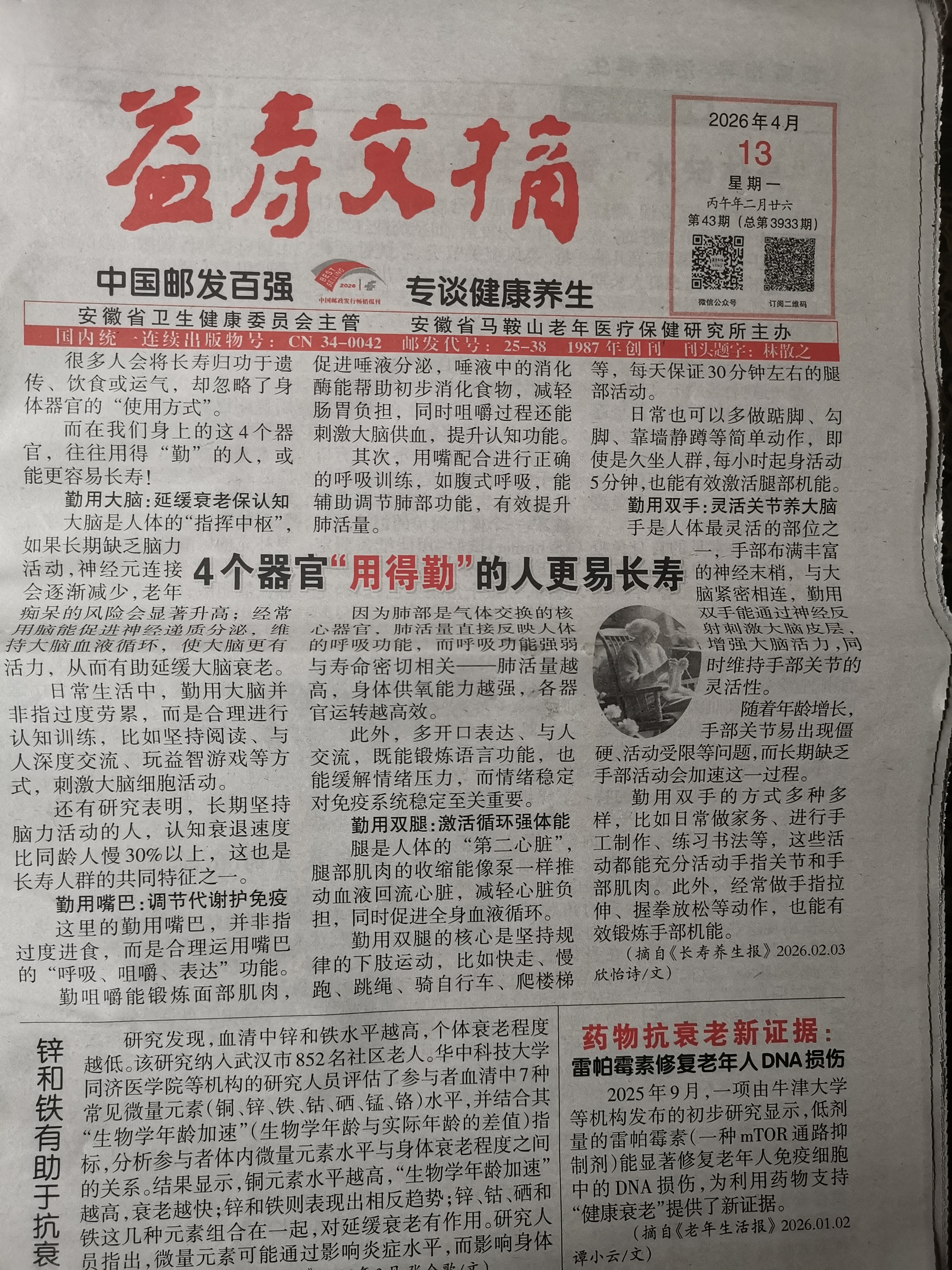 🇨🇳奇怪事儿!我第一次见,今天是2026年4月12日星期日,收到的《益寿文摘》报纸却是2026年4月13日星期一,提前一天发行属正常吗?求教编辑老师啦😜