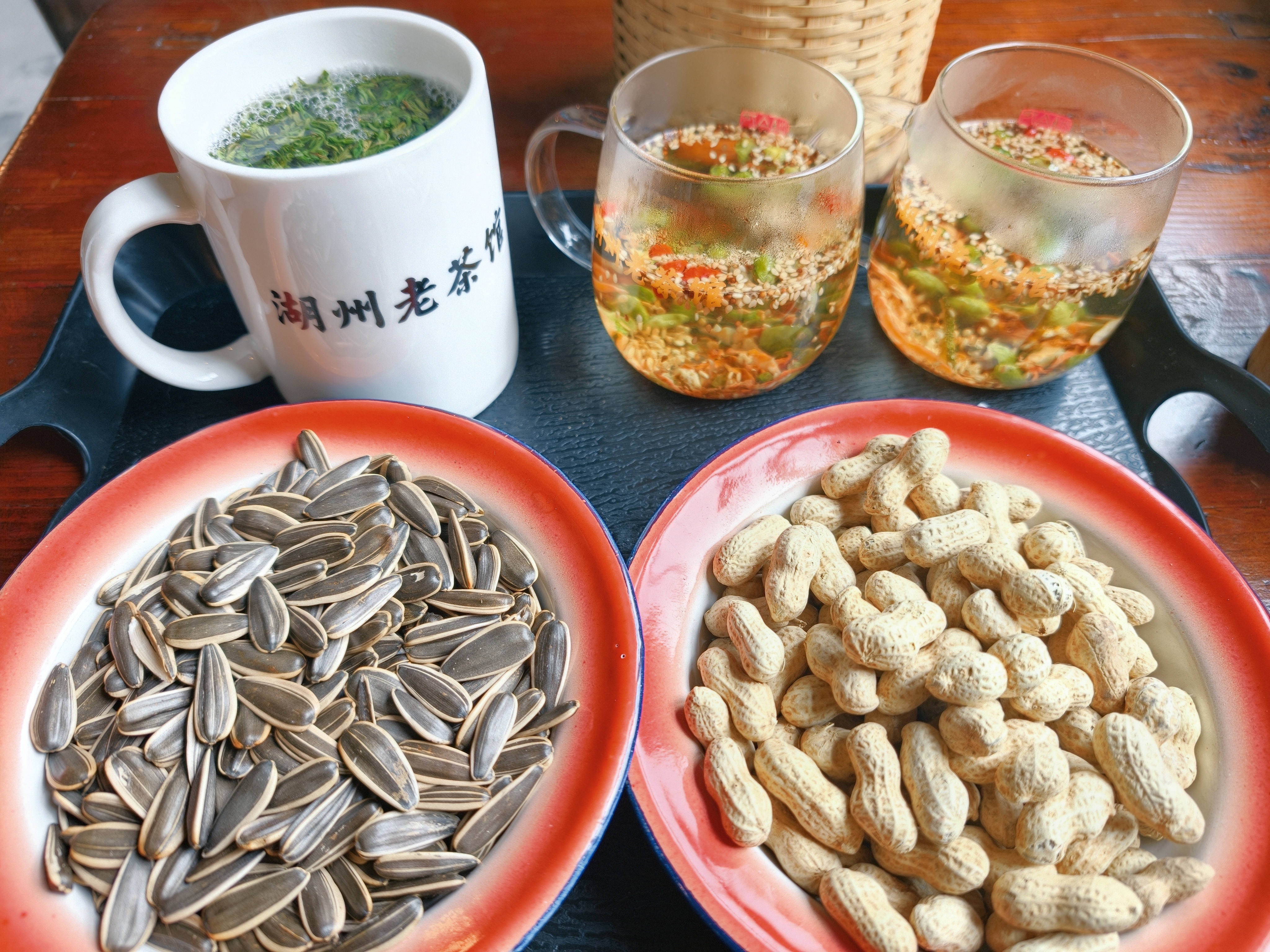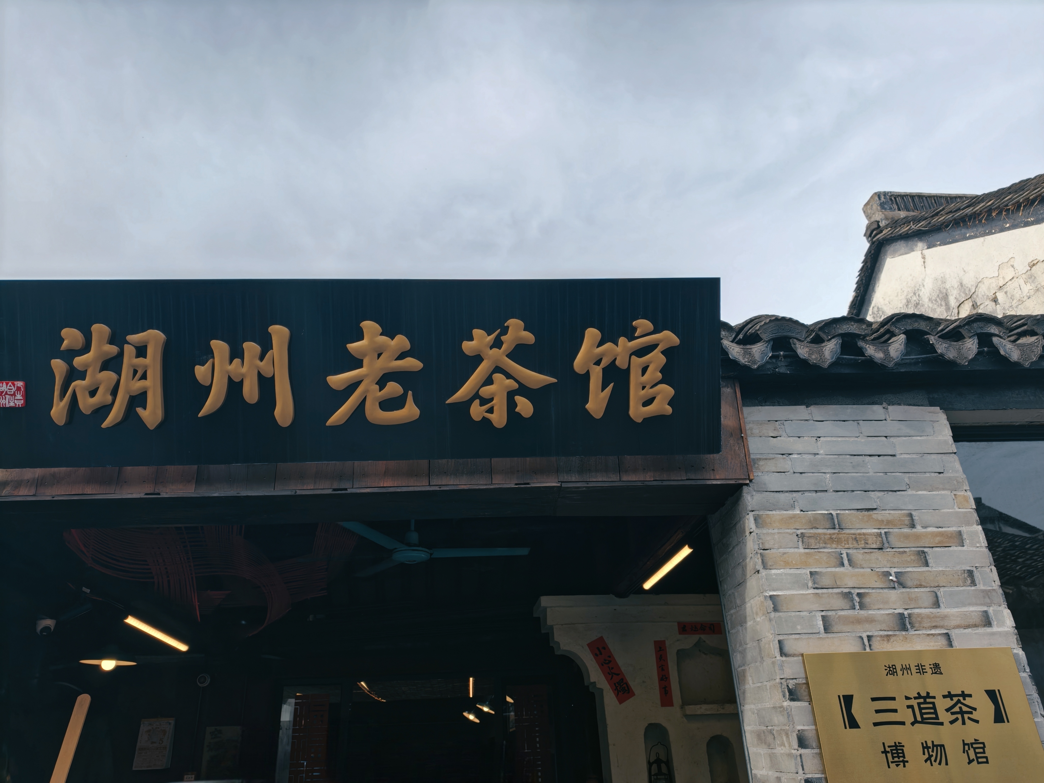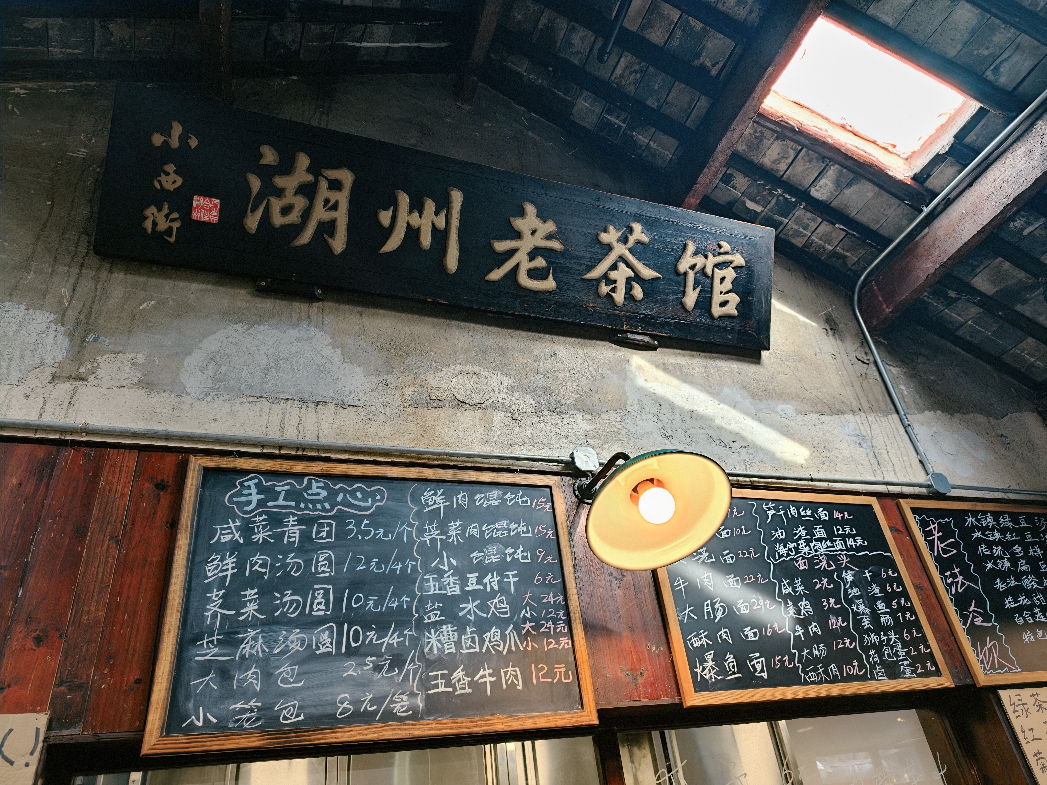 湖州老茶馆里的熏豆茶和柠檬奶太惊艳 古色古香的茶馆氛围 👉 推开老茶馆的木门,抬头就是黑瓦木梁,阳光从天窗洒下来✨,墙上挂着红灯笼和福字,竹编蒸笼堆在角落,瞬间穿越回小时候外婆家的厨房👵。 必点的熏豆茶绝绝子 ✅ 端上来时被惊艳到!玻璃杯里浮着熏豆、笋干、芝麻,茶汤碧绿清澈🌿,喝一口先是豆香,后有回甘,配着盘子里的瓜子花生,聊天一下午都不腻~ 柠檬奶意外好喝 💡 本来以为老茶馆只有传统茶,没想到柠檬奶这么惊喜!奶盖绵密,底下是清爽的柠檬味,吸管戳下去混合起来,酸甜刚好解腻🍋,拿在手里拍照也超有感觉~ 来湖州别错过! 地址就在小西街上,跟着“湖州老茶馆”的招牌走准没错 人均20+就能坐一下午,性价比拉满💯 建议早点去,窗边位置能看到老街风景 #湖州探店 #春日喝茶 #宝藏茶馆 #春天“假”到 放“肆”出游# #镜头下的美好生活#