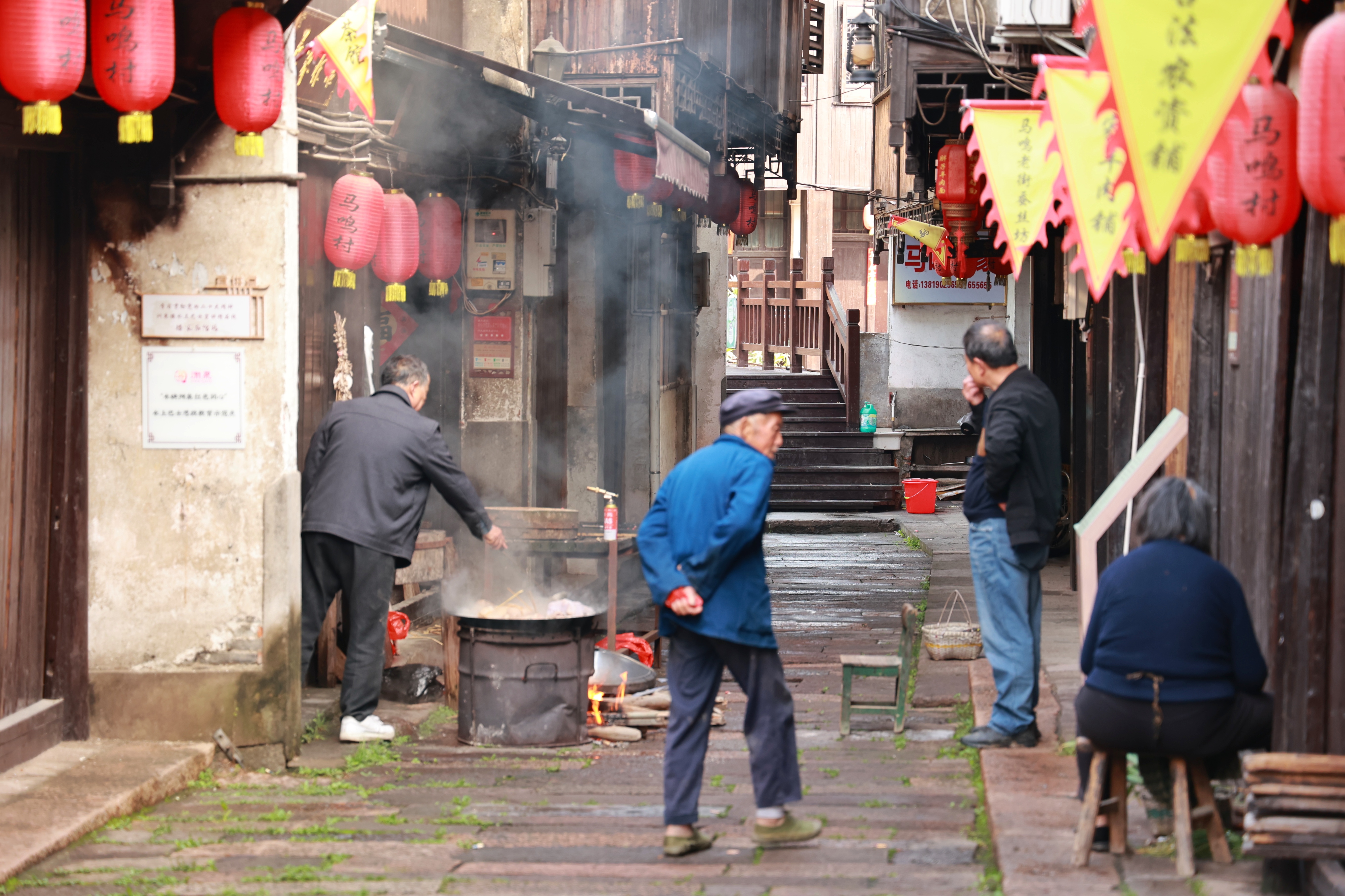 桐乡,马鸣老街(26~23) 马鸣老街,始建于唐宋,繁华于明清,老街全长50米,宽2米至4米不等,有居民二十余户,明清建筑保存完整,有面店、小吃店、杂货店、理发店、茶馆等数十家。 但茶馆最有特色,每天凌晨三四点钟,这里的茶馆就开门迎客,"茶馆"是老街最具代表性的江南文化特征,在江南一带都有喝早茶的习惯,老人们在这里赶集、喝茶、吃面、闲聊,过着休闲的日子,至今保持着原汁原味的江南市井生活方式。