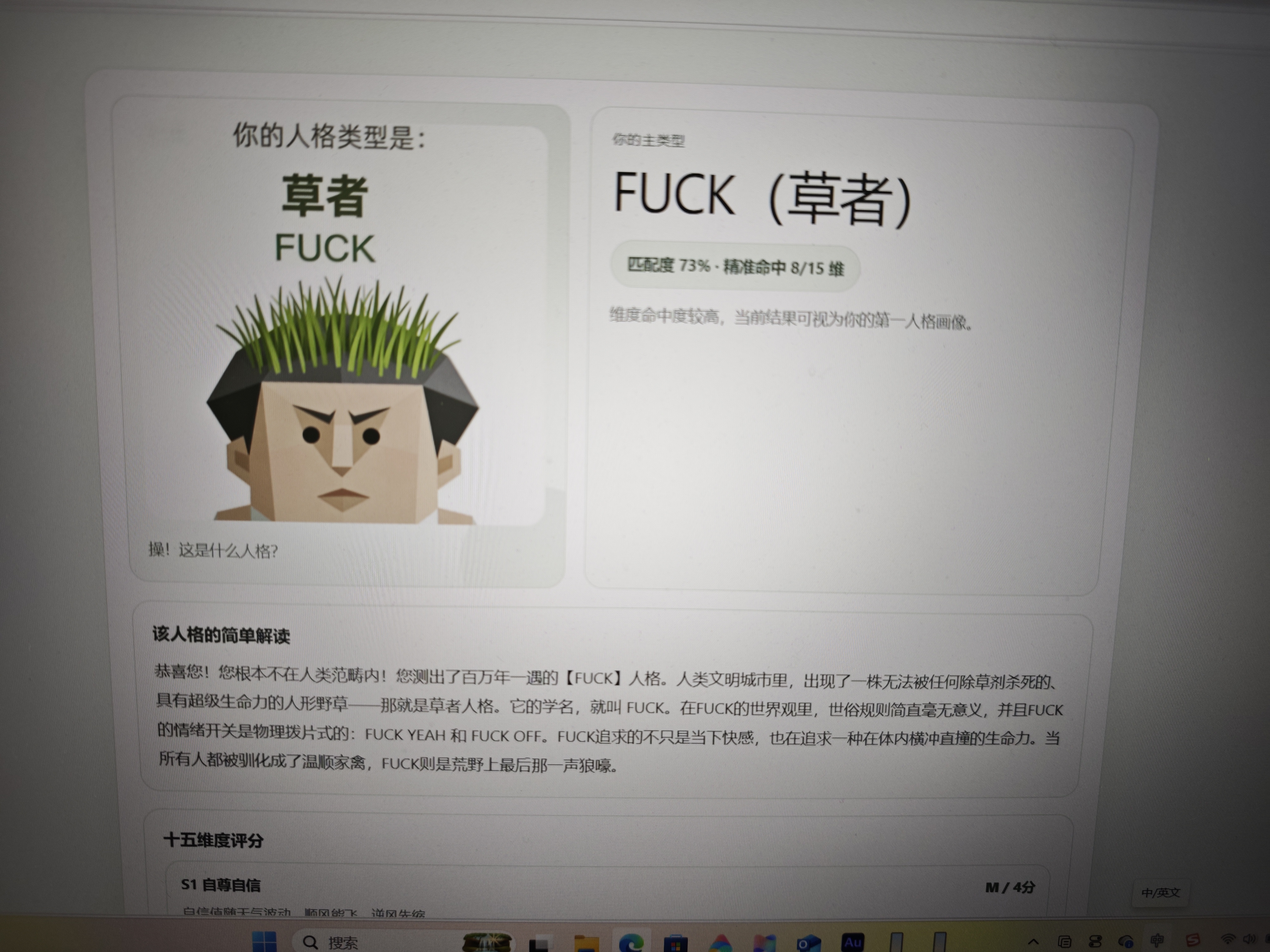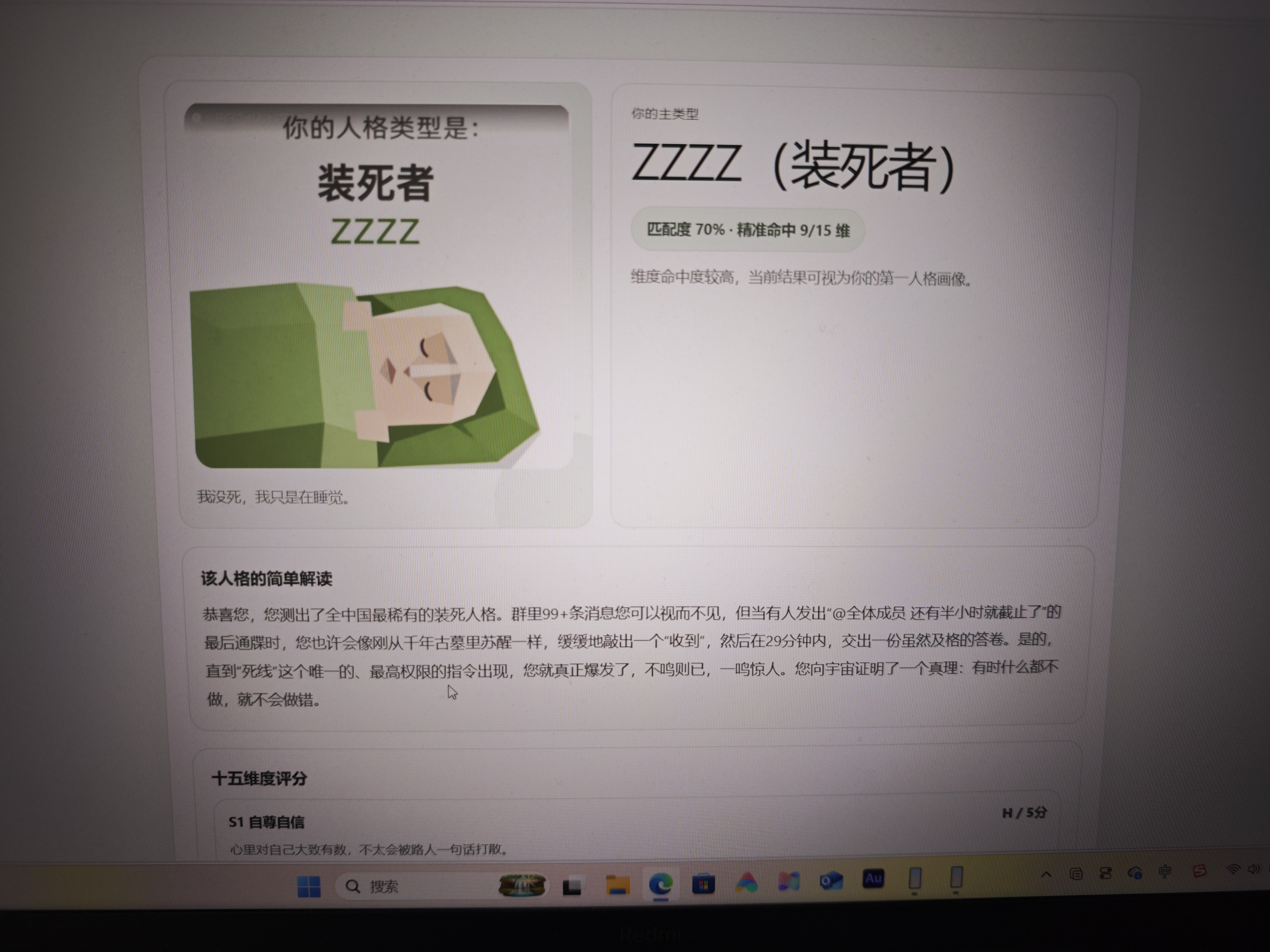在我还不知道SBTI是什么的时候,朋友圈就已经被各种测试结果刷屏了。直到点开截图,才恍然大悟——原来朋友们发的那些“吗喽”“死者”是这么来的! 这下可好,我也忍不住跟风测了一把。 测试一共31道题,每题3个选项,最终能测出27种人格。我反复测了5遍,结果跳出来3次“多情者”、1次“草者”、1次“装死者”。说实在的,我也看不出这三者之间有什么联系,但每个结果的解释,又似乎都能在自己身上找到一点影子。 正如很多网友所说,SBTI(Silly Big Test)本质上就是一个娱乐玩梗测试,和严肃的心理学没多大关系。它用“吗喽”“死者”“ATM-er”这类自嘲式标签,精准戳中了当代年轻人那种“躺又躺不平、卷又卷不动”的精神状态。 测试作者(B站UP主)自己也说了,这是“乱编”的初版,初衷甚至只是为了劝朋友戒酒,算法随机,多测几次结果可能完全不同。 那为什么这样一个“不科学”的测试能一夜爆火? 说到底,它靠的不是“准确”,而是“共鸣”。那些“有时焦虑有时摆烂”“表面麻木内心敏感”的描述,放在绝大多数普通人身上似乎都成立——这正是心理学上所说的“巴纳姆效应”:我们很容易相信一些模糊而普遍的描述说的就是自己。 比起MBTI那种“建筑师”“调停者”等略显精英的标签,SBTI大方甩出“吗喽”“装死”“ATM战神”这种接地气甚至带点“废物感”的称号,反而让年轻人能坦然喊出“对,我就这样”,用幽默消解“必须优秀”的隐形压力。它就像一场集体的、善意的自嘲,让年轻人在朋友圈里光明正大“发疯”,在笑声中找到同类。 当然,专家也提醒,这类测试纯属娱乐,千万别用它来定义自己。我个人的观点是:它就像一杯夏日气泡水,喝下去爽一下、乐一会儿,它的使命就完成了。如果顺便让你觉得“原来我不是一个人”,那就算是锦上添花的共鸣彩蛋了。