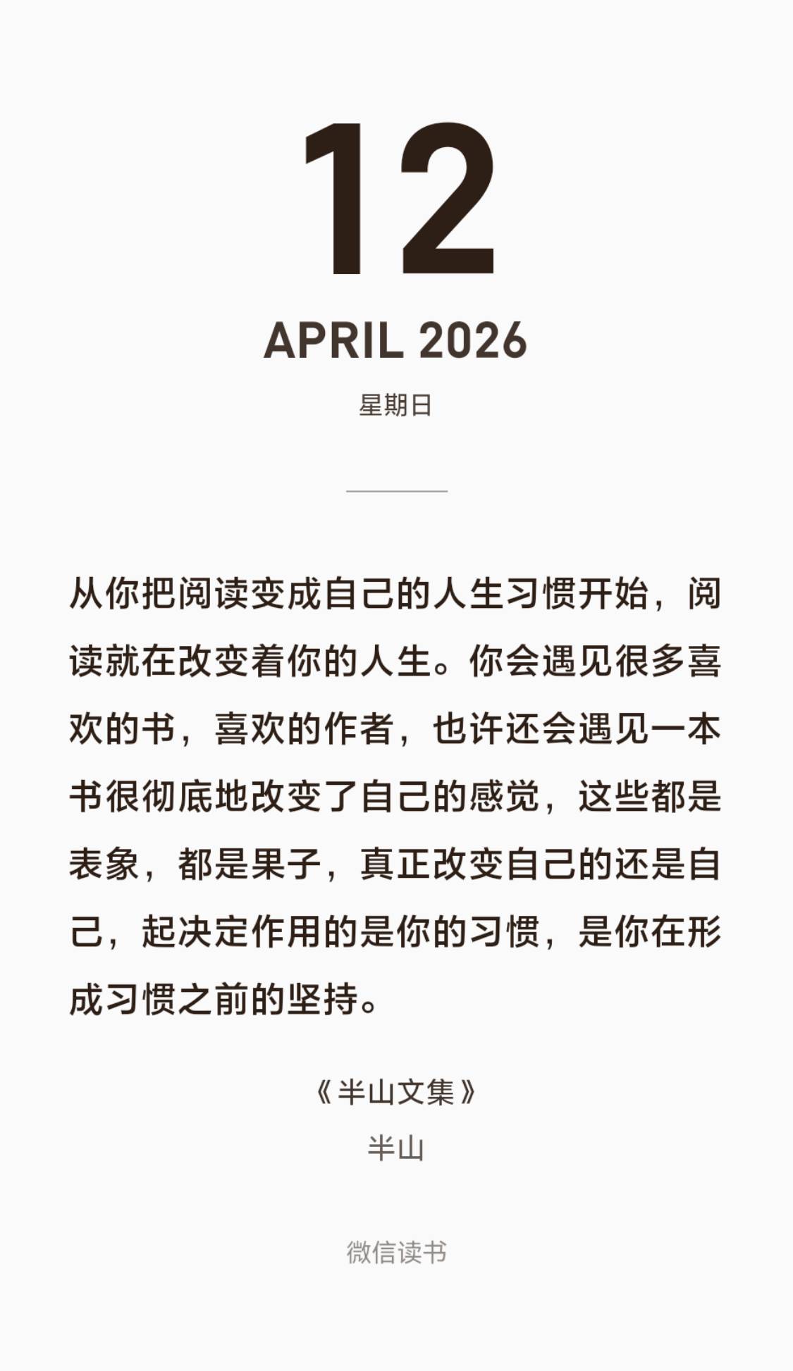 从你把阅读变成自己的人生习惯开始,阅读就在改变着你的人生。 你会遇见很多喜欢的书,喜欢的作者,也许还会遇见一本书很彻底地改变了自己的感觉,这些都是表象,都是果子,真正改变自己的还是自己,起决定作用的是你的习惯,是你在形成习惯之前的坚持。