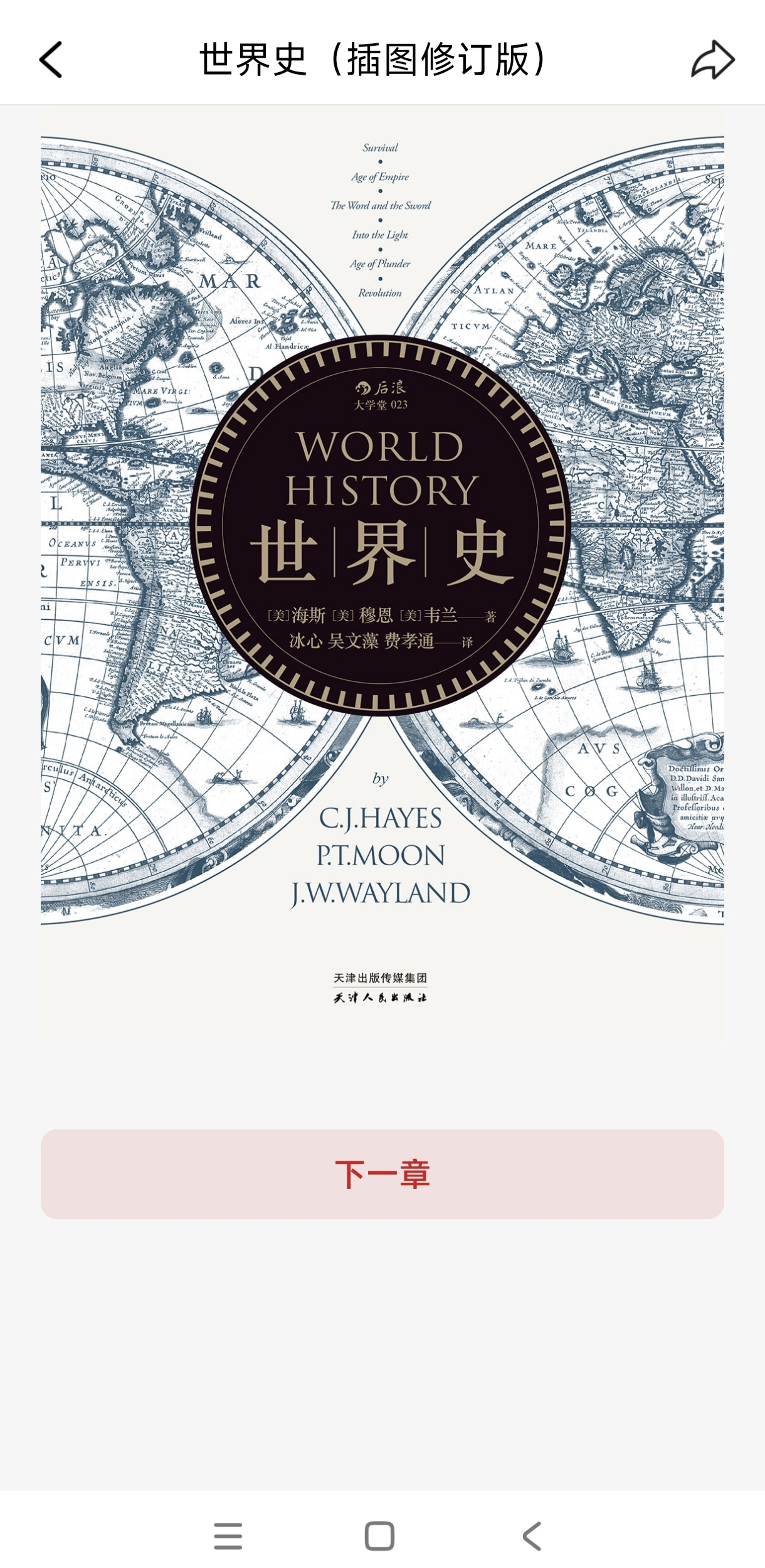《世界史(插图修订版)》由美国史学家海斯、穆恩、韦兰合著,冰心、吴文藻、费孝通等名家翻译,是一部从文明演进角度梳理人类历史的经典通史。书中不仅史料详实、结构清晰,更不乏富有哲思与文采的句子,以下是一些值得品读的佳句,人类还仅仅处于他的青春期,他的困难不是由于年老和衰颓,而是由于其力量日益增长却未经历练。 当我们审视生命不断前行的奋斗历程,我们就会发现在当代我们有多少希望,有多大危险。 人类现在已成就的一切事业,不过是未来辉煌的序章。在雕塑与绘画作品中,在伟大的音乐声中,在雄伟的建筑和漂亮的花园中,我们不难领略到,在现有的物质条件下,人类到底能做什么。 罗马的道路通向帝国,但是罗马的农人—士兵似乎最初并没有任何成为帝国创业者的意向。