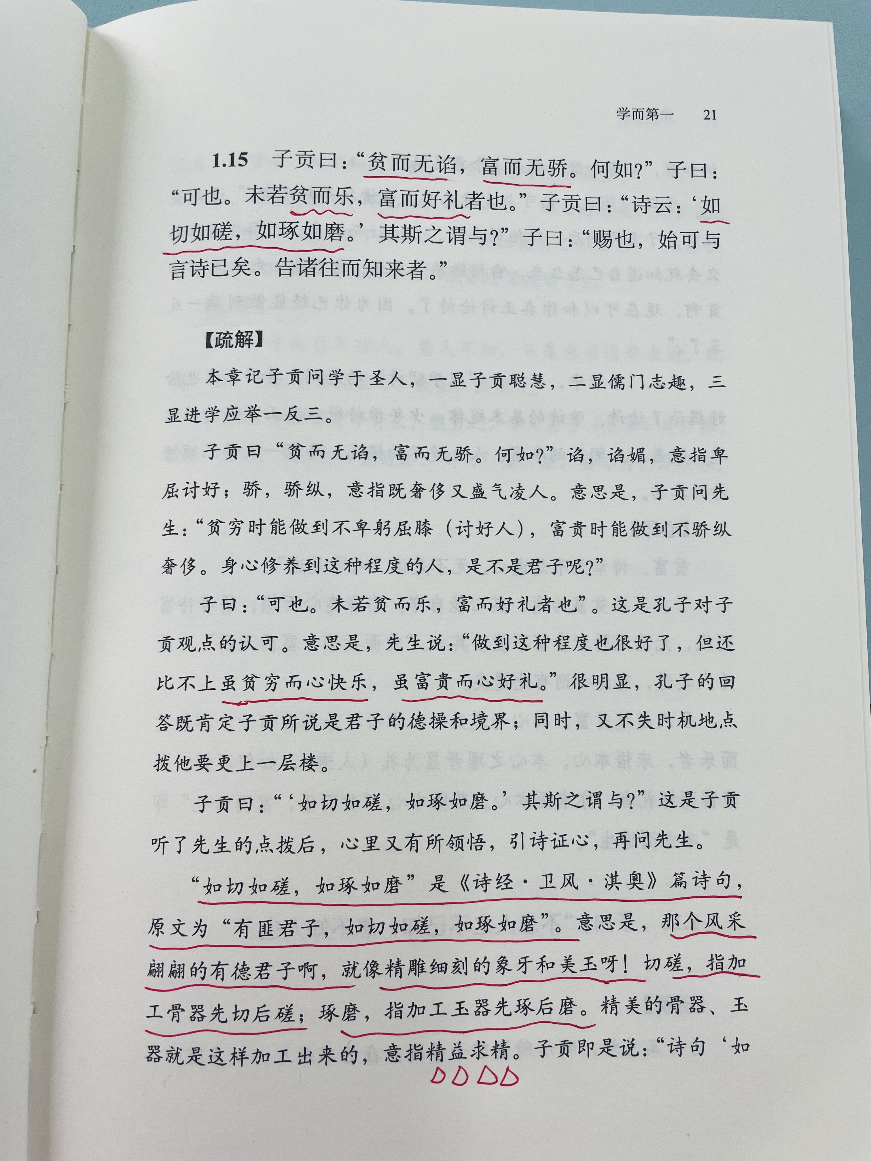 论语学习📖 子贡曰:贫而无谄,富而无骄。何如? 子曰:可也。未若贫而乐,富而好礼者也。 子贡曰:诗云:如切如磋,如琢如磨。其斯之谓与? 子曰:赐也,始可与言诗已矣。告诸往而知来者。