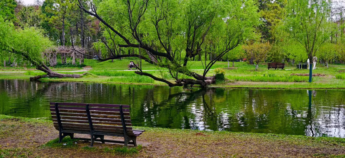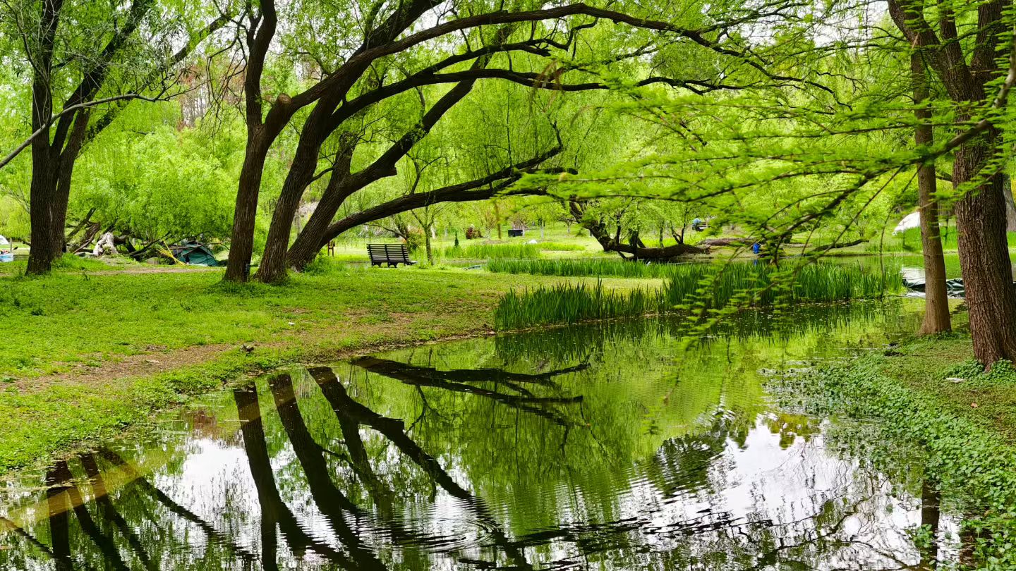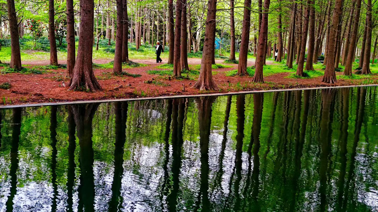 树影斜入水,静湖如画框👍游共青森林公园