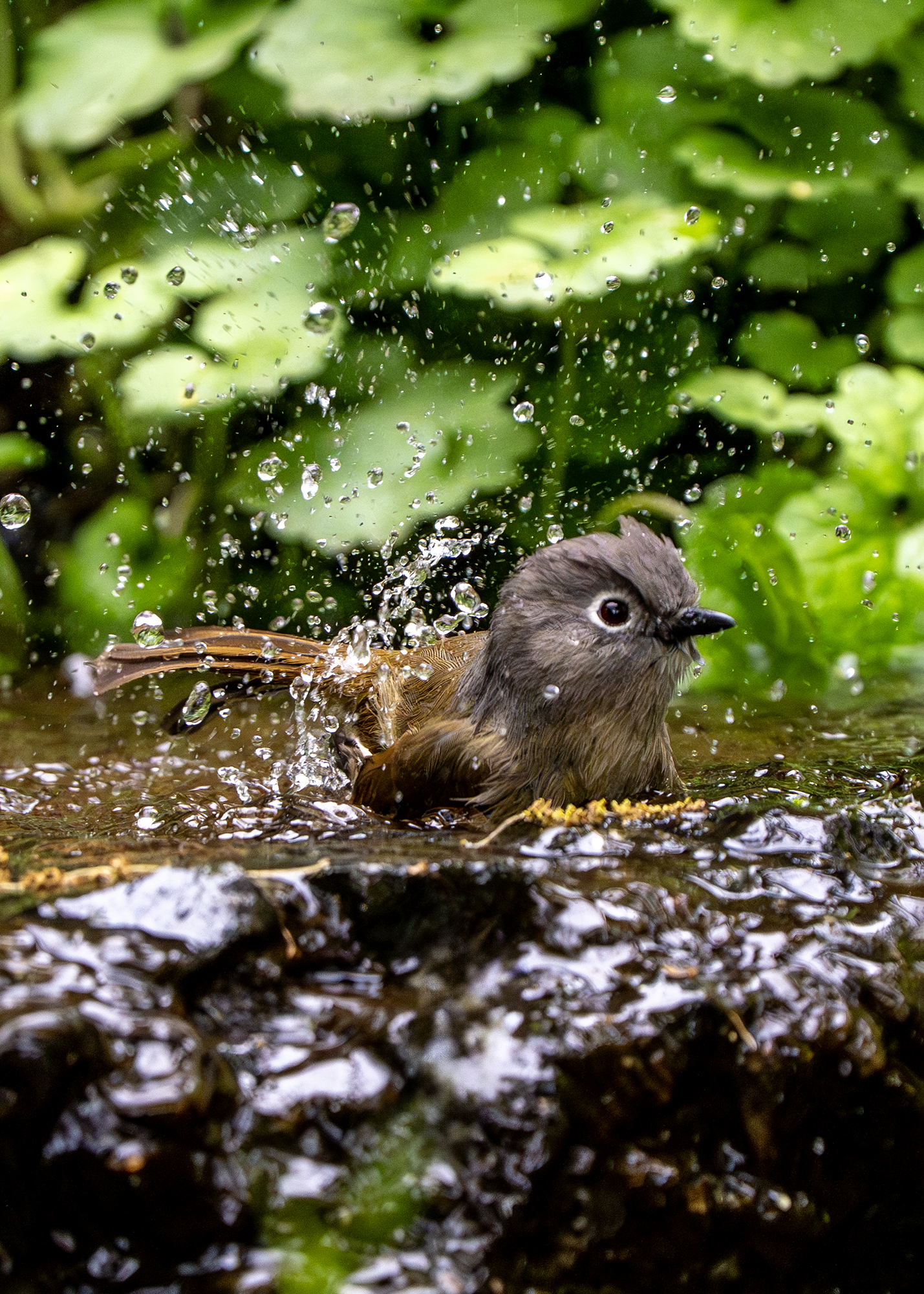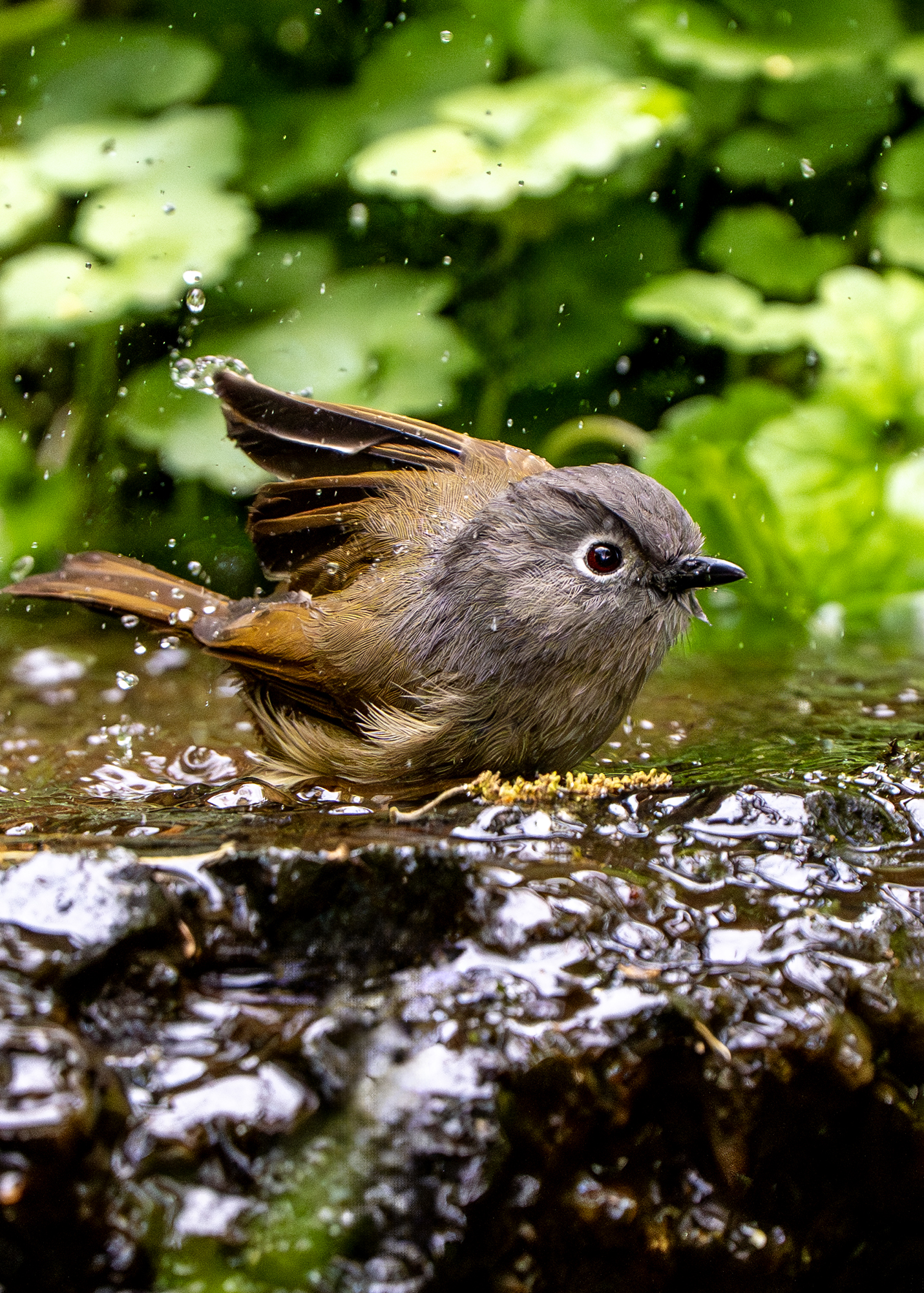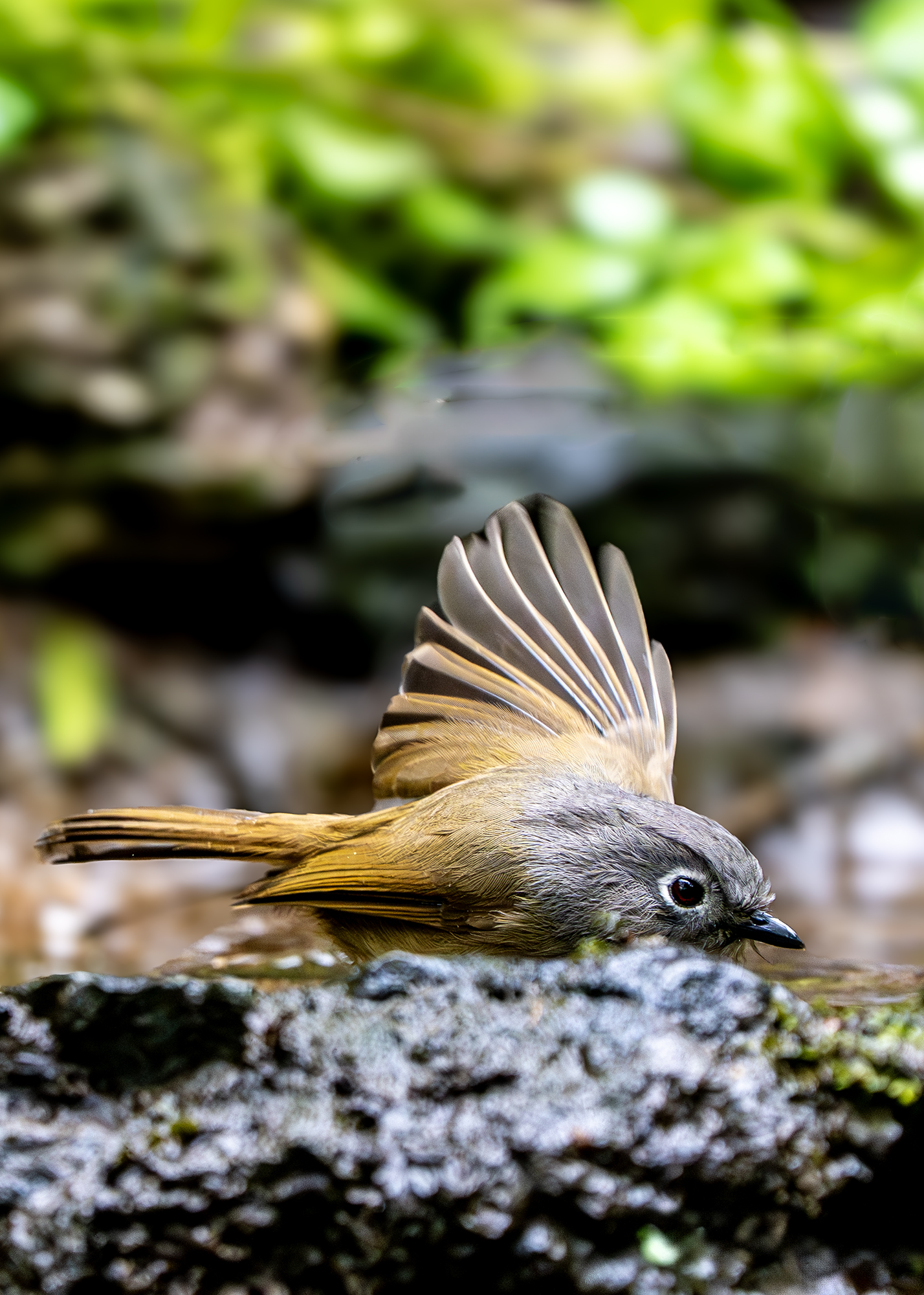 在洗澡的灰眶雀鹛(拍于杭州植物园)