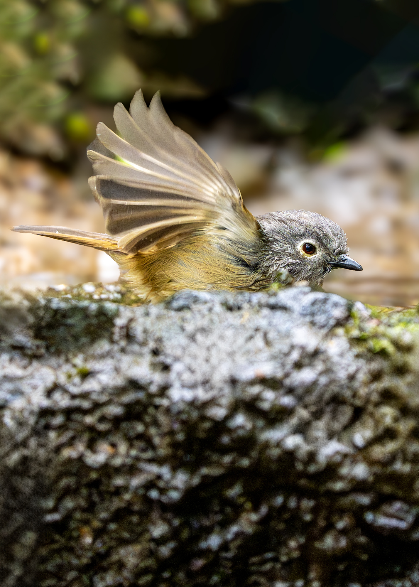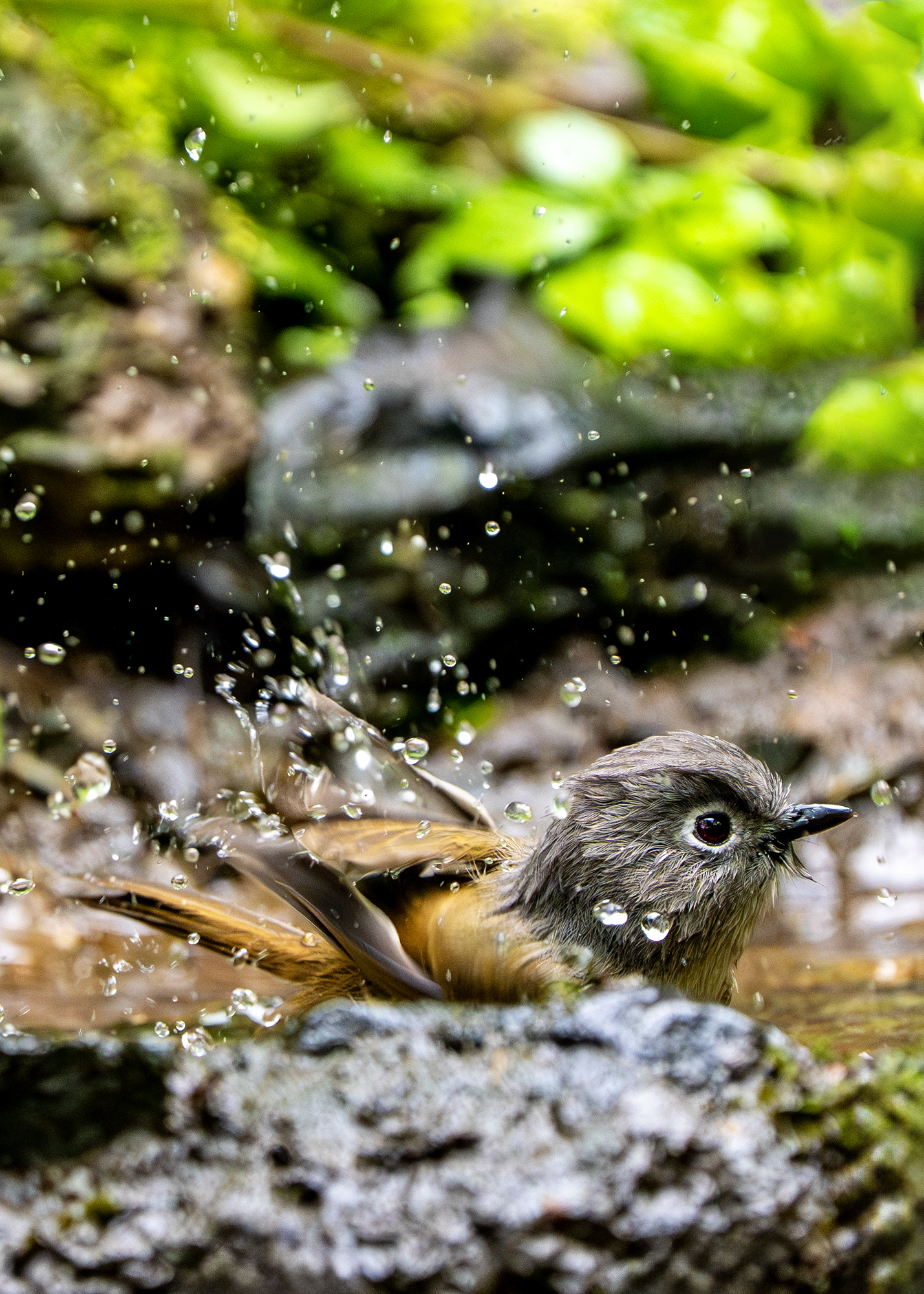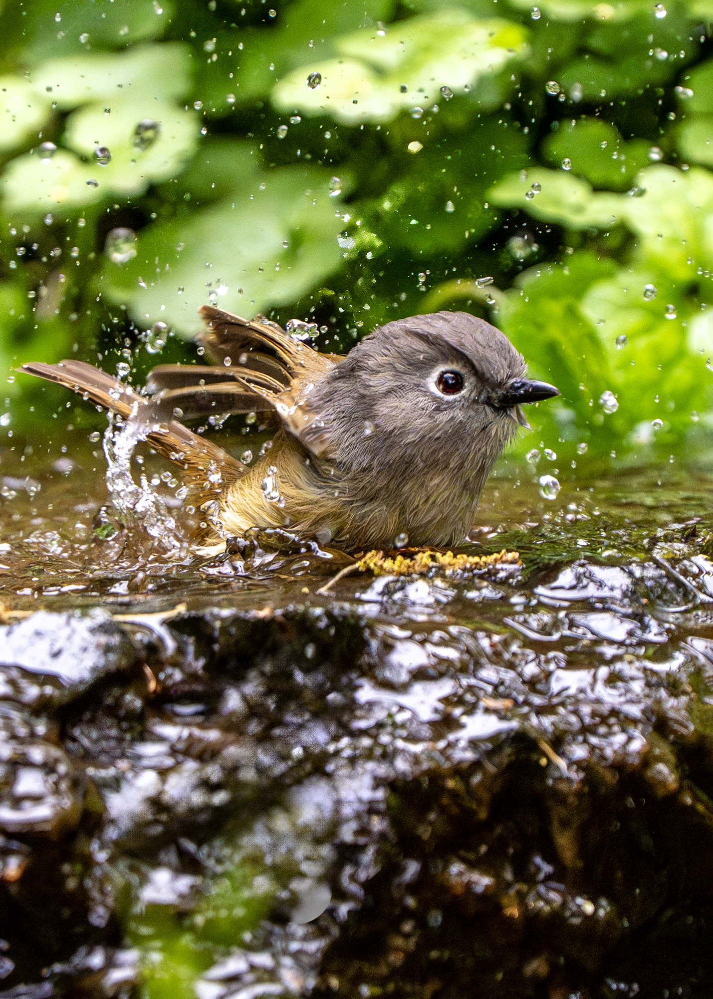 在洗澡的灰眶雀鹛(拍于杭州植物园)
