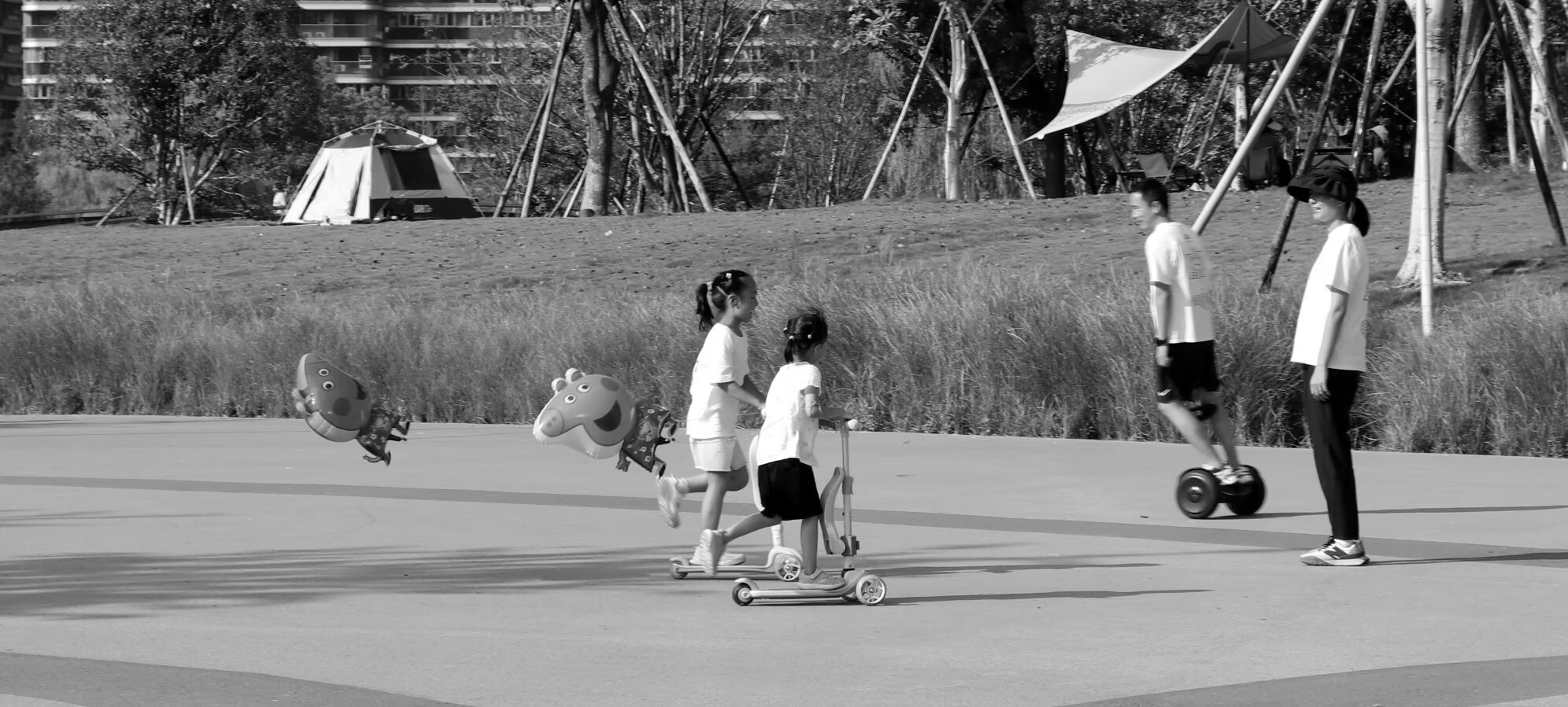 晒晒我的宝藏技能:用黑白镜头,定格人间烟火里的鲜活瞬间(摄影篇3) 每个人都是一座独一无二的宝藏,藏着专属于自己的“超能力”。于我而言,这份闪光的印记,就是黑白街拍——用镜头捕捉街头巷尾的众生相,把平凡日子里的喜怒哀乐、鲜活烟火,都定格成永恒的光影。 这一组照片,是我行走在杭州街巷里,用黑白镜头记录下的人间百态。没有刻意的摆拍,没有精致的布景,只有最真实、最动人的生活瞬间。 你看操场上奔跑的孩子,笑容在黑白光影里愈发灿烂,那是童年最纯粹的快乐,是风里都裹着的朝气;公园里滑滑板、骑滑板车的小小身影,带着对世界的好奇与勇敢,在阳光下肆意生长;帐篷里相拥的母子,把亲子间的温柔与陪伴,藏进了这一方小小的天地,满是治愈的力量。 我也爱拍那些藏在市井里的烟火:修车铺里专注作业的师傅,用双手撑起生活的模样,是平凡人最动人的奋斗;门口歇脚刷手机的大叔,是夏日里最松弛的日常,藏着生活的烟火气;树荫下对弈的老者,在棋盘上运筹帷幄,是岁月沉淀下来的闲适与从容;还有挥锤劳作的老人,每一下都透着生活的韧劲,是时光里最朴素的力量。 黑白摄影于我,从来都不只是拍照,而是与世界对话、读懂生活的方式。褪去色彩的滤镜,让我更专注于人物的神态、情绪与瞬间,把那些被忽略的日常、被遗忘的感动,一一打捞起来。它让我看见,每一个认真生活的人,都在发光;每一段平凡的日子,都藏着诗意。 这份藏在镜头里的热爱,是我最珍贵的宝藏。它陪我走过街巷,读懂人间,让我永远对生活保持好奇与温柔。往后,我依然会带着这台相机,用黑白光影,继续定格街头的每一份鲜活,把人间烟火里的小美好,分享给更多人。