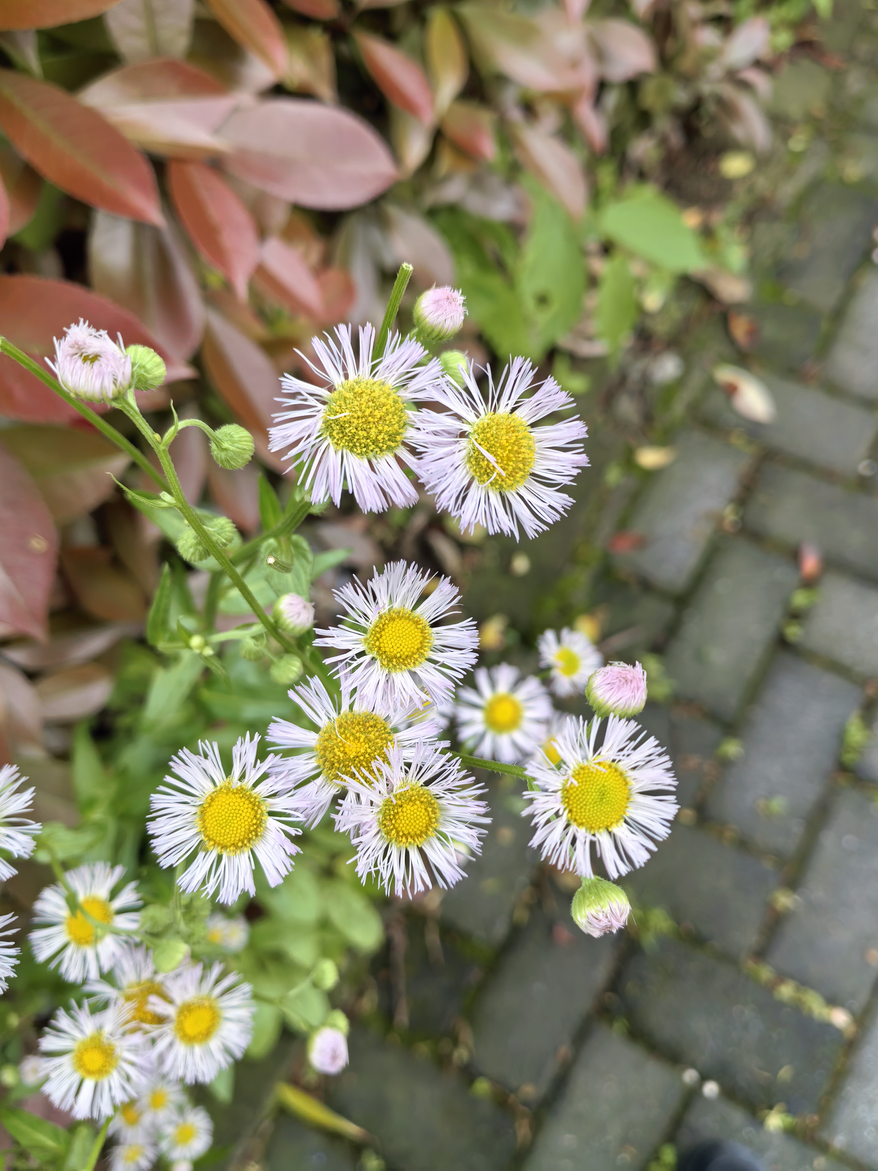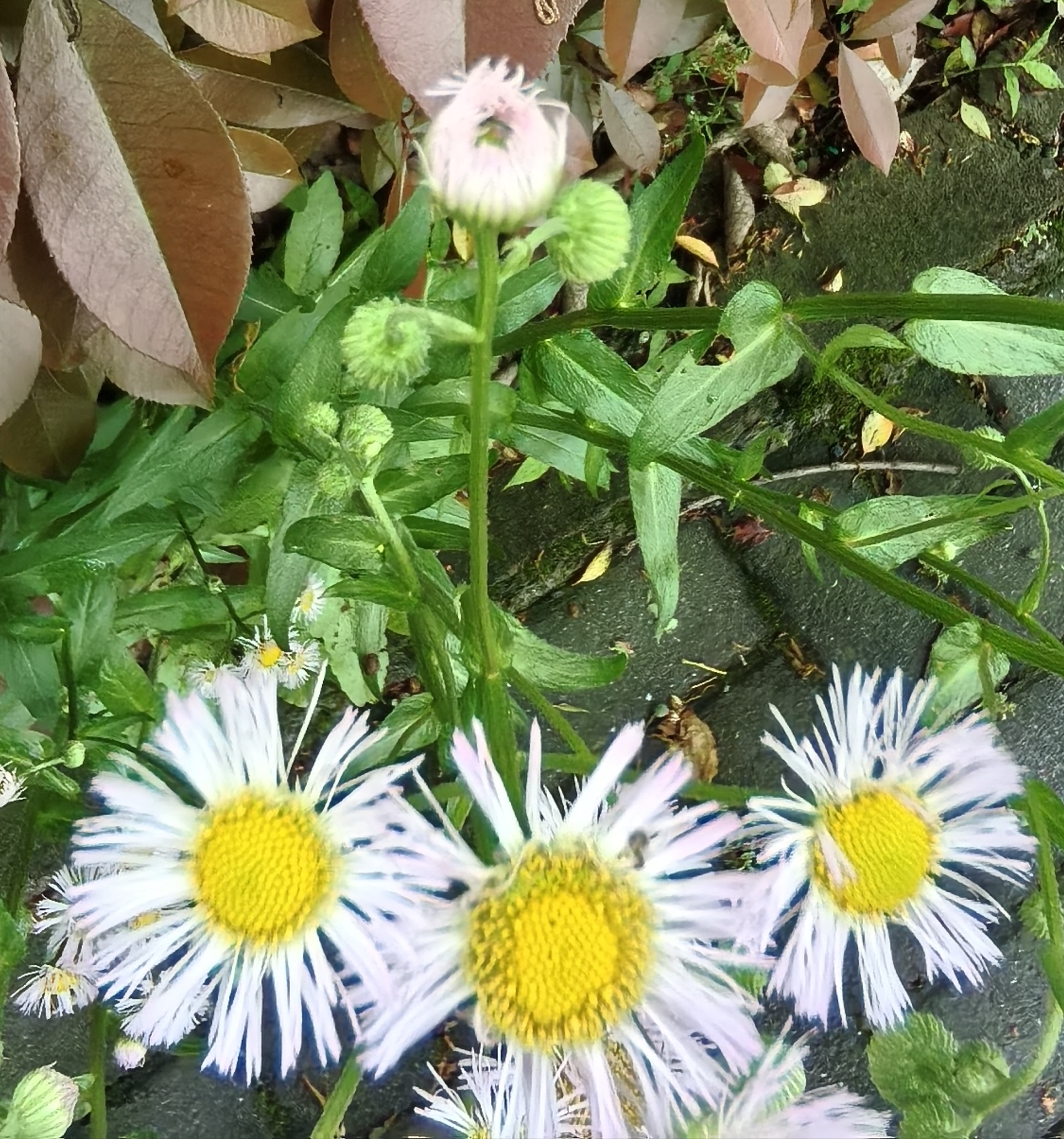 这是春飞蓬,也叫春一年蓬或费城飞蓬。它看着像小雏菊,其实是原产北美的菊科飞蓬属植物,在国内常当野花,但也挺有入侵性的。 它很好认:花瓣细细长长的,像发丝一样,顶端还带点淡粉色,不像普通雏菊那么宽;中间黄色花盘密密麻麻,像个小绒球;叶子是半抱着茎长的,像耳朵贴着茎;它最爱长在路边、墙角、石缝这种不起眼的地方,生命力超强,春天开得最热闹。 它清秀又倔强,风一吹花瓣轻轻晃,像把春天的小温柔悄悄留在了脚边。