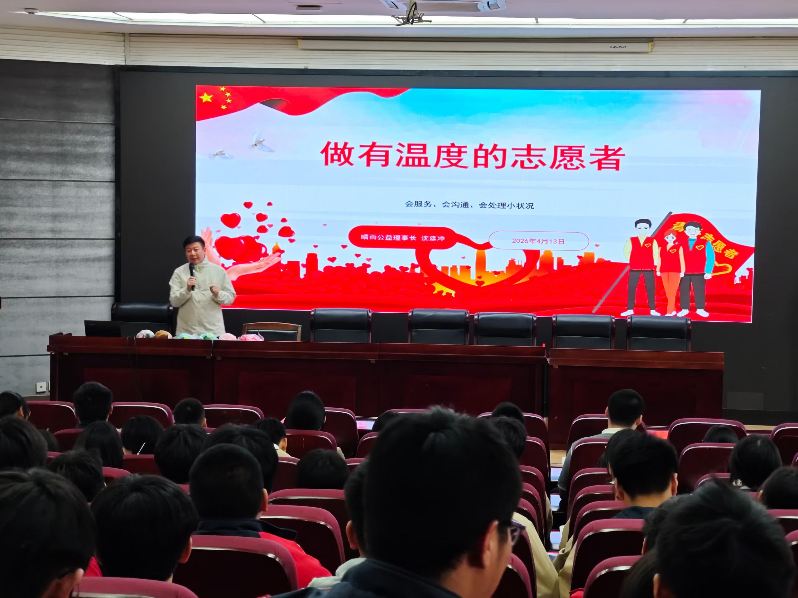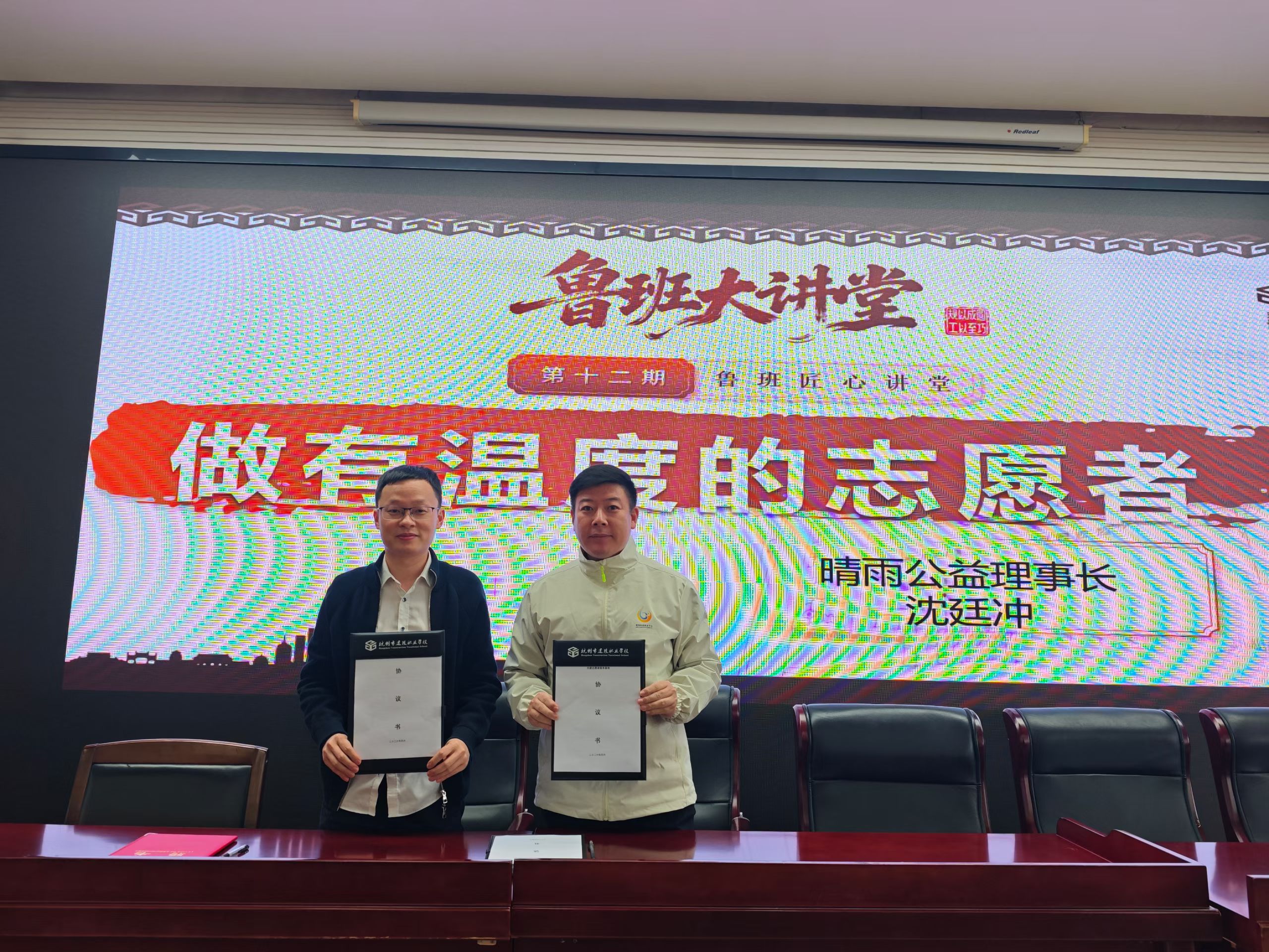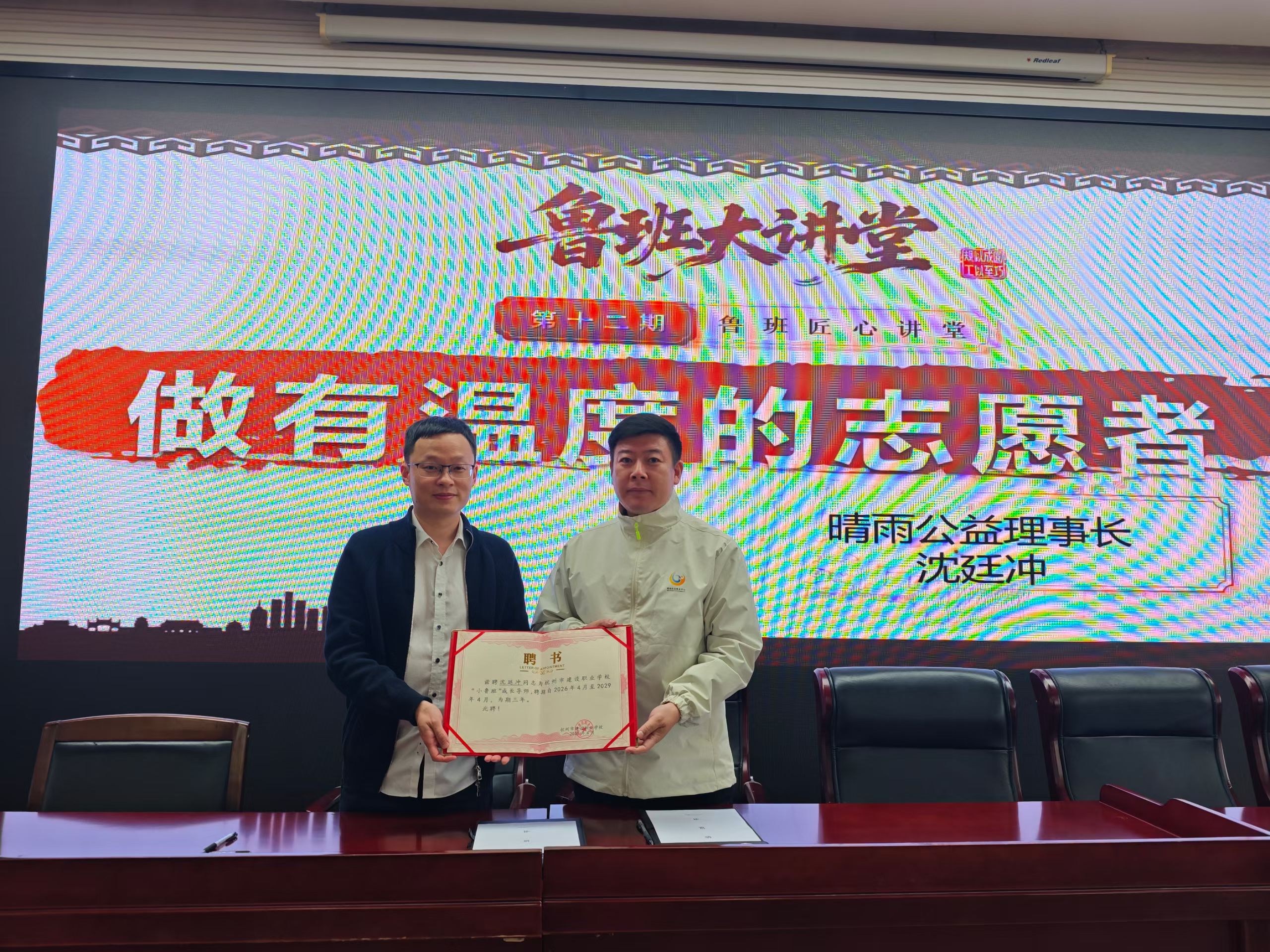 今天,晴雨公益与杭州市建设职业学校正式达成合作。我受聘为学校“小鲁班”成长导师,并受邀为现场120名学生带来《做有温度的志愿者》主题课程,围绕“会服务、会沟通、会处理小状况”,通过情景模拟、现场互动,结合服务游客与市民的真实案例,带领大家学习应急处理与文明服务技巧。
