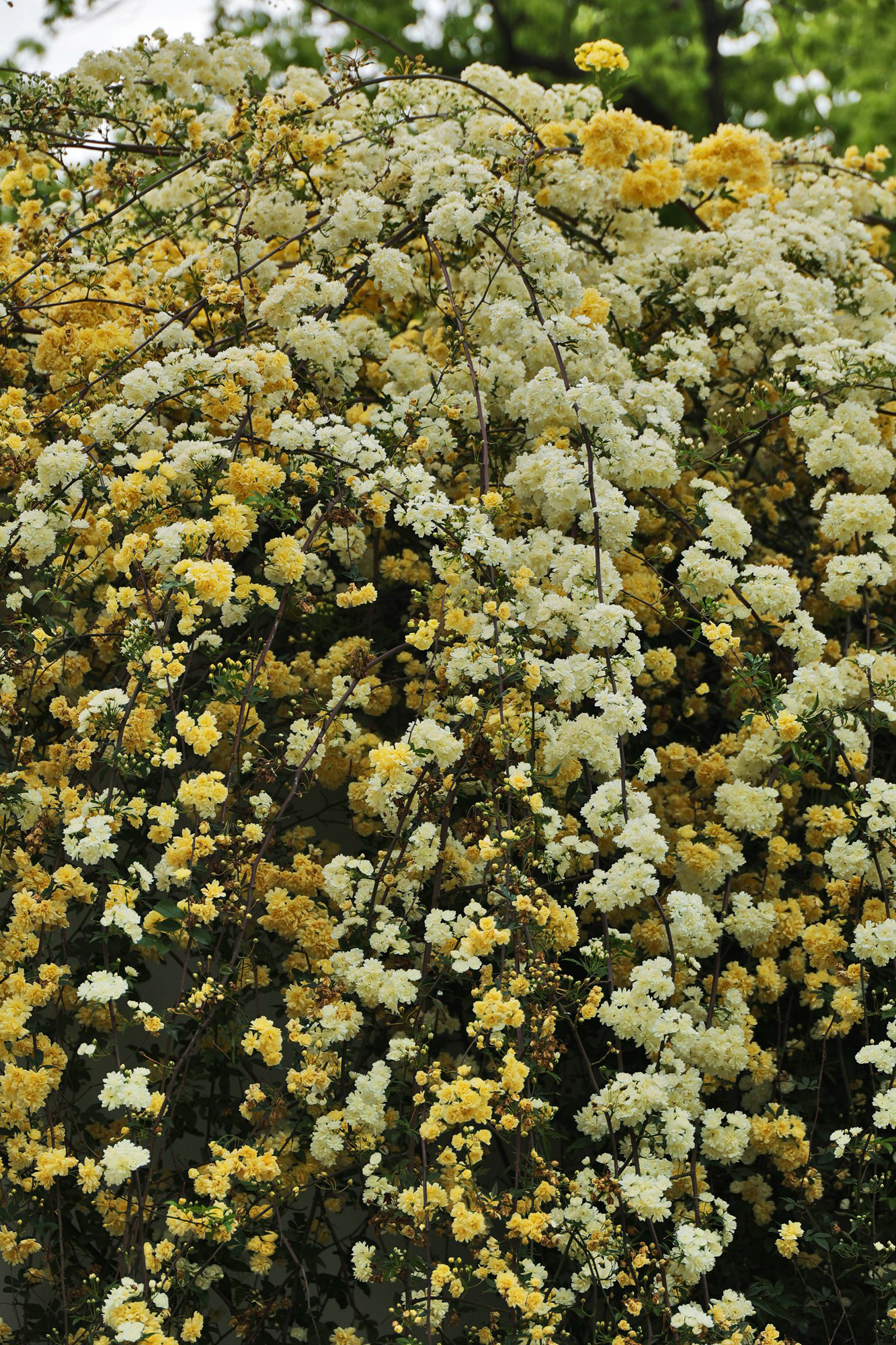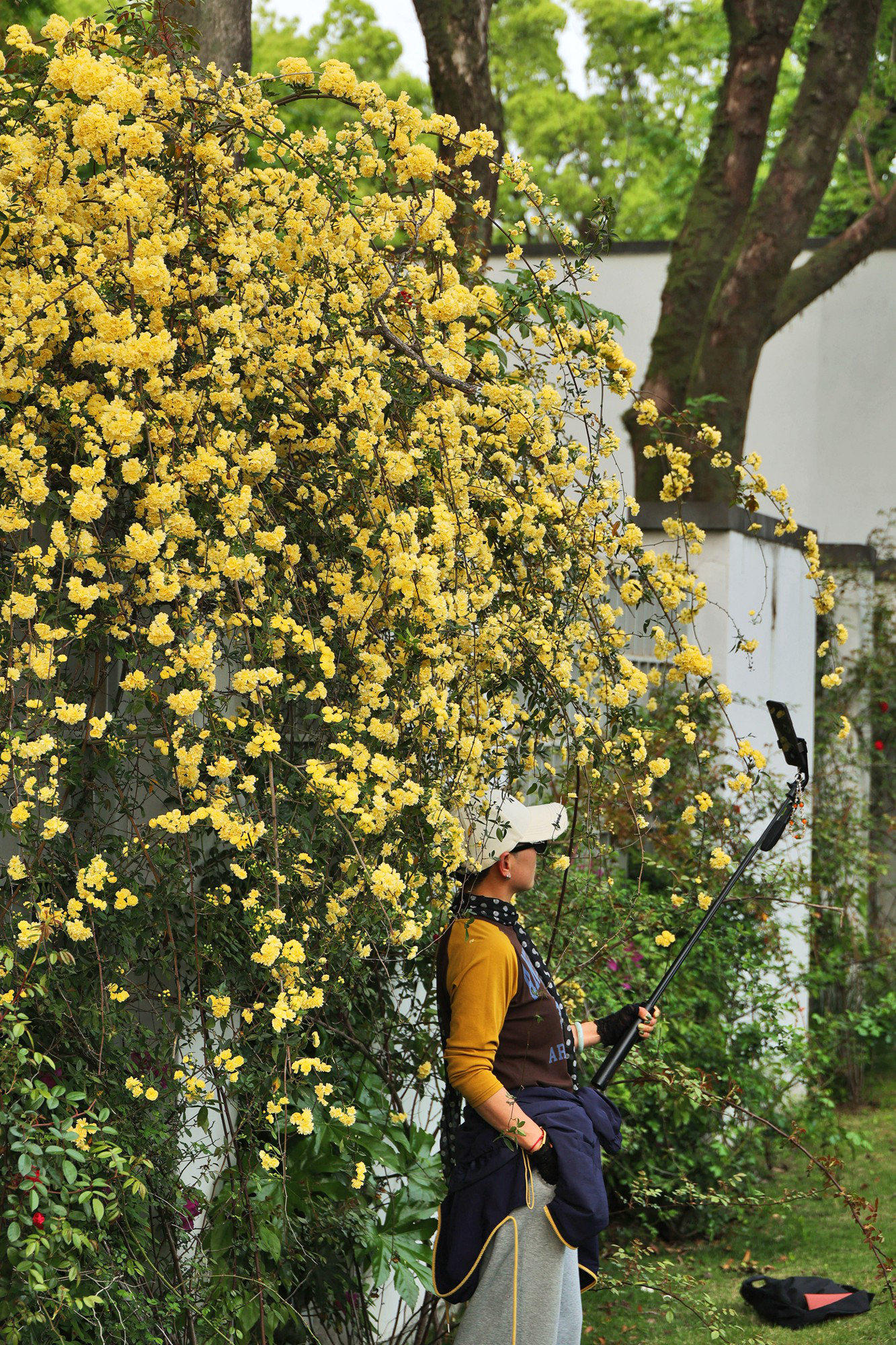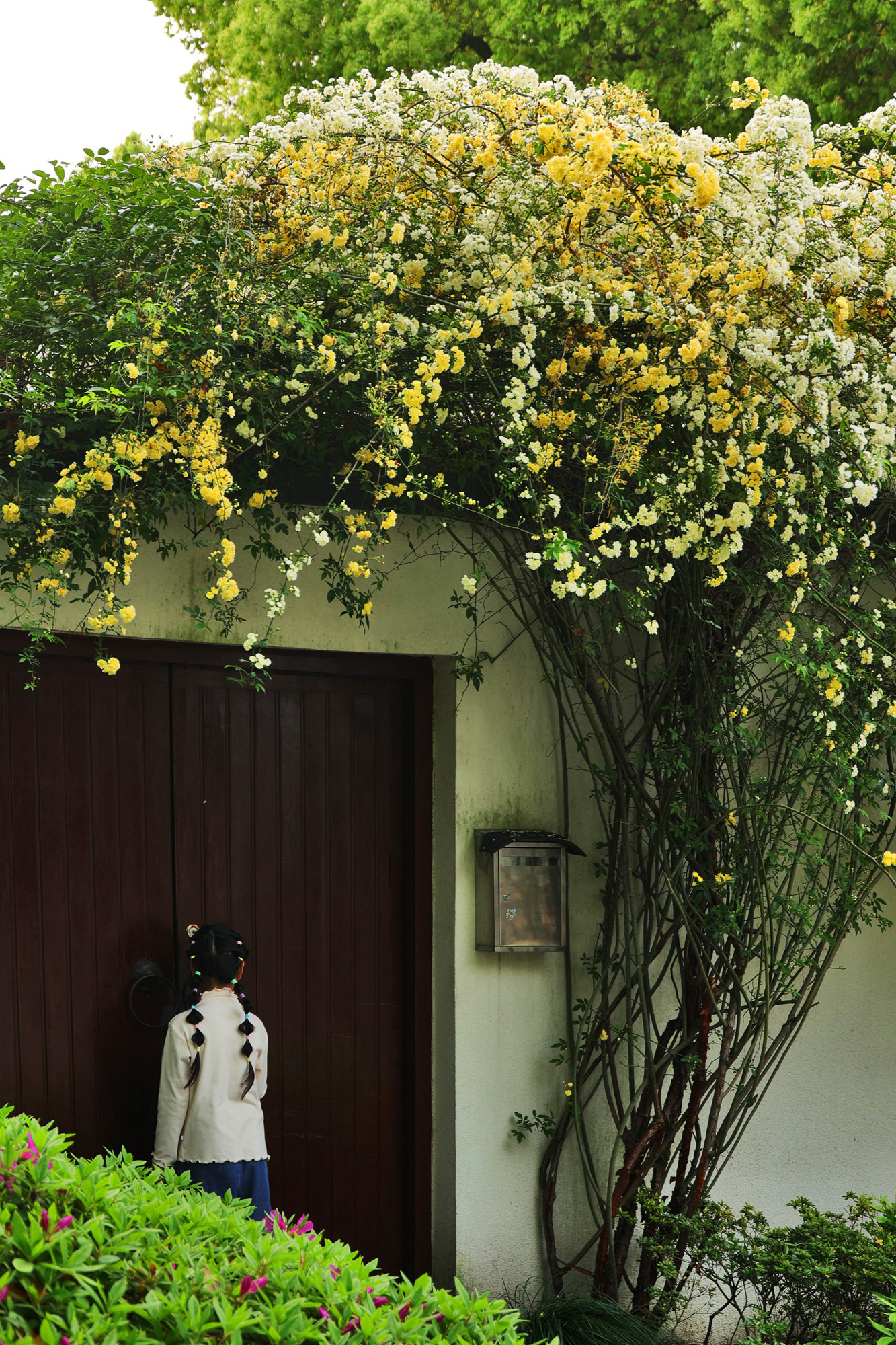 《木香花如瀑》早上,走过宁波江北绿岛公园,遇见园林博物馆外围墙上如瀑的木香花正热烈绽放,白如雪,黄似霞,繁花似锦。靠近花瀑,清香弥漫,令人心旷神怡。
