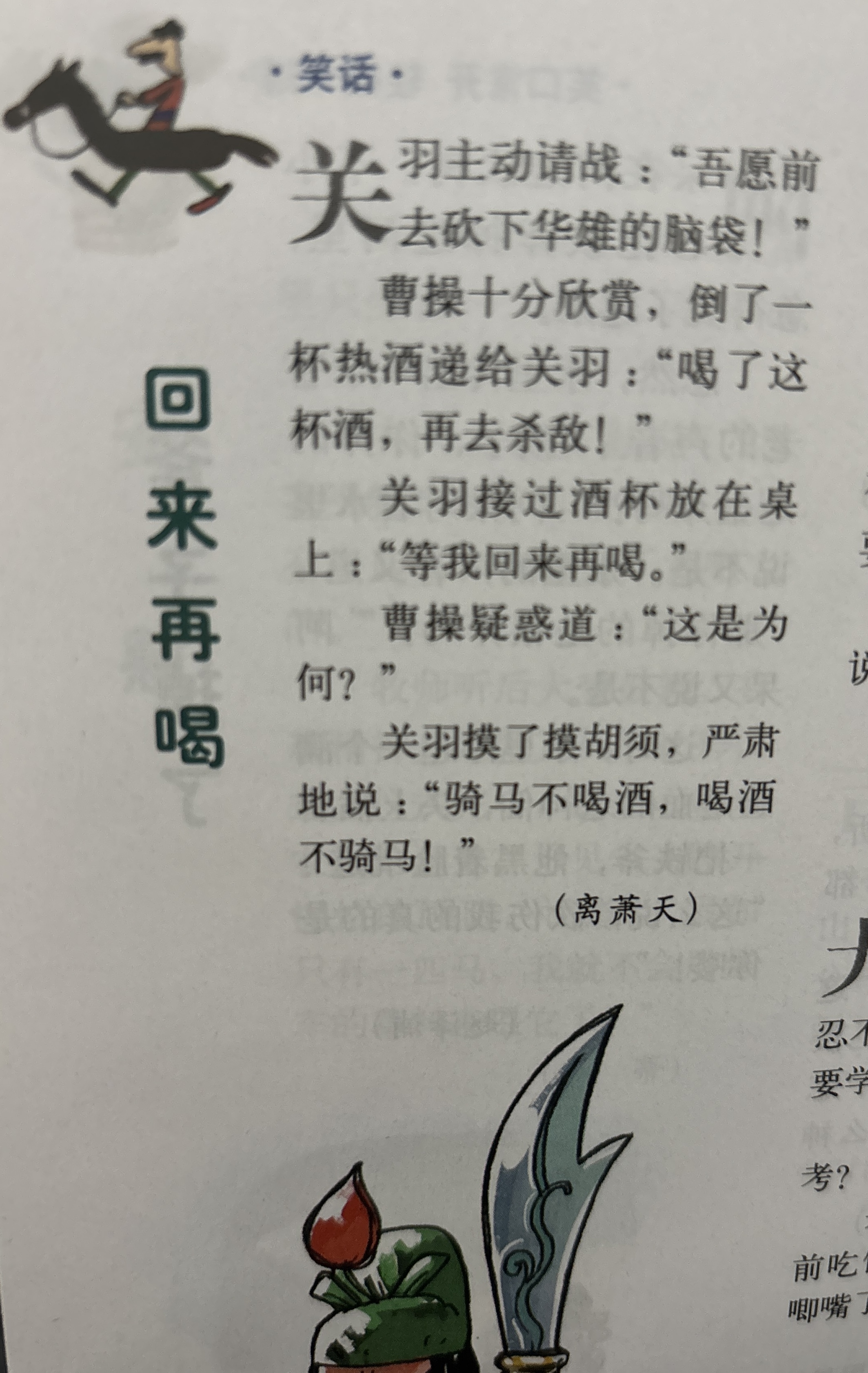 关羽斩华雄前不喝酒的理由终于找到了。不是因为他战斗力爆表,而是喝酒不骑马,骑马不喝酒。想想三国关羽这么严格遵守规则,真为今天还在酒驾的人捉急,该好好向关羽学习学习。
