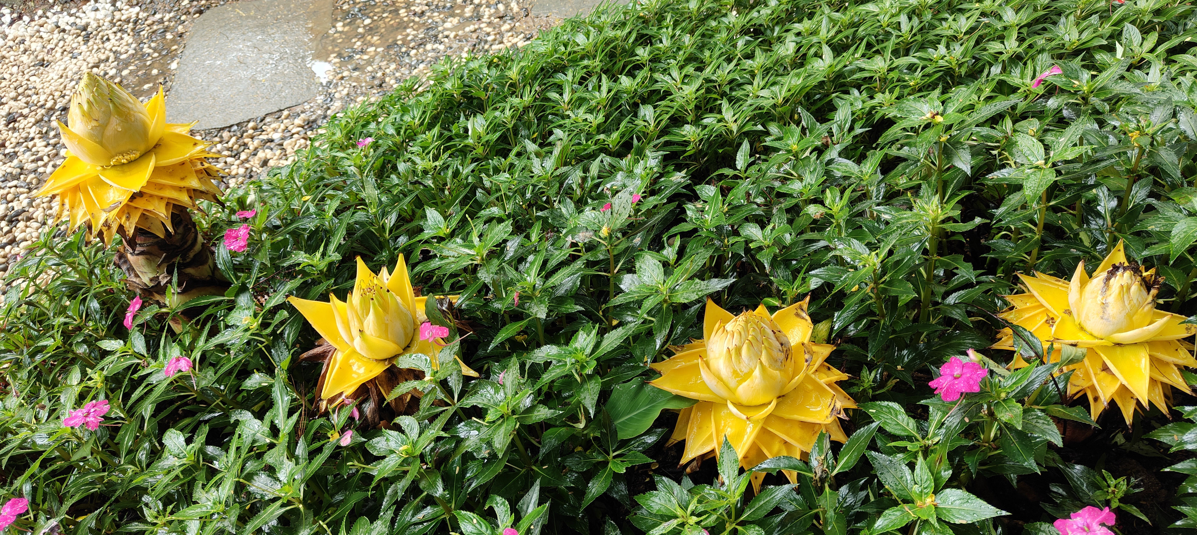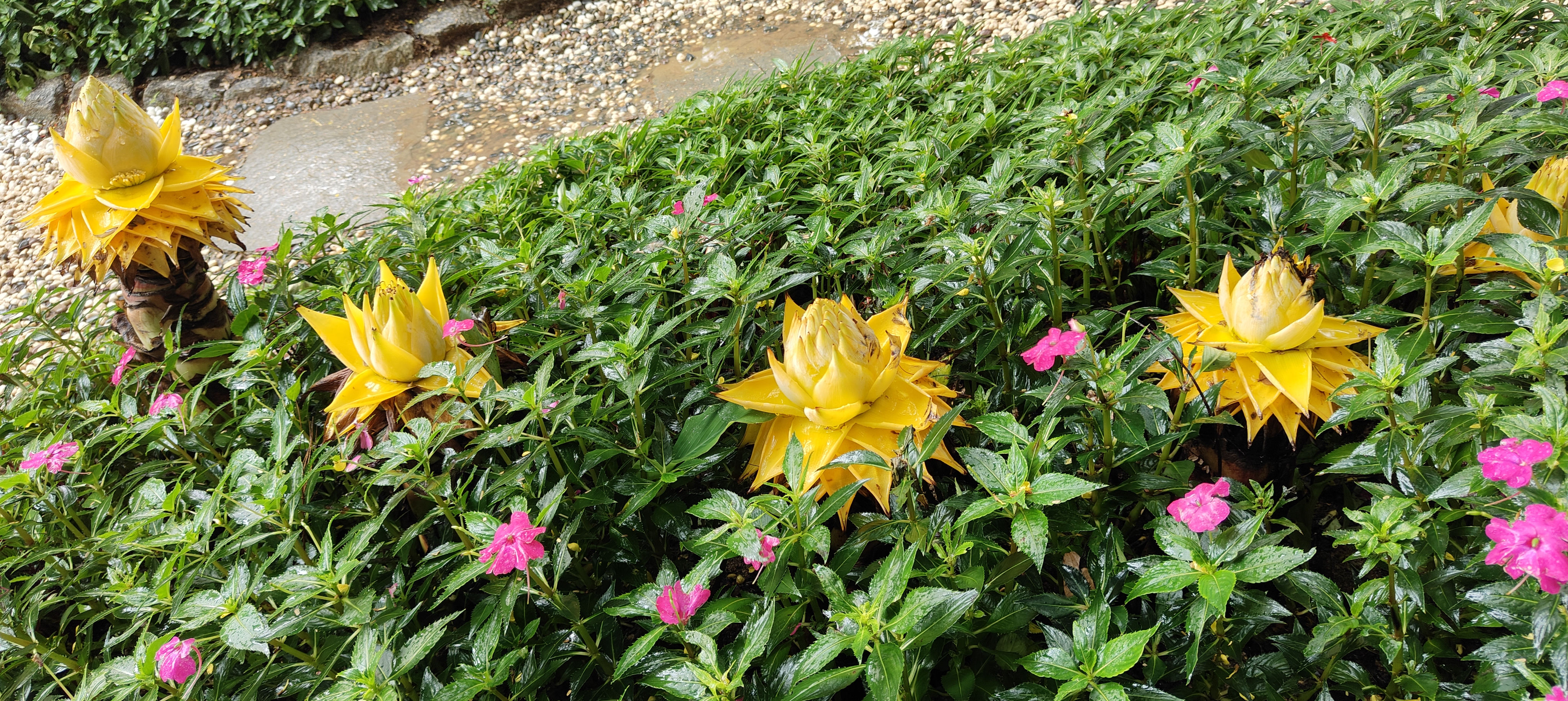 地涌金莲,芭蕉科地涌金莲属多年生丛生草本植物。为中国特色花卉,被佛教寺院定为“五树六花”之一。(曹玉想)