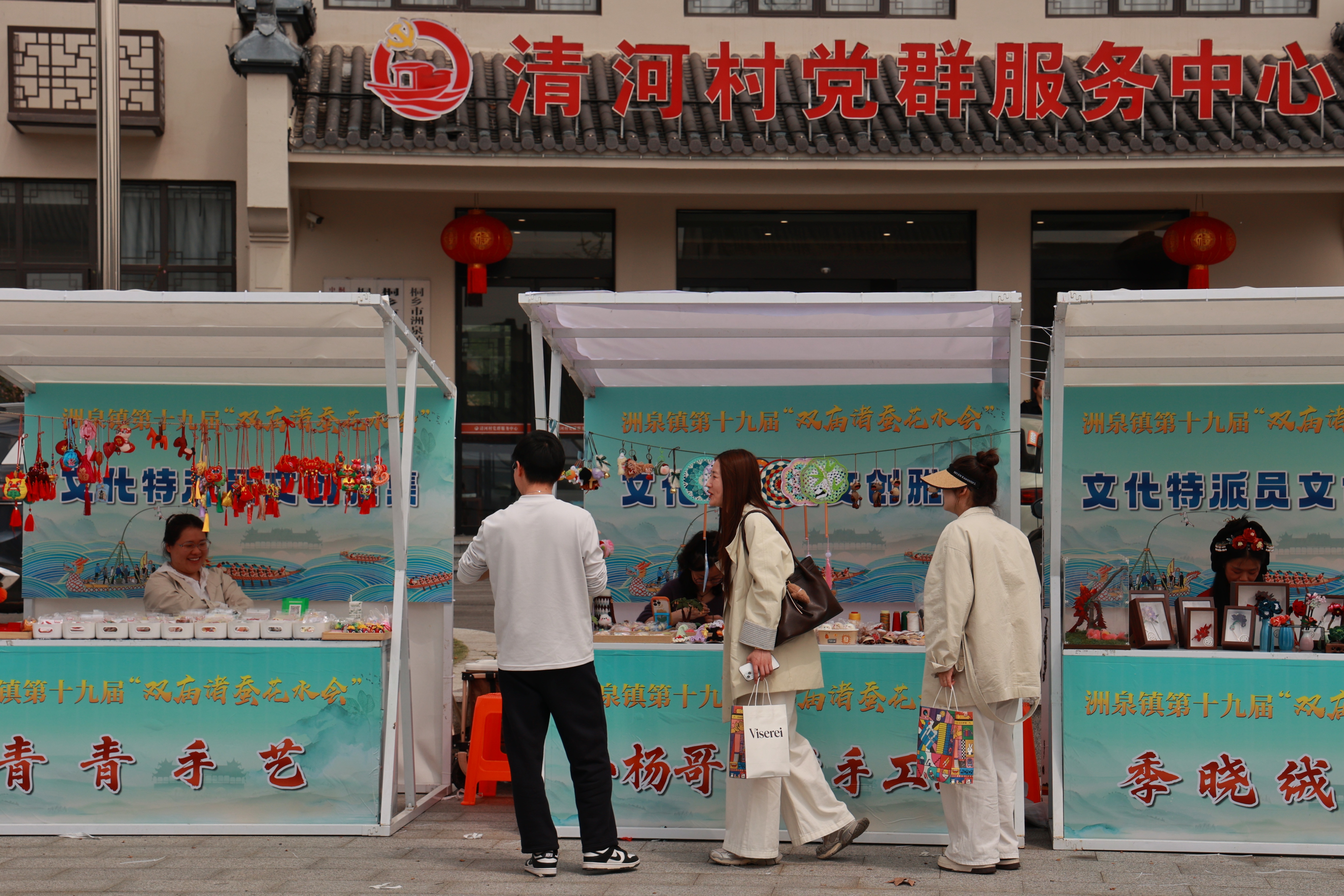 桐乡,洲泉清河村(26~25) 清河村位于洲泉镇东南,现为浙江省非物质文化遗产旅游景区之民俗文化村,村里的清明节气农耕文化活动﹣﹣蚕花水会入选浙江省二十四节气农耕活动。 桐乡是"中国蚕桑丝织技艺"的重要传承区和保护地,蚕桑习俗已深深融入桐乡老百姓的日常生活。蚕丝被是清河村最具特色的产品,来这里,要记得带一床温暖柔软的蚕丝被回去。
