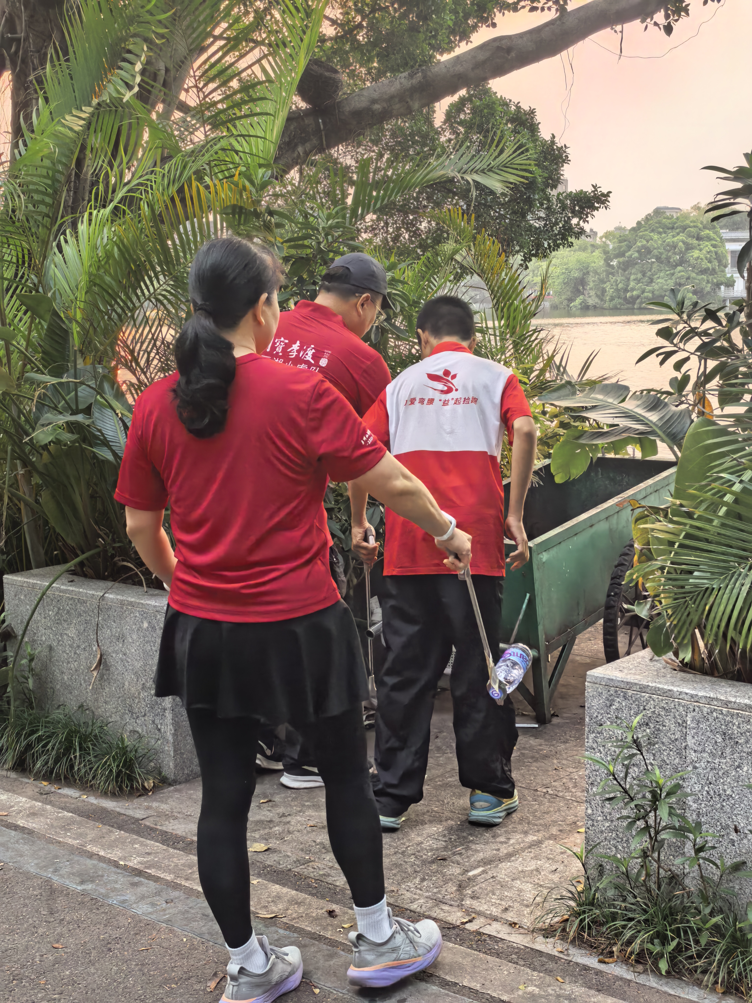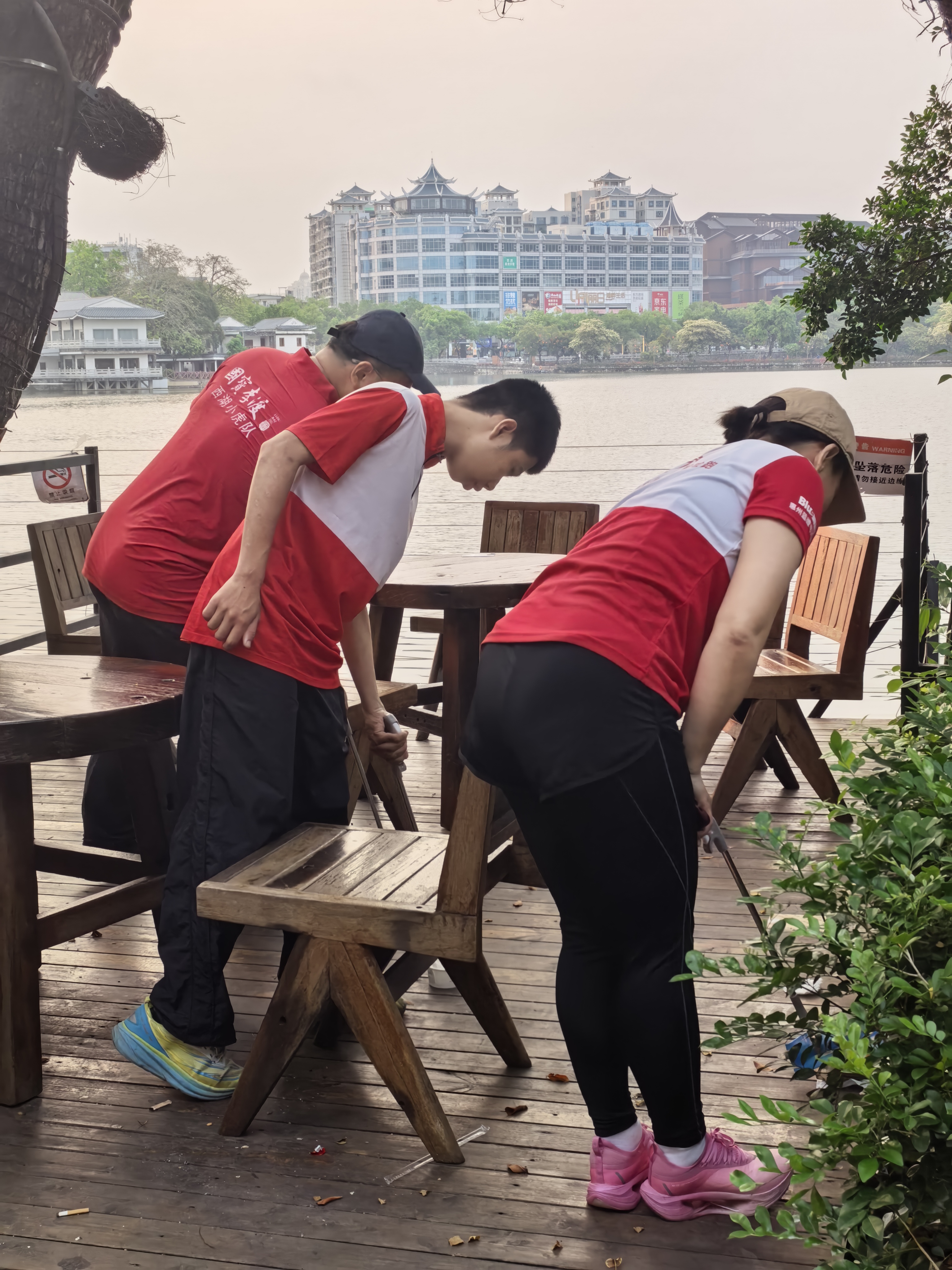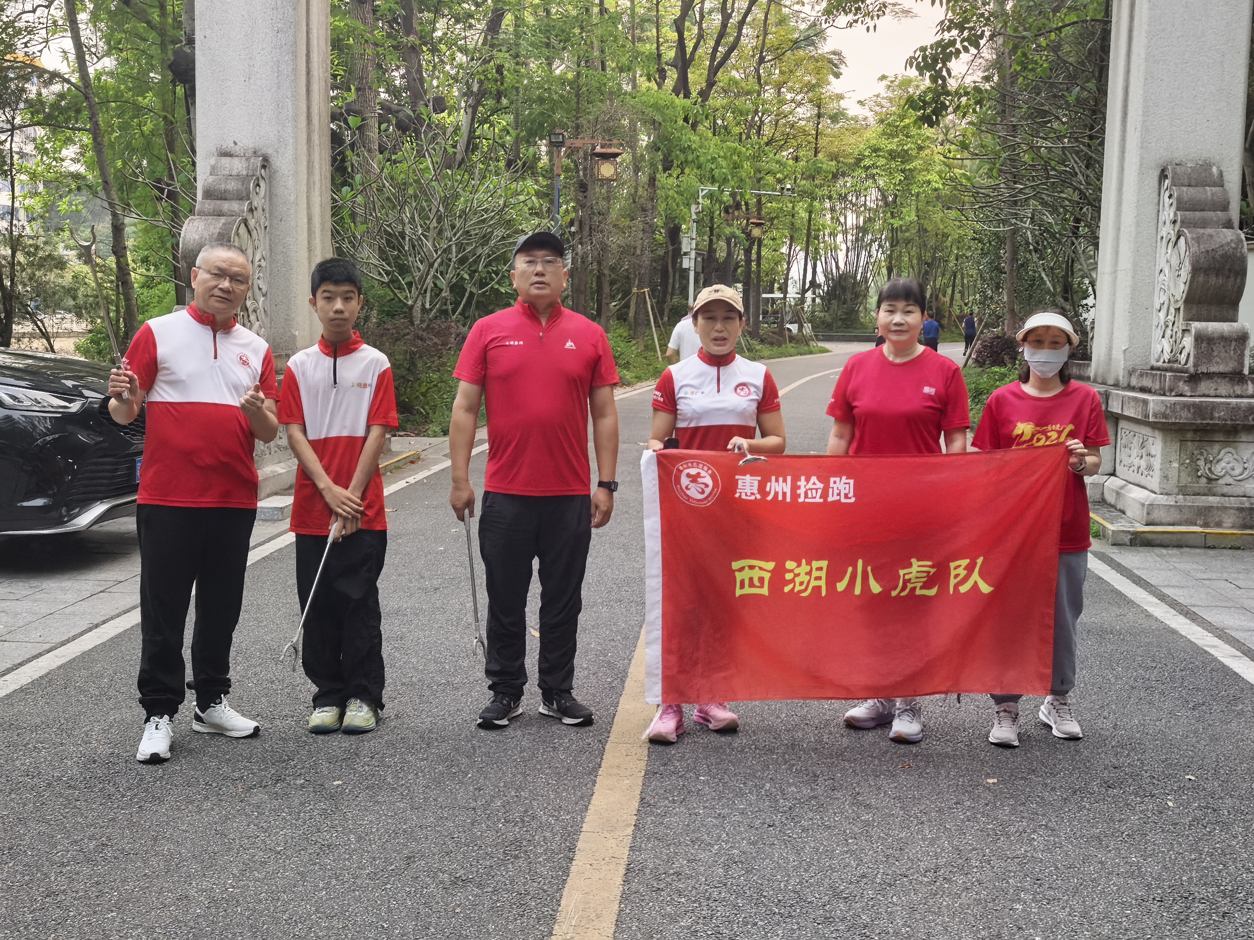 大家一起来,文明更精彩。今天是惠州捡跑西湖小虎队捡跑西湖的第1130天,每天清晨,我们在美丽的西湖欢迎你来做公益志愿