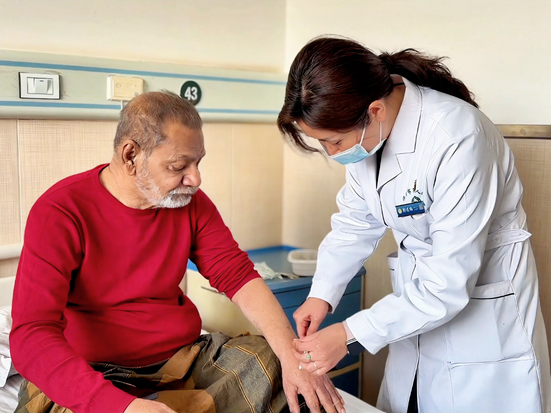 一根银针牵起跨国缘 临汾中医助孟加拉七旬老人重获行走希望 供稿:郝东亮 李静 芦丽静 “这针扎下去,腰一下子松快了!” 4月7日一早,临汾市第二人民医院骨科康复院区针灸室里,72岁的艾哈迈德·安伊斯泰克趴在治疗床上,副院长宋威手指轻捻银针,稳稳刺入老人腰部穴位。随着银针一针针落下,老人紧锁的眉头终于舒展开来。这温馨一幕的背后,是一段跨越千山万水的寻医故事。朋友推荐:万里求医奔着“中国针”来艾哈迈德老人来自孟加拉国,从2020年起就被腰痛缠上了身。起初只是活动不便,后来越来越重,2023年他在国外咬牙做了腰椎开放手术。本以为能松口气,没想到术后疼痛反而变本加厉——自己走不了几步路,就算拄着辅助器,勉强挪个50米也累得满头大汗,蹲下、起身更是想都不敢想。 就在他几乎绝望的时候,朋友穆罕默德·阿里兄妹的经历让他看到了光。原来去年9月,同样来自孟加拉国的阿里兄妹,经宋威团队治疗后多年顽疾大有好转。眼见为实,艾哈迈德心动了。和远在临汾的宋医生多次线上沟通后,他带着45岁的儿子,从孟加拉国飞到广州,再转北京,最后直奔临汾。量身定制:银针艾灸齐上阵 三天就见效“老人左腿没劲儿、又麻又刺,走几步脚底板像火烧,大腿小腿的肌肉都萎缩了,僵得跟棍子似的。”接诊后,宋威和团队给老人做了细致检查,专门为他定了一套“中西结合”方案:以针灸为主力,配合艾灸、推拿、耳穴压豆、中药熏洗等老法子,再搭上手法康复训练,既要通经络,也要强肌肉。效果来得比预想还快。入院第三天,老人就感觉身上轻快了不少。 治疗刚满一周,腰上压着的大石头像被搬走了,腿不刺不麻了,僵硬的肌肉也软和下来。现在他扶着助行器,能走的距离一天比一天远,夜里也能睡个安稳觉了。老人高兴地跟主管医生比划:“我自己能照顾自己了!”父子同受益:腰酸明显减轻 耳朵也清亮了陪父亲来的儿子也是一身“老毛病”——脊柱关节病、腰肌劳损反复发作,慢性中耳炎也总不好。医护团队根据他的情况,用上了输液消炎、针灸加中药熏蒸的组合拳。才扎了一回针,儿子就惊喜地发现腰部酸痛明显减轻,耳朵闷堵的感觉也轻了大半。“太不可思议了!”父子俩对着医护团队一个劲竖大拇指。艾哈迈德信心满满地说,等治完整个疗程,他有把握能重新实现独立行走。 暖心细节:菜单按口味调 沟通靠翻译软件“人家大老远奔咱来了,不光病得治好,心里头也得热乎。”宋威这么说,团队也是这么做的。知道父子俩爱吃中国菜,医院食堂特意按他们口味调整菜单;医护人员手机里都装着翻译软件,治疗方案、注意事项一遍遍耐心说清楚;从接诊到日常起居,每个环节都安排得妥妥帖帖,让异国他乡的病人一点都不觉得生分。小小一根银针,串起了传统中医药的博大智慧,也搭起了一座跨国的友谊桥。 从去年的阿里兄妹,到今天的艾哈迈德父子,临汾市第二人民医院的骨科中医诊疗正成为一张亮眼名片。医护们用实打实的本事传递着中医温度,让古老的中医药漂洋过海,在一次次真诚的健康托付中,写下更多暖心的故事。