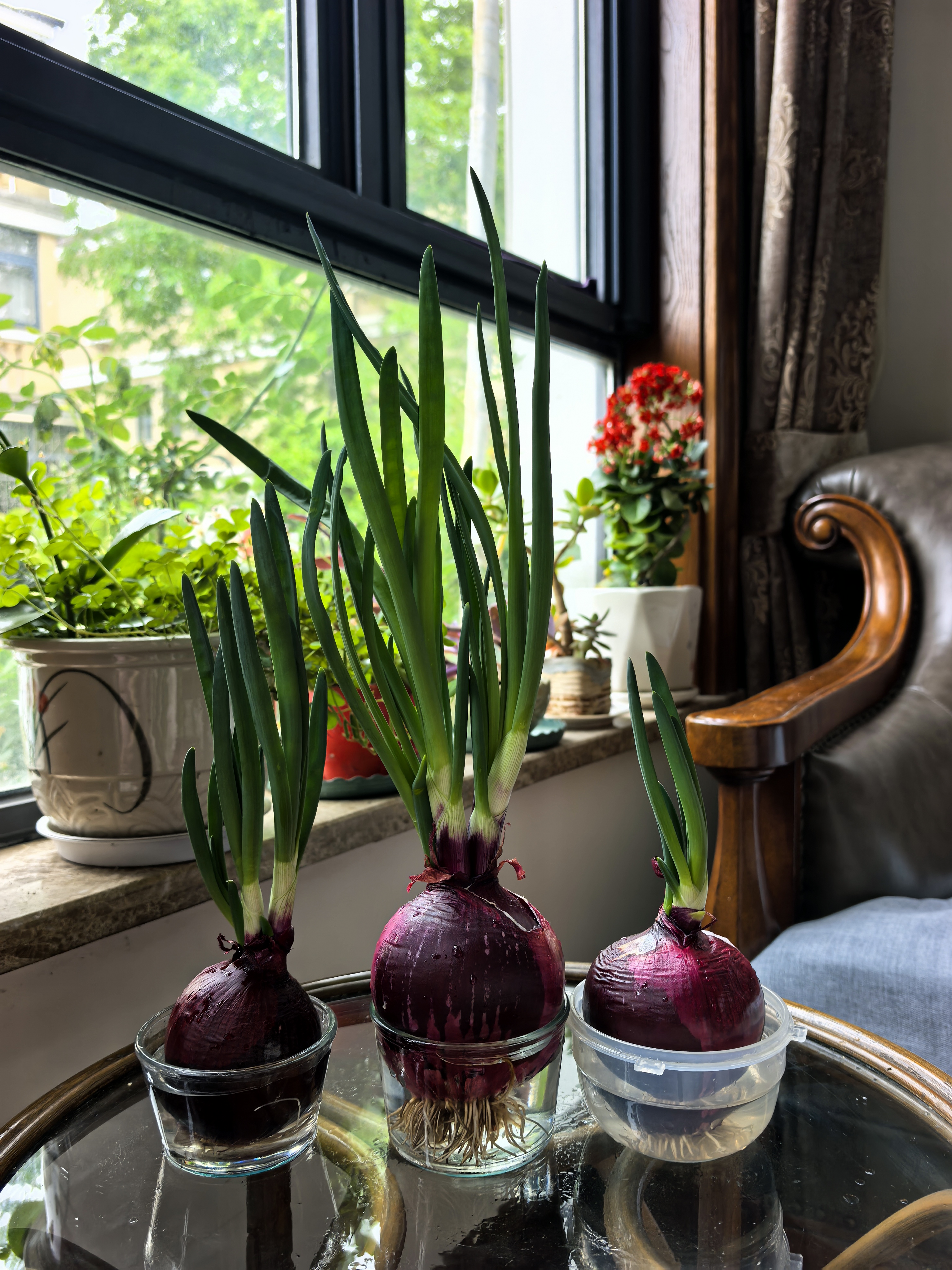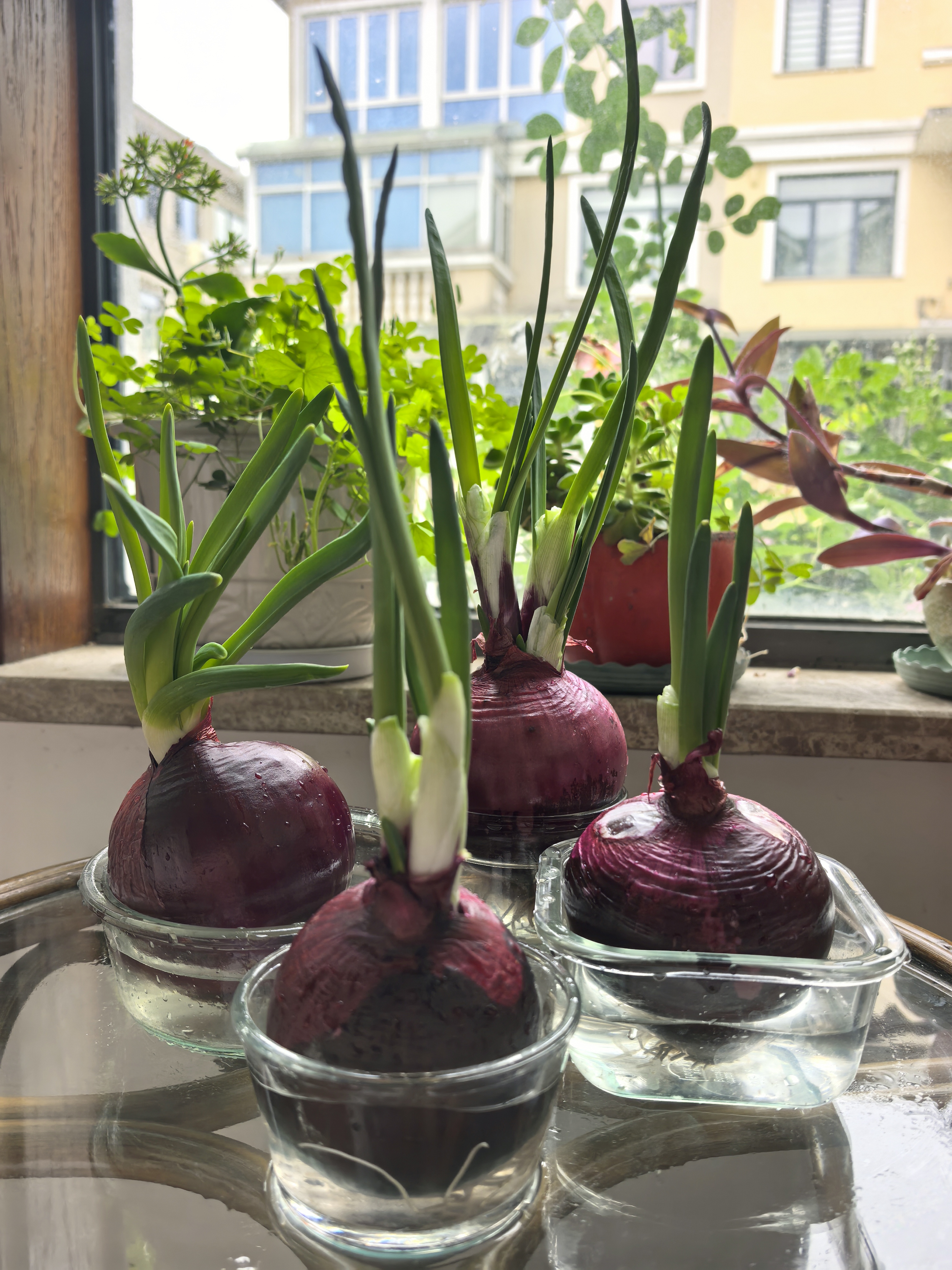 水培洋葱炒蛋,罗卜花也有春天,门前蔷薇花开