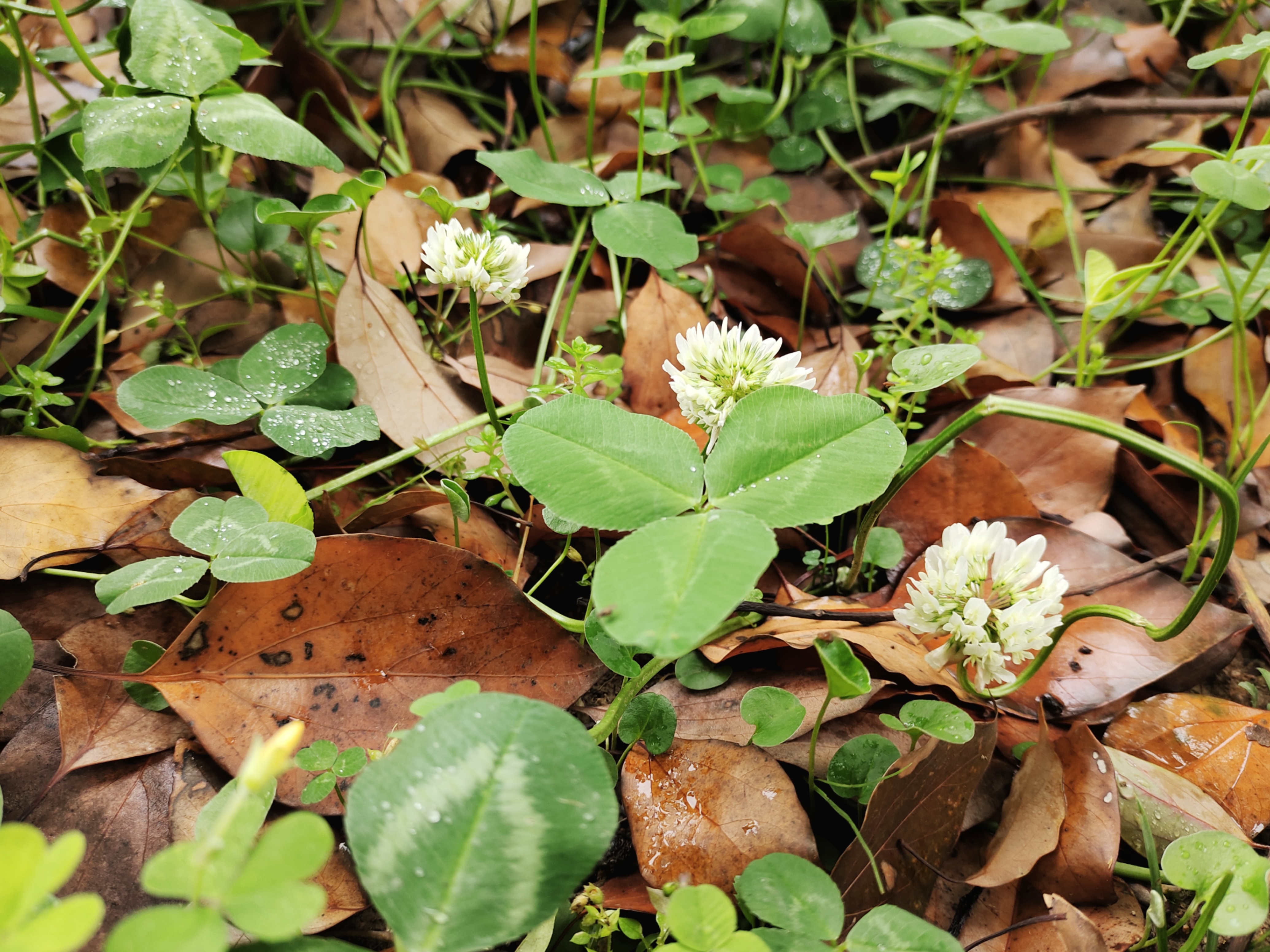 雨后草地,露珠滚在三叶草上,白花绿叶间偶遇一枚四叶草,小确幸藏在每片叶脉里。