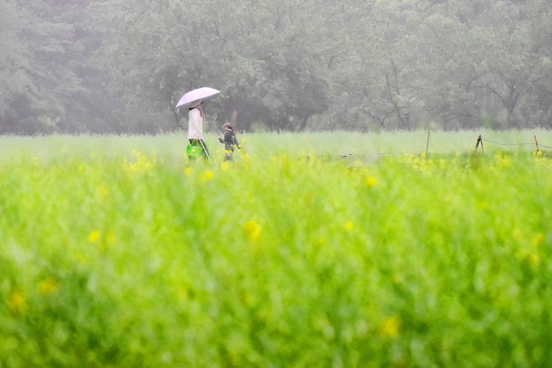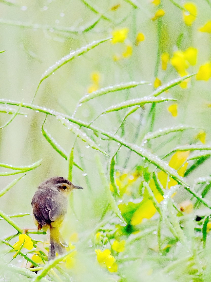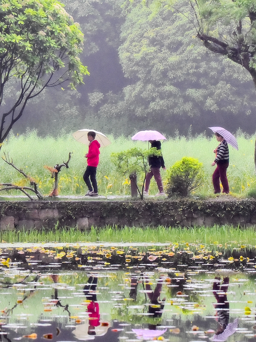 #春拍大赛#春雨绵绵郊外游——晨游八卦田,不料下起了绵绵细雨,田野有些朦胧,颇有些画意,干脆拍些雨中春色。油菜花开始结籽了,蜻蜓和黄眉鹀在躲雨,活泼的鹪莺在游玩。湖中许多新荷叶露出了水面,有金黄色、绿色,千姿百态,挺美的,仔细观察,荷叶上有许多水珠,可谓:大珠小珠落玉盘,感慨夏天似乎正快步走来。来了一些喜欢雨中游的游客,他们撑着伞,漫步于田埂上,欣赏春雨中的郊外风光。摄于4月14日。