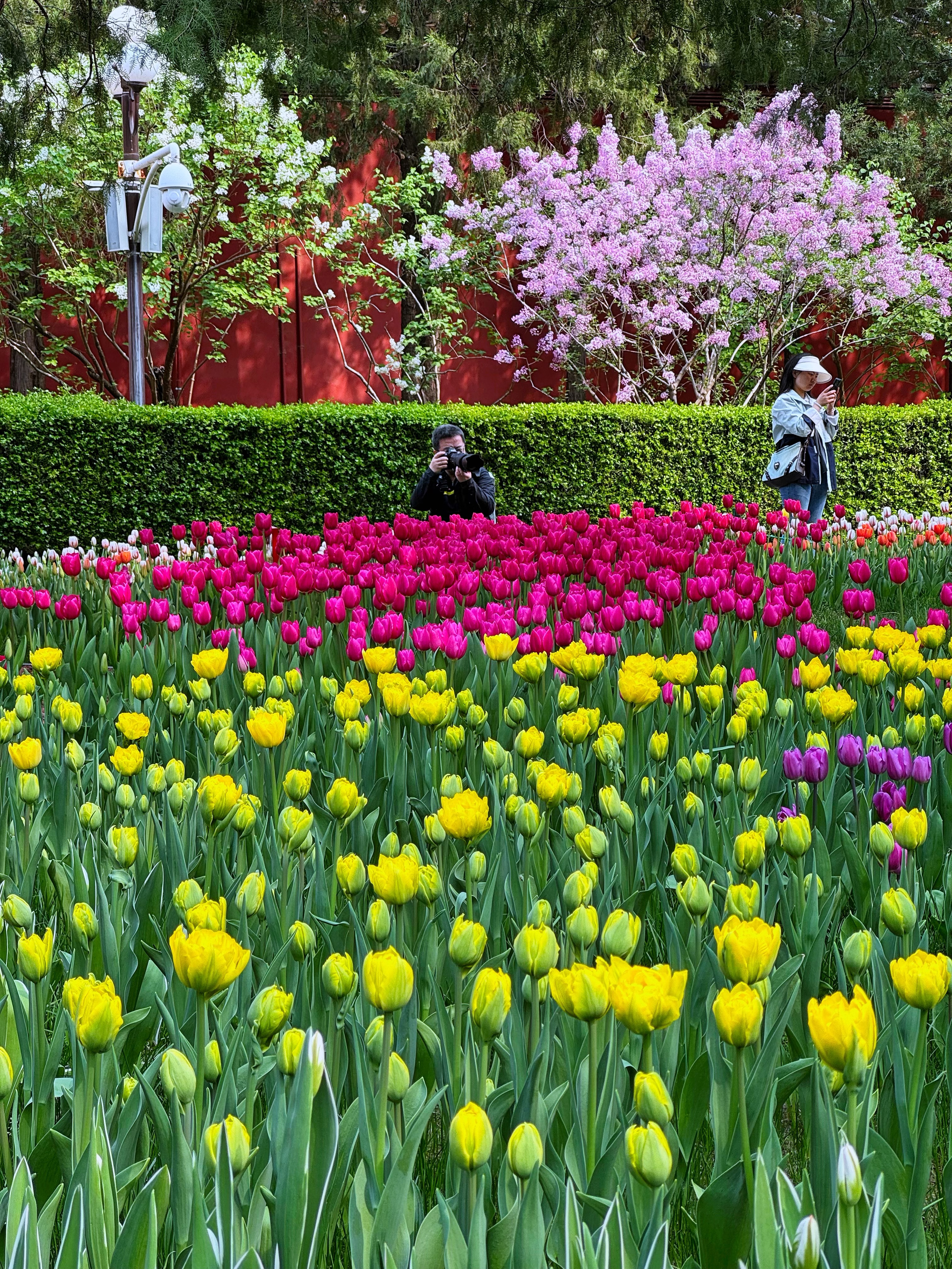 中山公园郁金香花海,错过再等一年! ☘️ 中山公园,又到了一年一度的郁金香节! ☘️ 公园现在大热,很多人挤一个机位,拍完后身边都是人。其实公园里的郁金香特别特别多,没必要非得挤在一起,总结了几个不错的赏花拍照地点,拍出独属于你的美照! ⭐️ 【花海+古建】: 🔸 P4: 公园东门一进门,右手边,靠南的花海,站在花海东边,往西拍,即得。 🔸 P9:唐花坞东侧花海,站在花海东侧,用鲜花当前景往西拍,即得。 ⭐️ 【花海+人像】 🔸 P8,公园东门一进门,左手边,小花海+花坛,站在花海南侧路上,用手机或相机伸至花海上方,用郁金香当前景,人物站在花坛边,即得。 🔸 P7,“福报”门东边花海,站在花海“<”形拐角处,用手机3x或5x,或相机长焦,拍另一边人像,用紫丁香+红墙当背景,用花海当前景,即得。 ⭐️ 【花海】 🔸 P2、P3、P10,用手机2x,把花海“S”形取出来,五彩缤纷的鲜花中,你就是那个最靓的仔! ❤️ 中山公园的郁金香,现在正是盛花期,去留下2026年的倩影吧,错过再等一年!