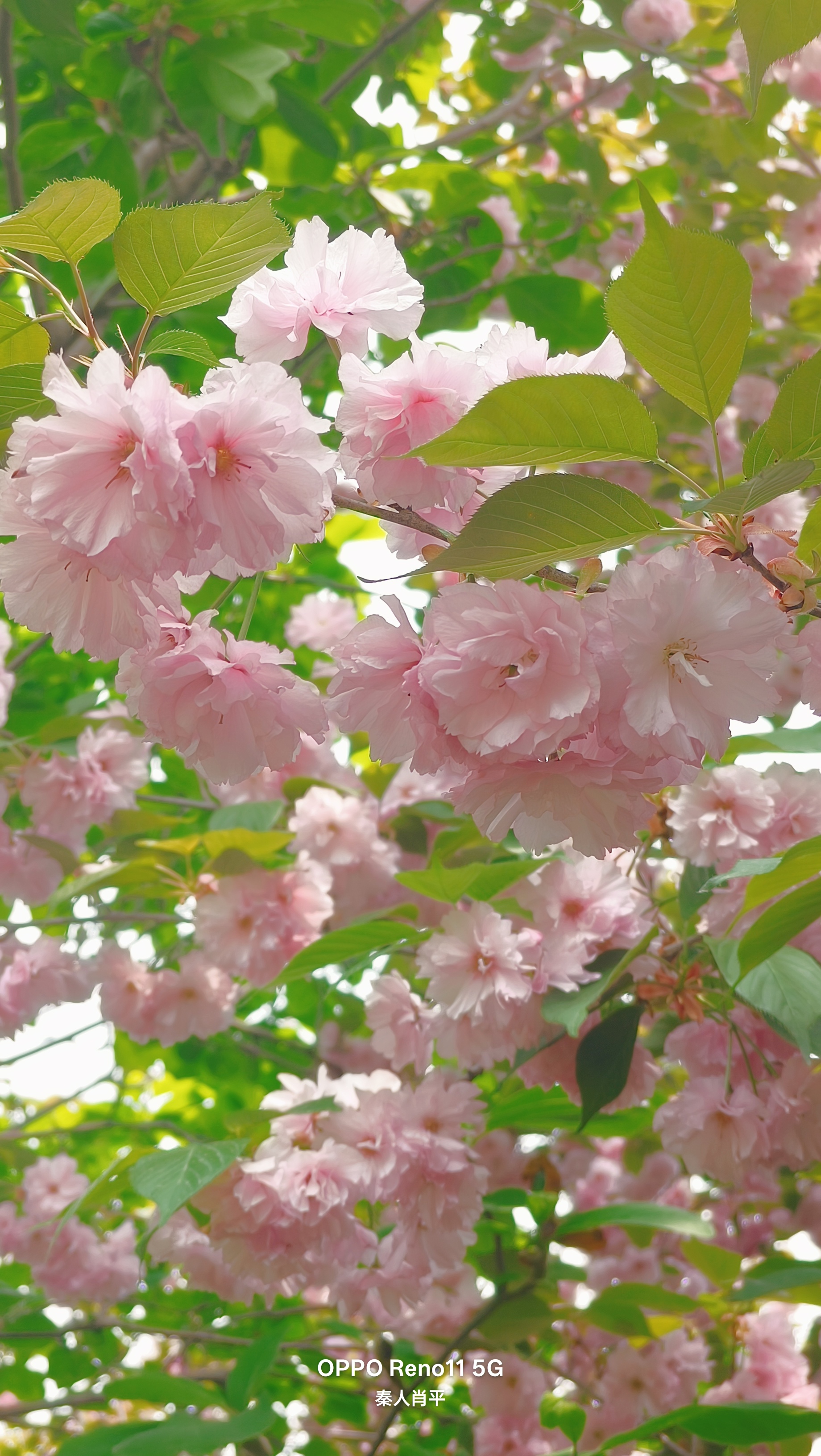 粉樱缀枝头,绿叶托春光。阳光穿过叶隙,在花间洒下碎金。繁花不争春,却把整个春天轻轻捧在枝头。