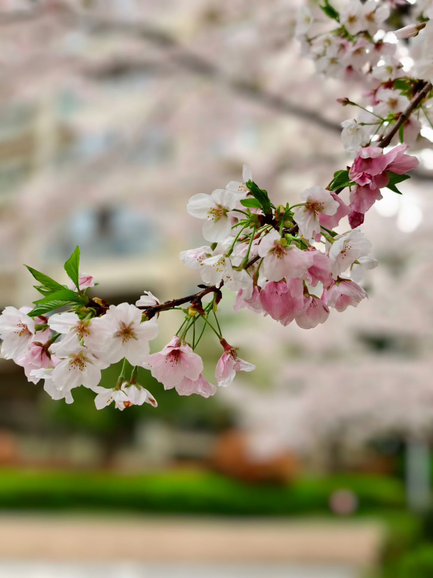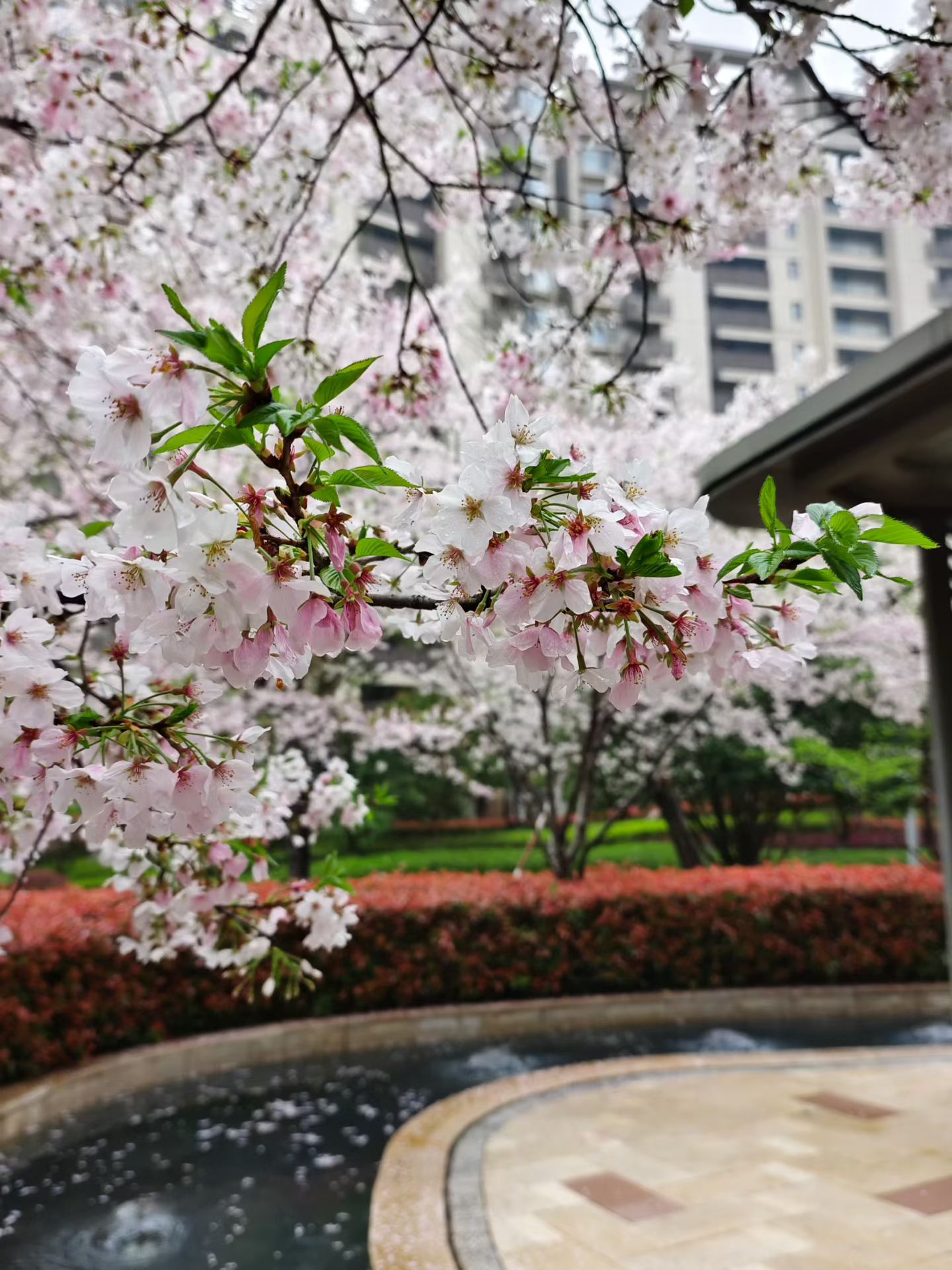 8 粉白色的吉野樱开满了枝头,在春日的阳光里摇曳生姿。