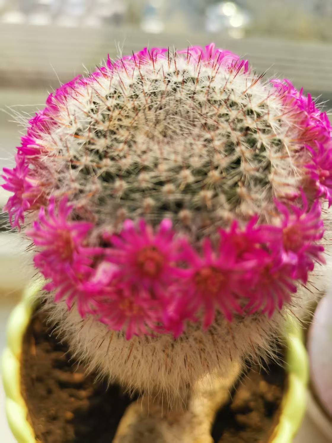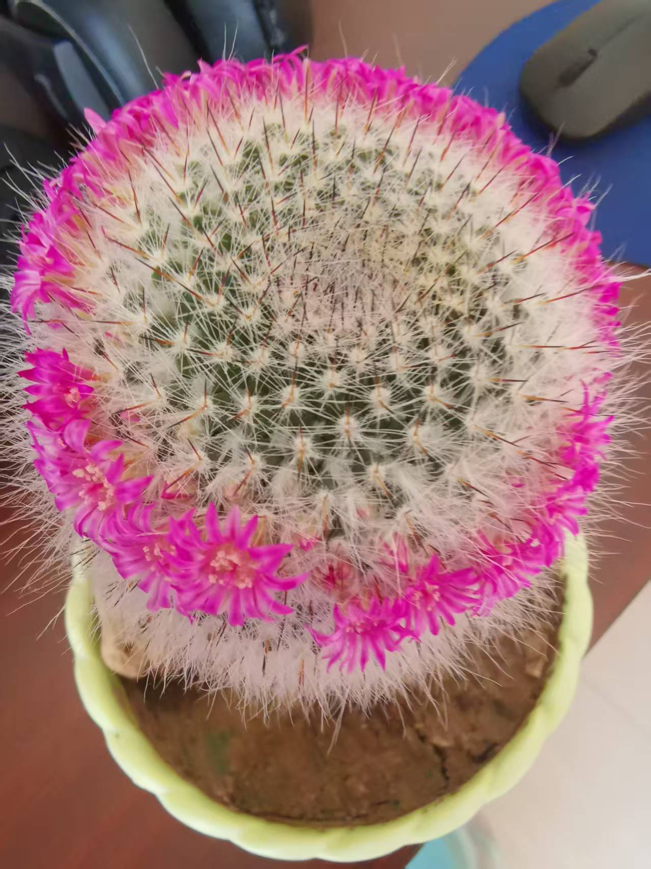 金虎仙人球开花了。 仙人球周边开满了一圈粉红的鲜花,非常漂亮,赏心悦目。(曹玉想)